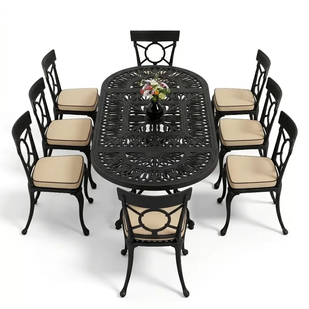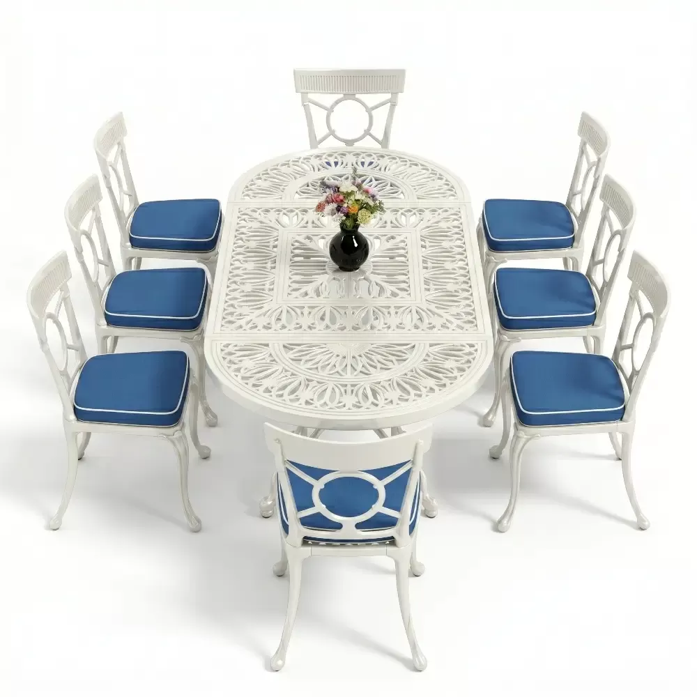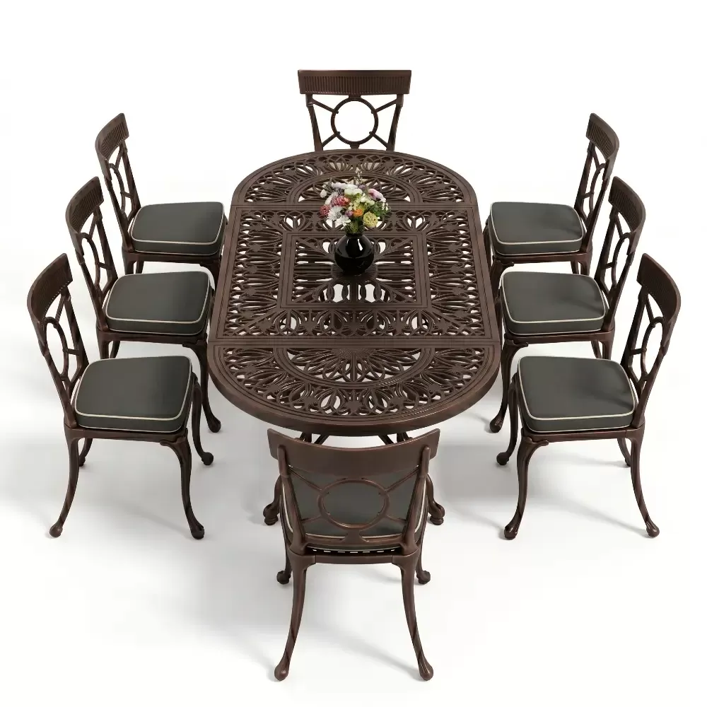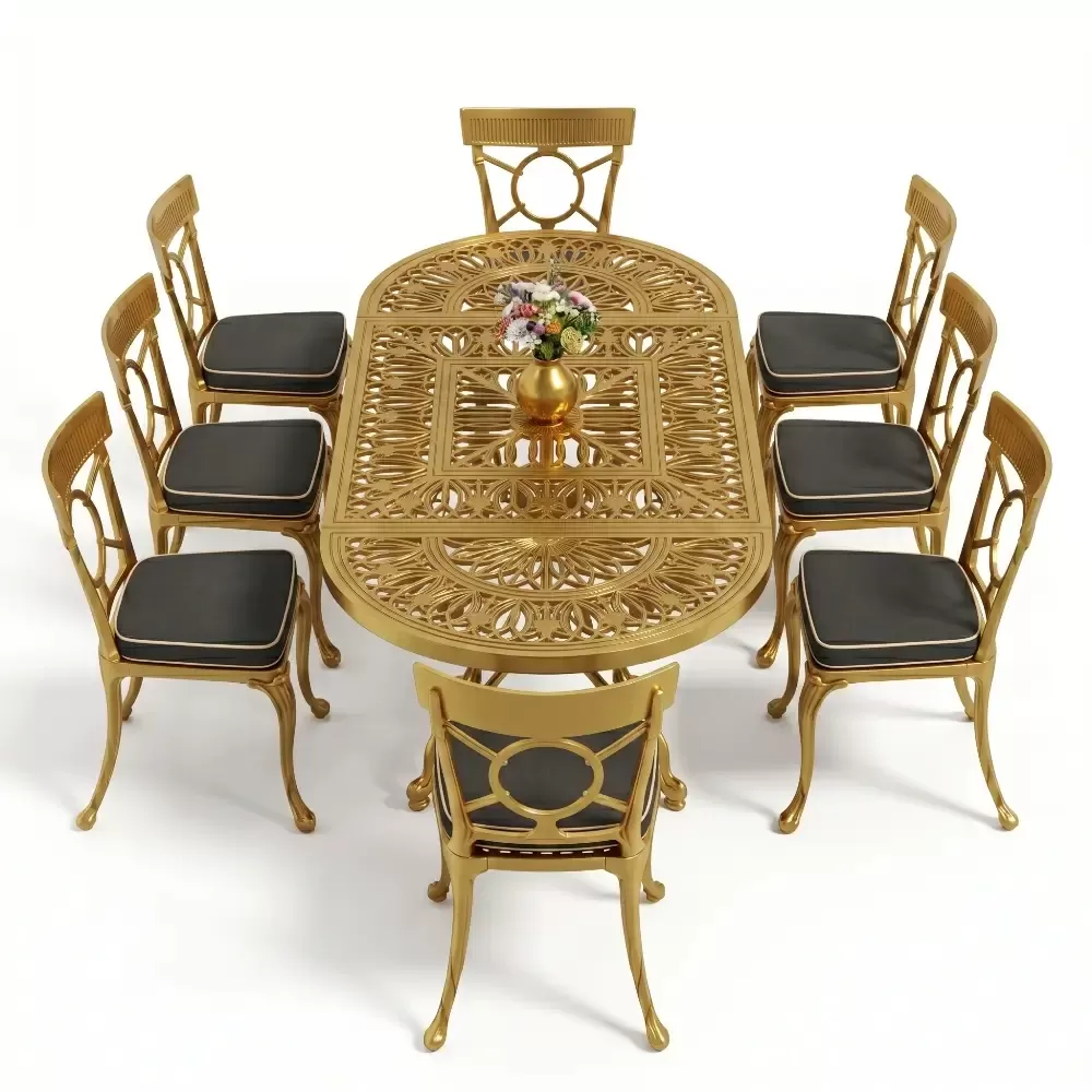 Klasik ferforje ruhunu modern aluminyum dokum teknolojisiyle birlestiren bu ozel takim ile bahce ve teraslarinizda ayricalikli bir oturma alani olusturun.