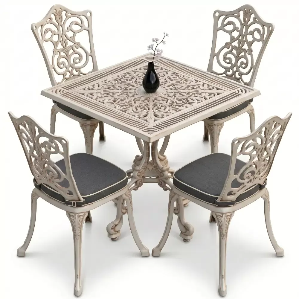 Hafifliği ve korozyona uğramayan yapısı sayesinde bu takım balkonlar, havuz kenarları, cafe bahçeleri ve oteller için idealdir. Paslanma yapmayan alüminyum döküm malzeme, deniz tuzu veya yoğun nem bulunan bölgelerde dahi güvenle kullanılabilir. Bakım gerektirmeyen yapısı sayesinde sadece nemli bir bez yardımıyla temizlenebilir ve ilk günkü ışıltısını koruyabilir. Ferforje görünümü, mekanınıza nostaljik bir hava katarken modern mühendislik avantajlarından ödün vermezsiniz.