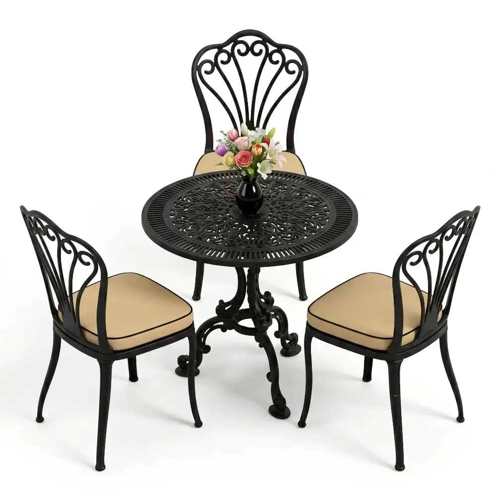 - Ticari İşletmeler: Kafe, restoran ve otellerin dış alanlarında şık bir ferforje görünümü sağlarken, 3 kişilik kapasitesi ile masa verimliliğini artırır.