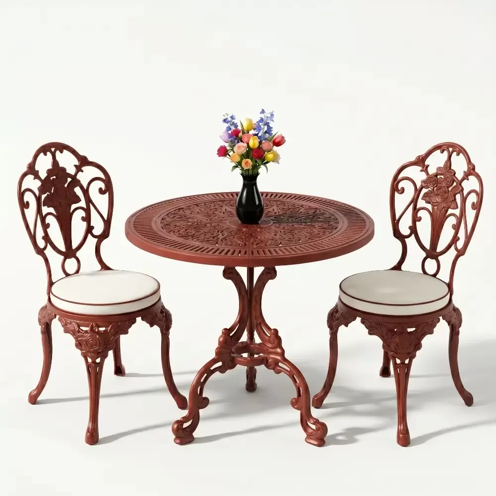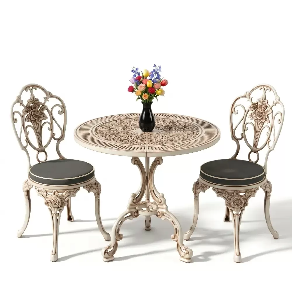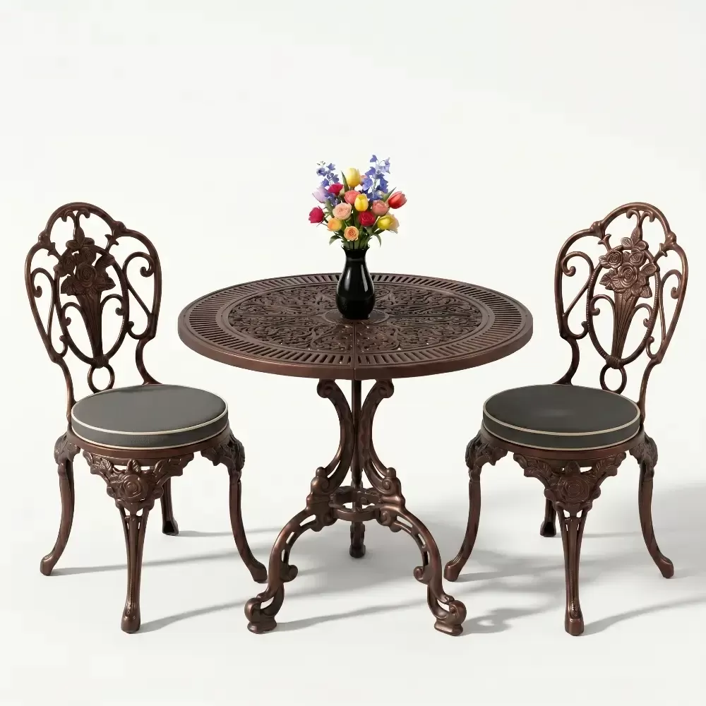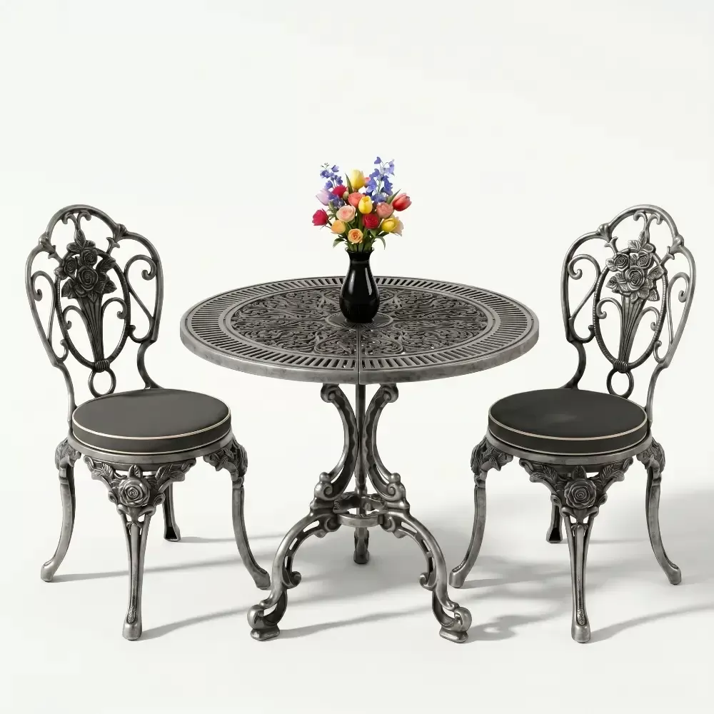 Yuvarlak Masa E:75 x D:75 x Y:72 cm 2 Kişilik alüminyum döküm masa ve sandalye takımı (Mindersiz Fiyatı)