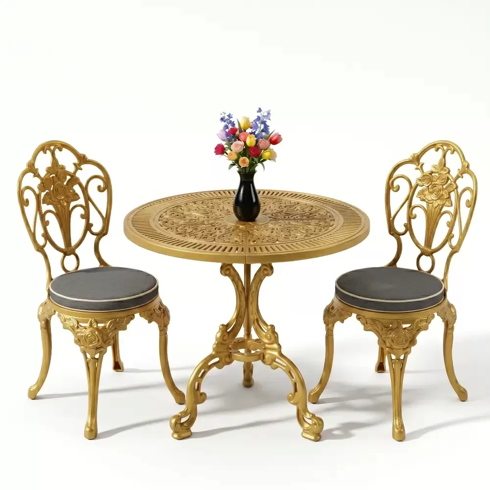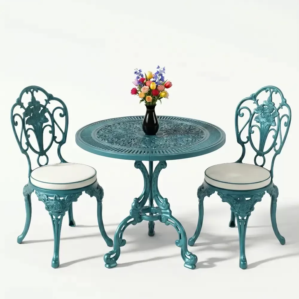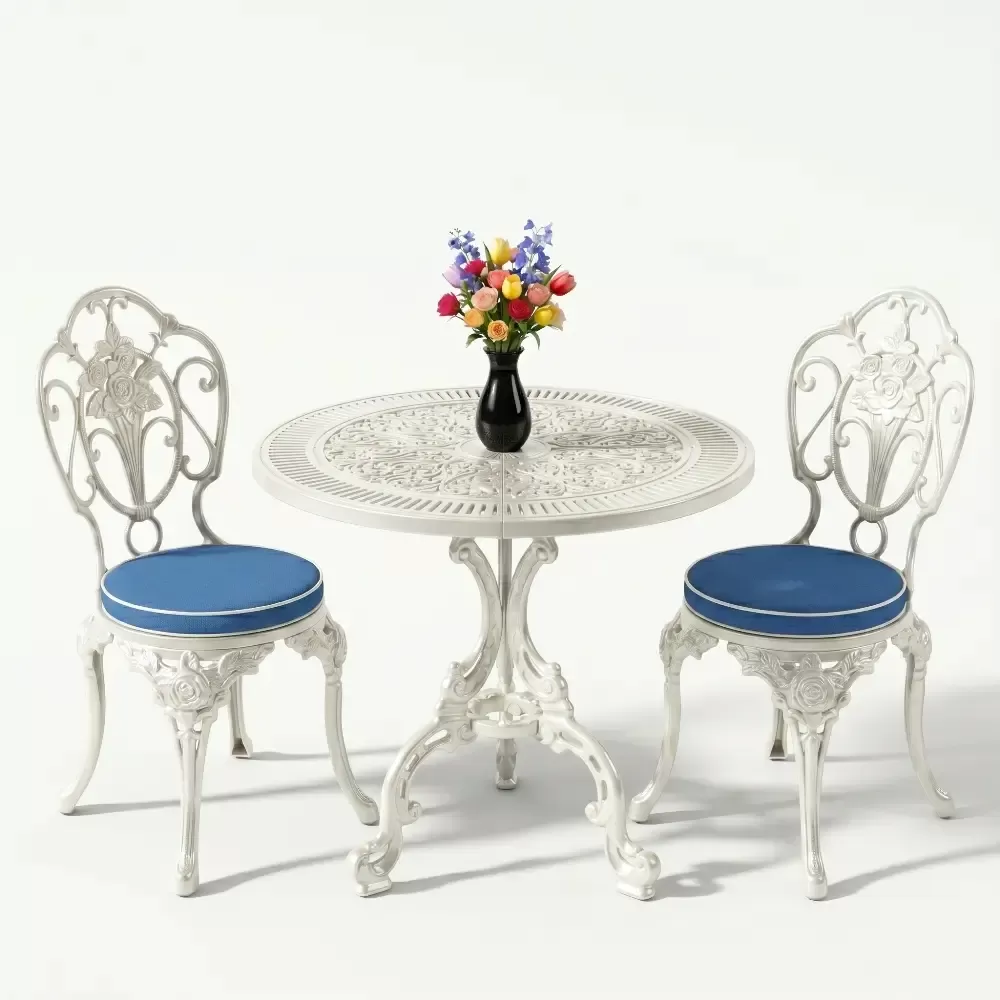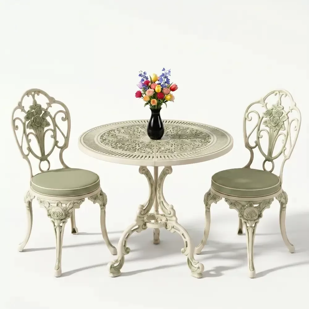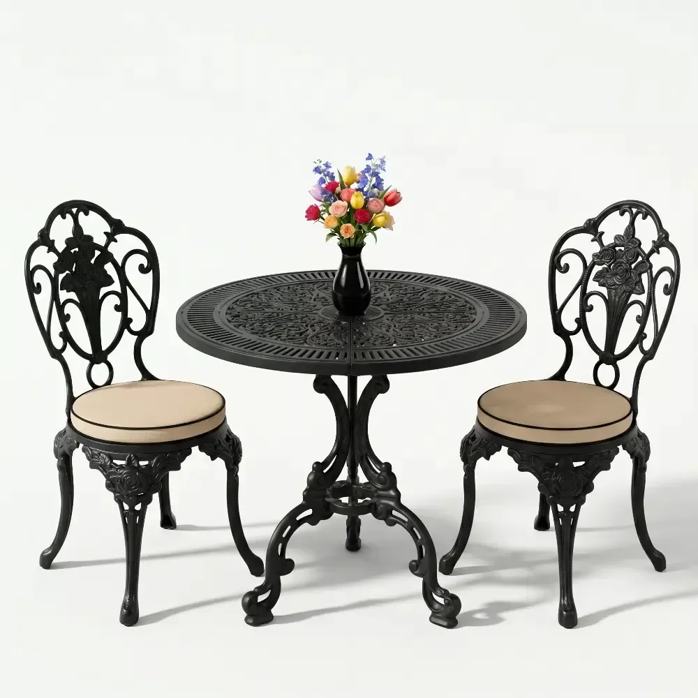 Yuvarlak Masa E:75 x D:75 x Y:72 cm 2 Kişilik alüminyum döküm masa ve sandalye takımı (Mindersiz Fiyatı)