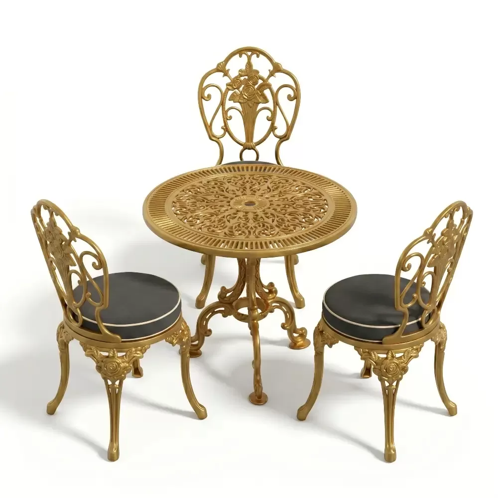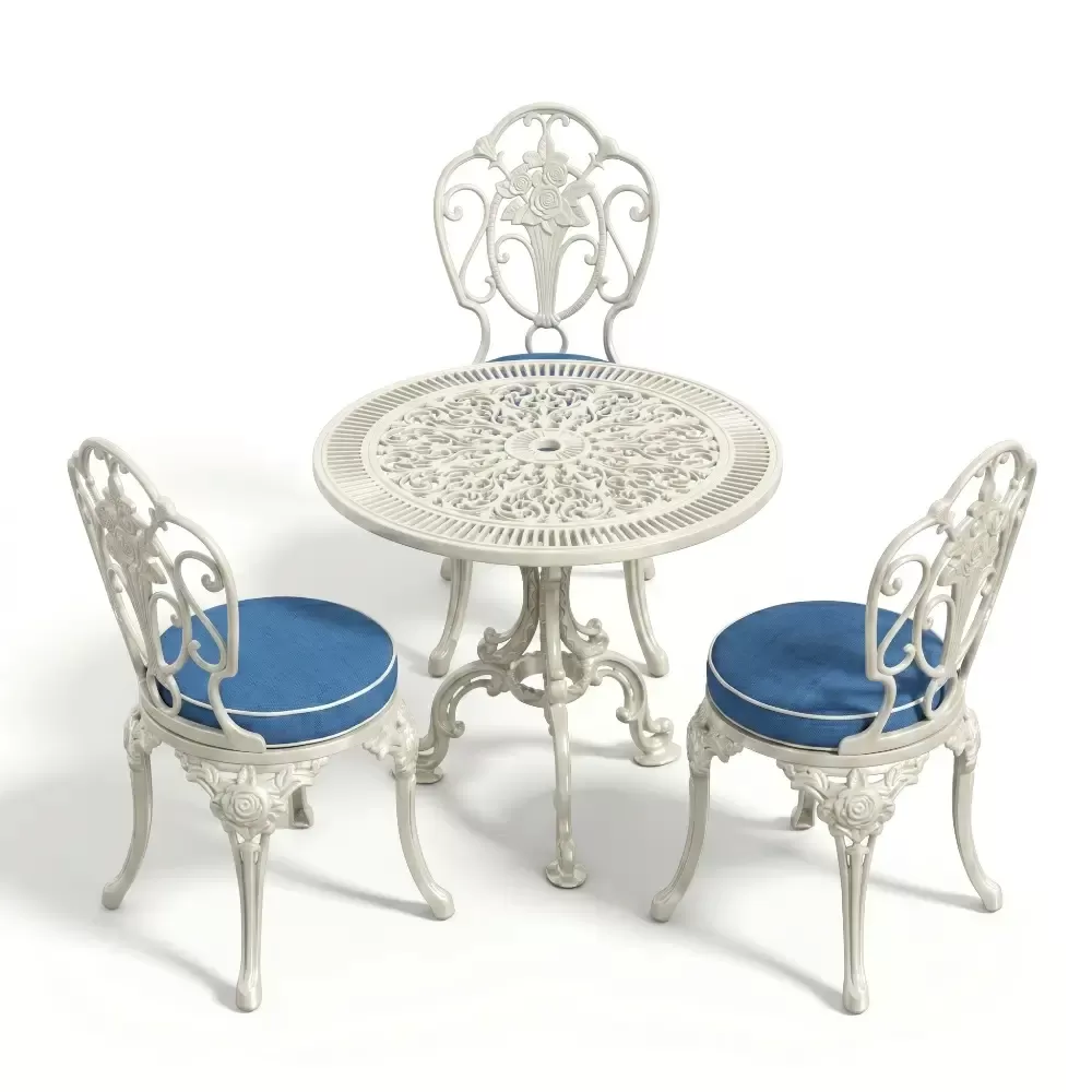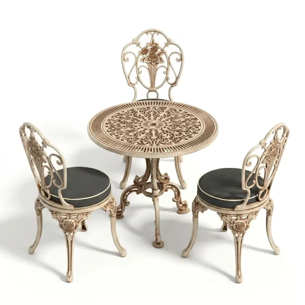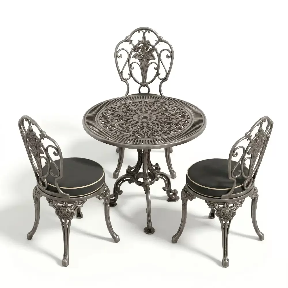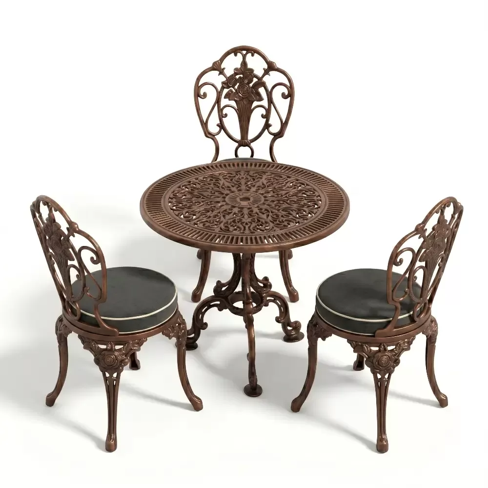 Yüksek kaliteli alüminyum döküm malzemeden üretilen bu takım, doğa şartlarına karşı tam direnç gösterecek şekilde tasarlanmıştır. Demir mobilyaların aksine paslanma ve korozyon riski barındırmaz. Elektrostatik fırın boya teknolojisi ile desteklenen yüzey dokusu; UV ışınlarına, aşırı sıcaklara ve nemli ortamlara karşı üstün koruma sağlayarak ürünün ilk günkü zarafetini uzun yıllar boyunca korumasına yardımcı olur.