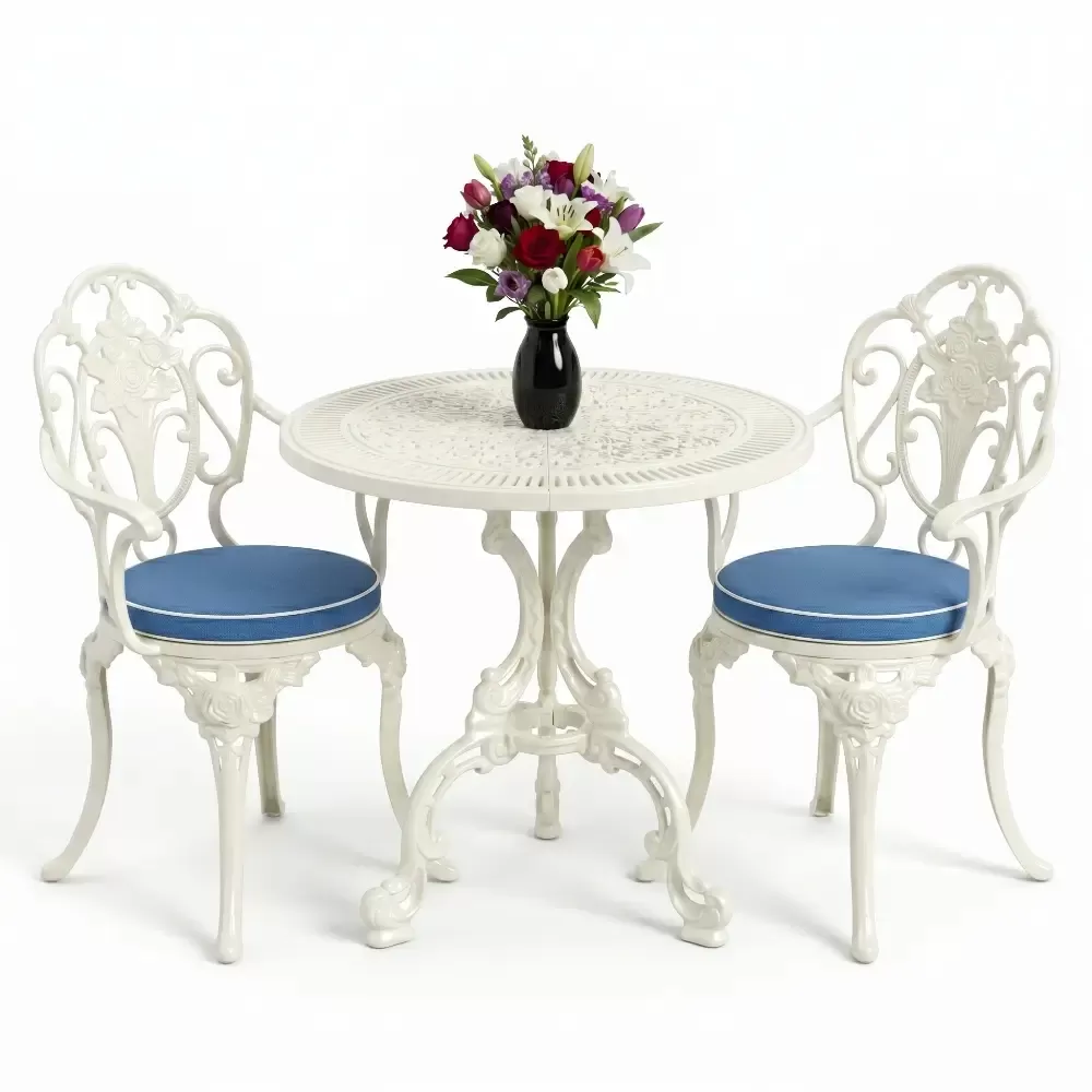 Bahçe, balkon ve teras gibi açık hava mekanlarınıza değer katmak için özel olarak geliştirilen Akbrella-nın 03 CAS serisi, nostaljik ferforje çizgilerini alüminyum döküm teknolojisinin sunduğu modern avantajlarla harmanlıyor. İki kişilik kapasitesi ile samimi ve konforlu bir oturma alanı yaratan bu set, 75x75 cm ölçülerindeki yuvarlak masası sayesinde en dar alanlarda bile ferah bir kullanım imkanı sunar.