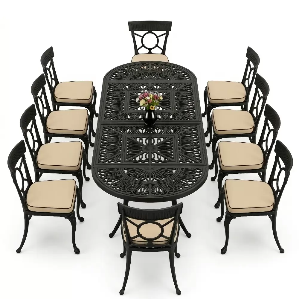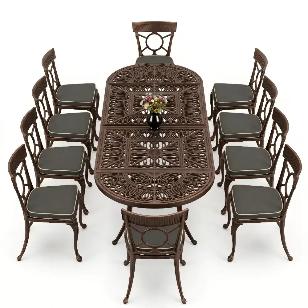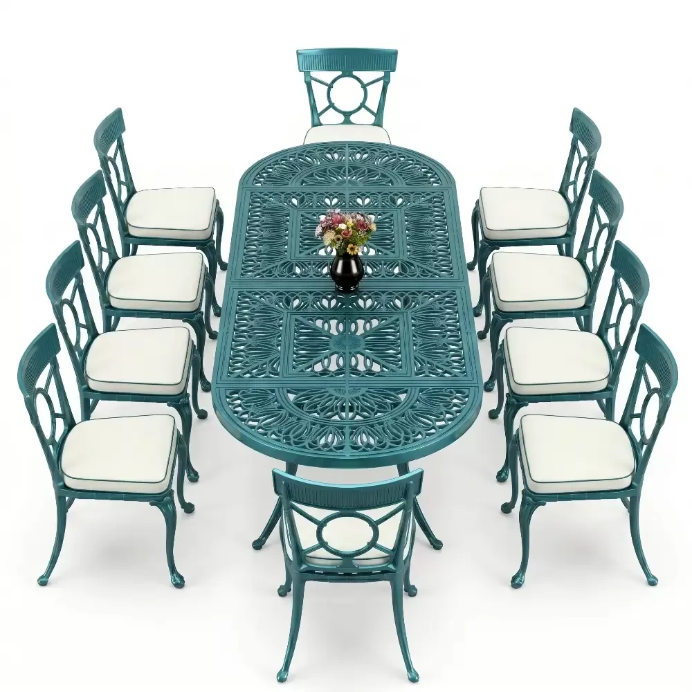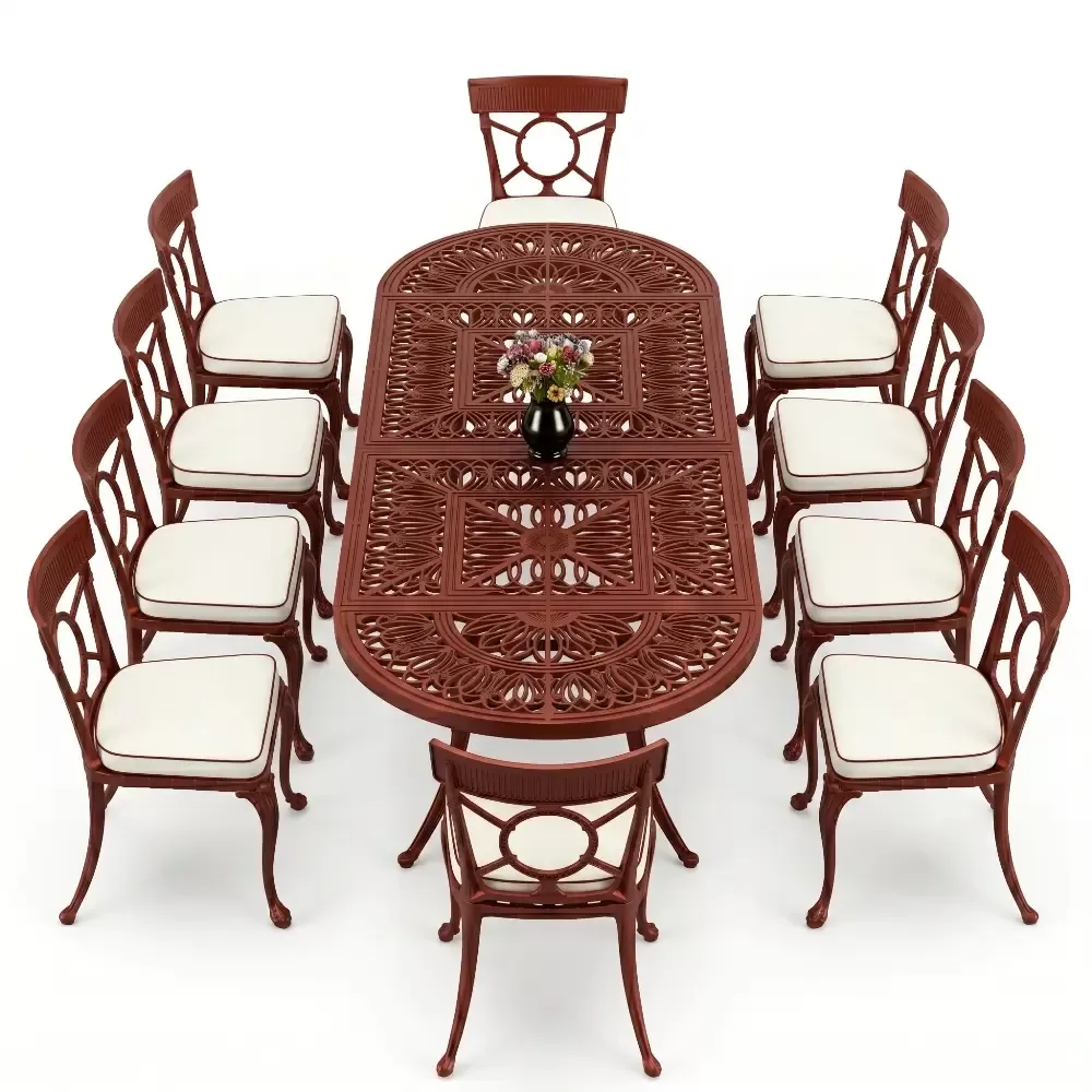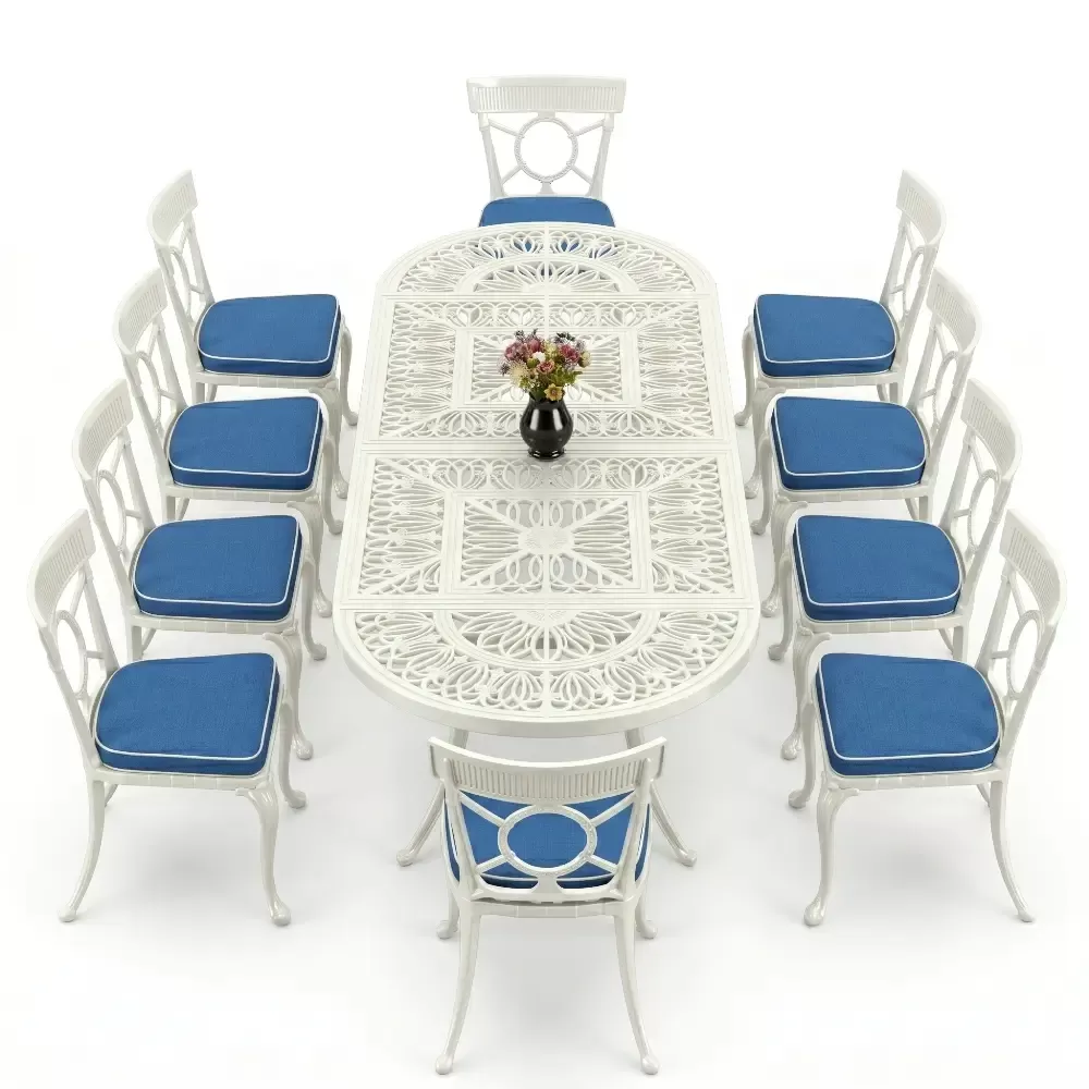 Oval Elips Masa E:100 x D:300 x Y:72 cm 10 Kişilik ferforje tip alüminyum döküm masa ve sandalye takımı (Mindersiz Fiyatı)