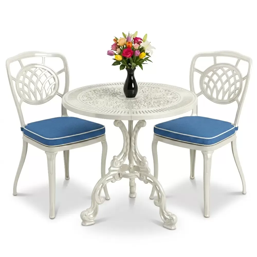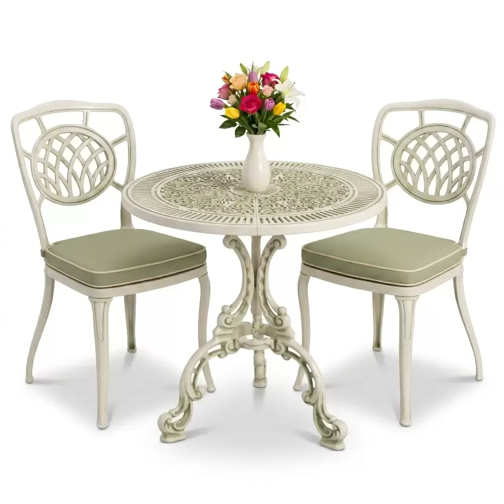 Bahçe, balkon ve teras gibi açık hava mekanlarınıza değer katmak için özel olarak geliştirilen Akbrella-nın 04 CAS serisi, nostaljik ferforje çizgilerini alüminyum döküm teknolojisinin sunduğu modern avantajlarla harmanlıyor. İki kişilik kapasitesi ile samimi ve konforlu bir oturma alanı yaratan bu set, 75x75 cm ölçülerindeki yuvarlak masası sayesinde en dar alanlarda bile ferah bir kullanım imkanı sunar.