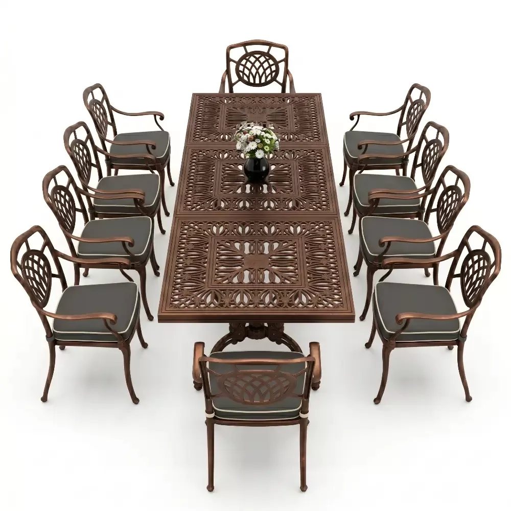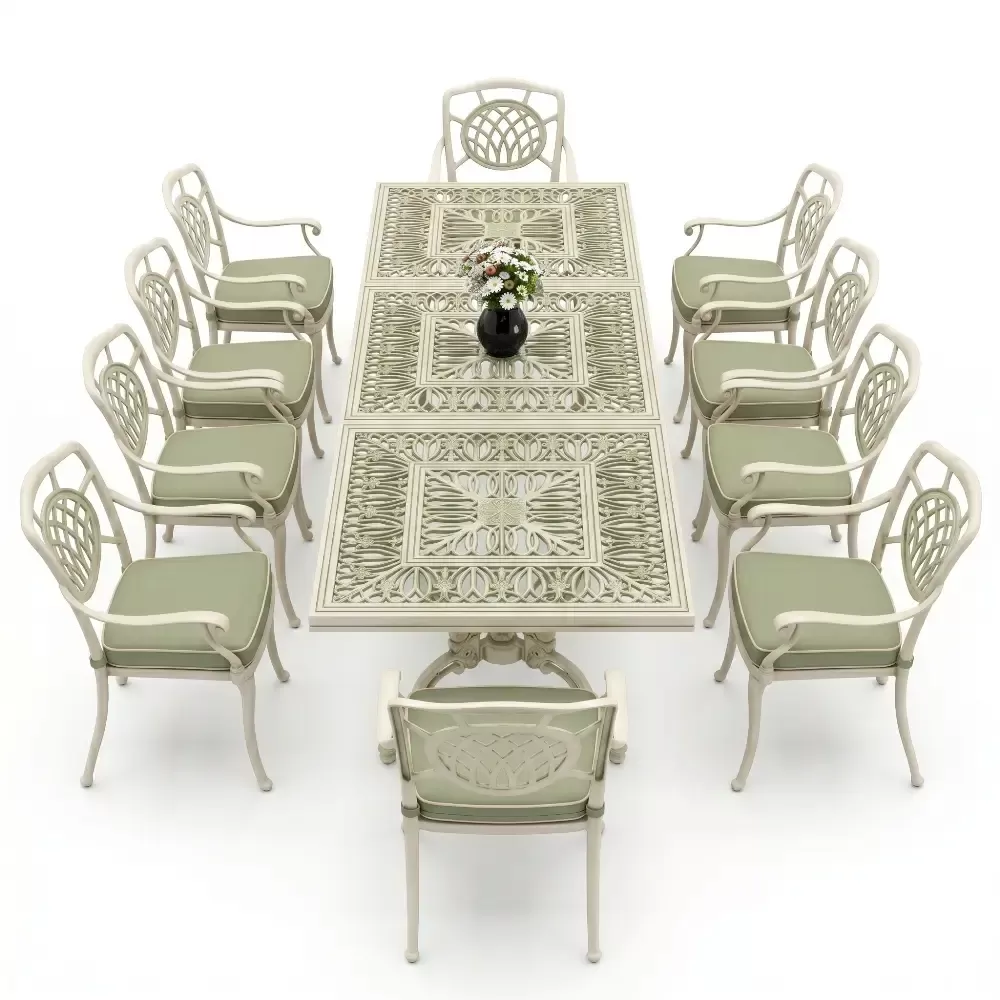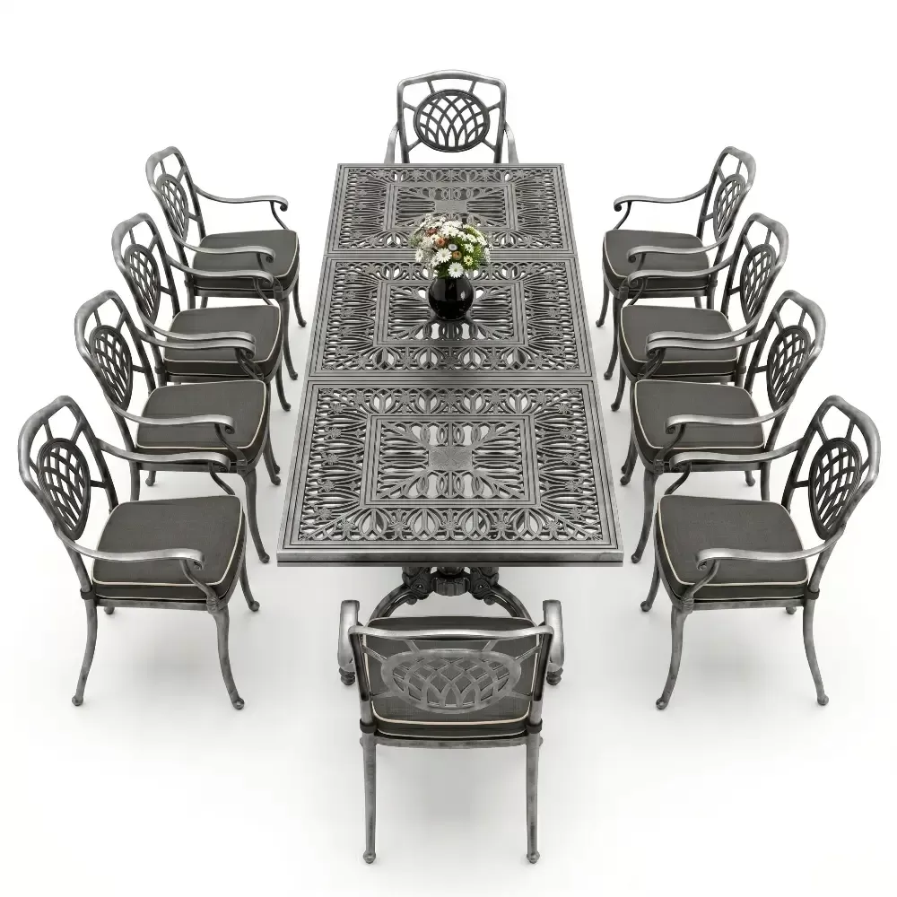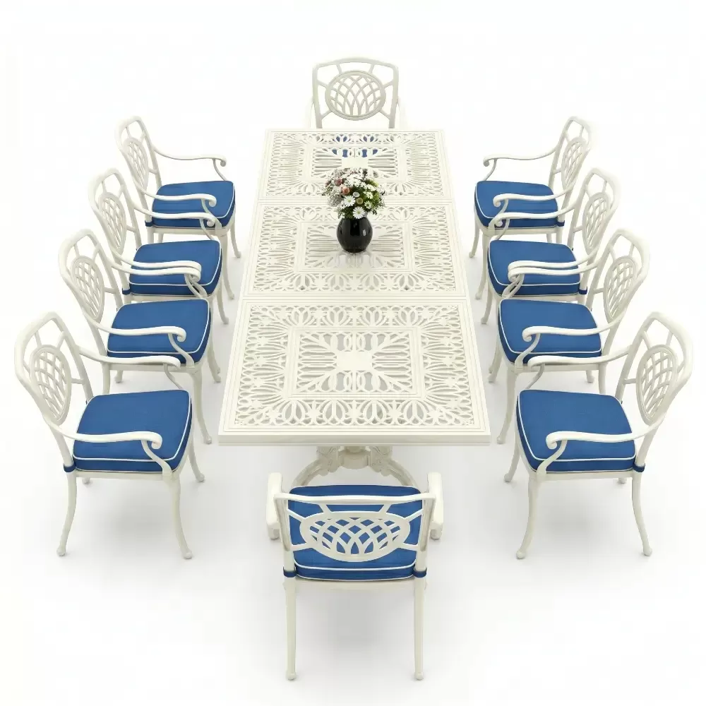 Dikdörtgen Formlu 10 Kişilik Alüminyum Döküm Bahçe Takımı