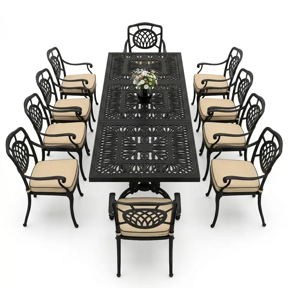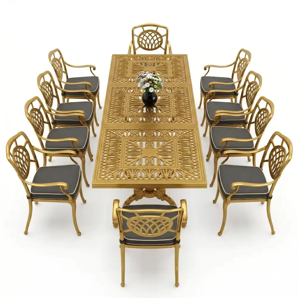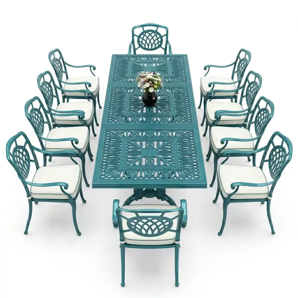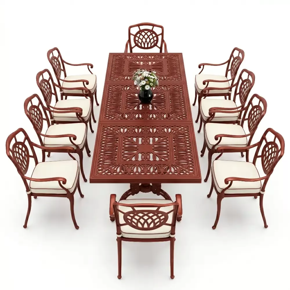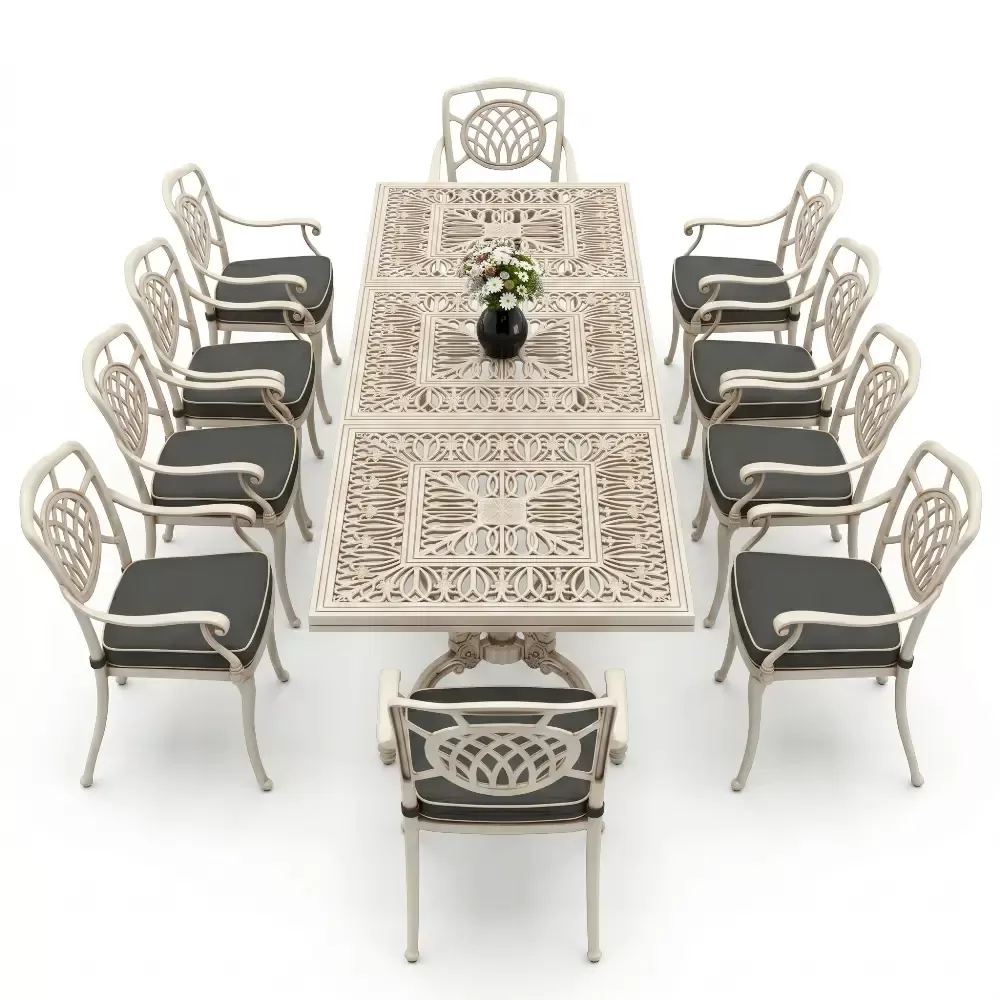 Dikdörtgen Formlu 10 Kişilik Alüminyum Döküm Bahçe Takımı