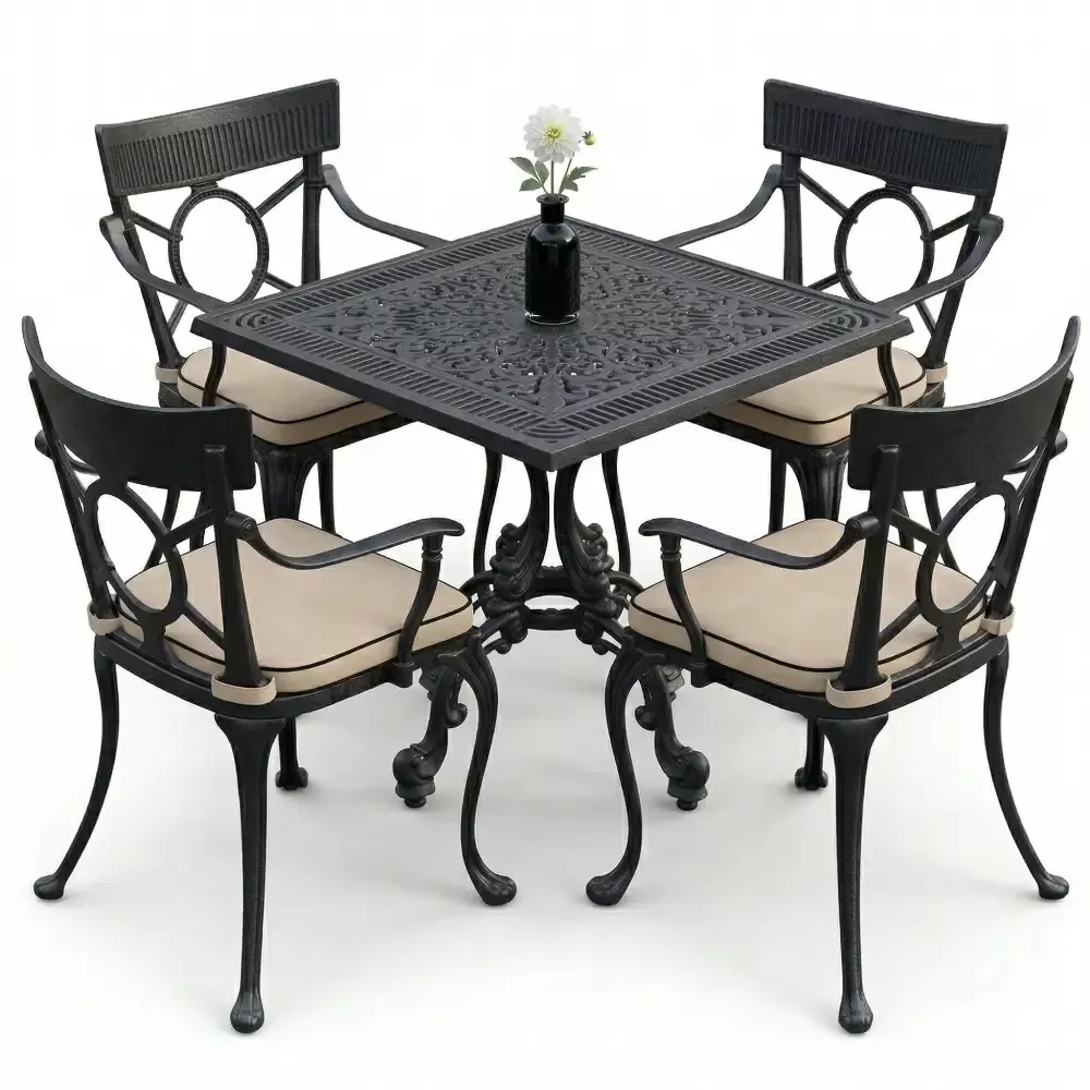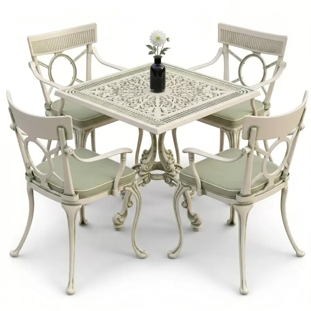 Alüminyum dökümün paslanmaz doğası gereği bu set; deniz kıyısındaki yüksek nemli alanlarda, havuz kenarlarında, geniş balkonlarda ve teraslarda güvenle kullanılabilir. Otel, restoran ve cafe gibi yoğun kullanım alanları için ideal ağırlıkta ve sağlamlıktadır. Bakım süreci oldukça zahmetsizdir; sadece yumuşak bir bez ve su yardımıyla periyodik temizlik yapılması mobilyanızın ilk günkü ışıltısını koruması için yeterlidir. Ayrıca hafif yapısı sayesinde işletme içerisinde yer değişikliği yapılırken büyük kolaylık sağlar.