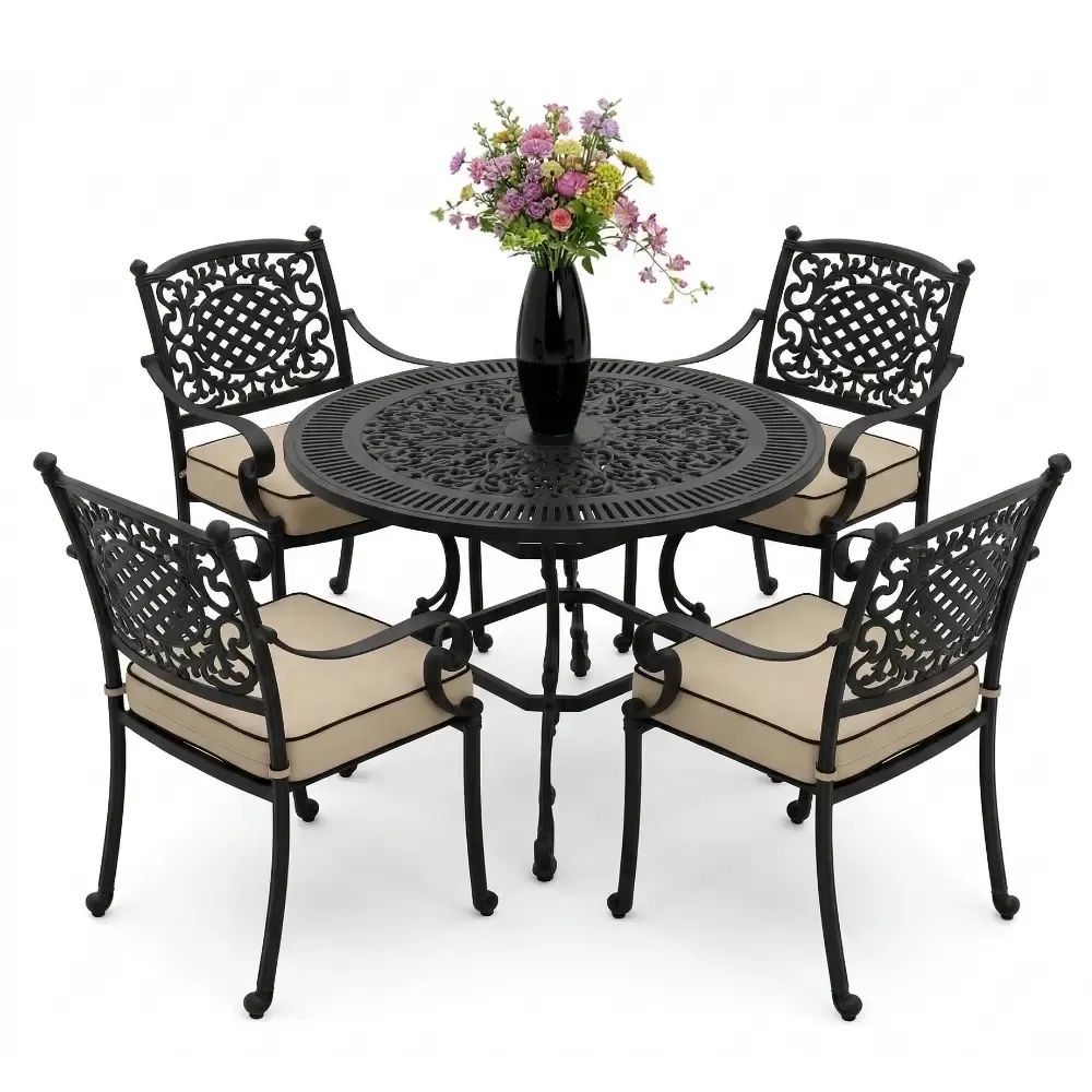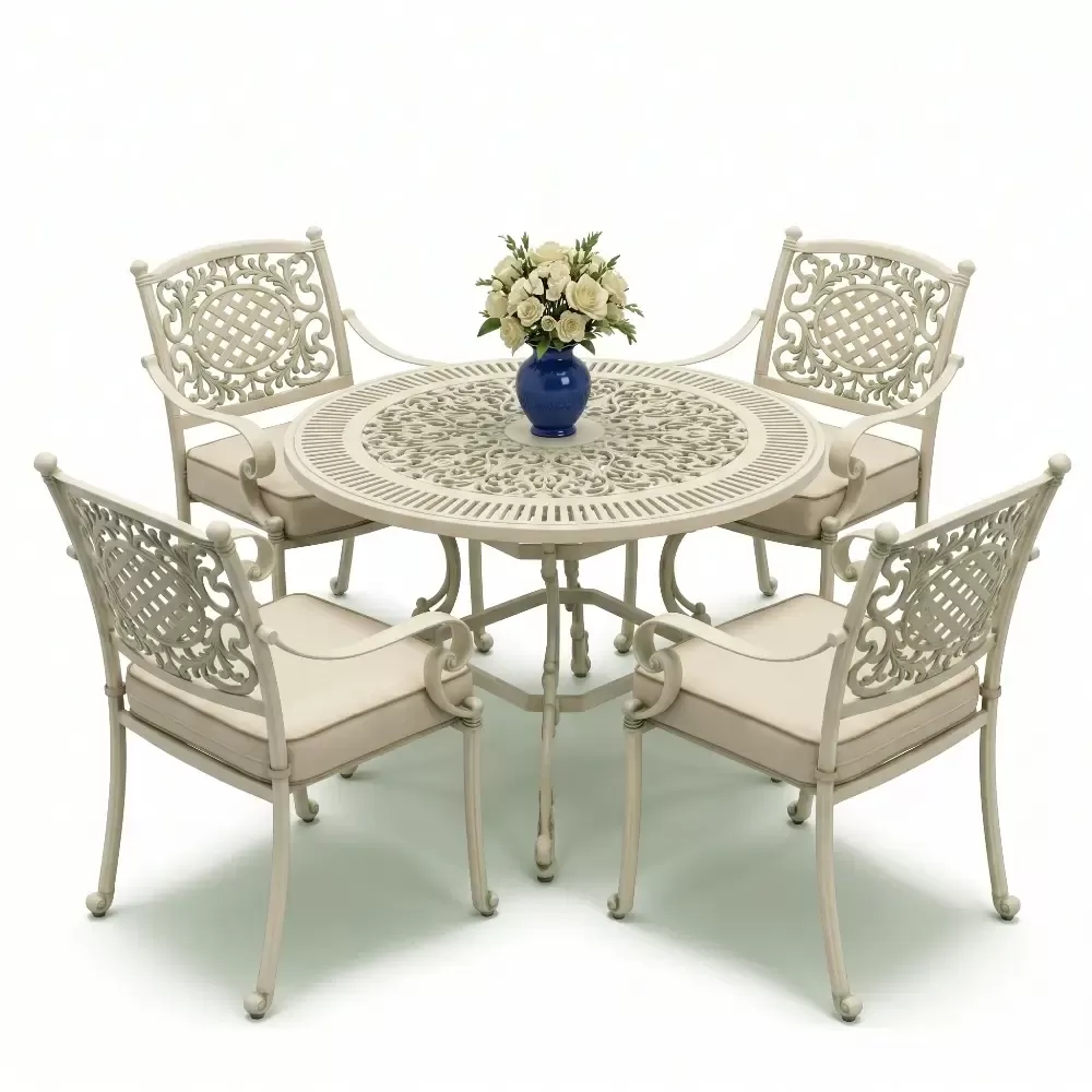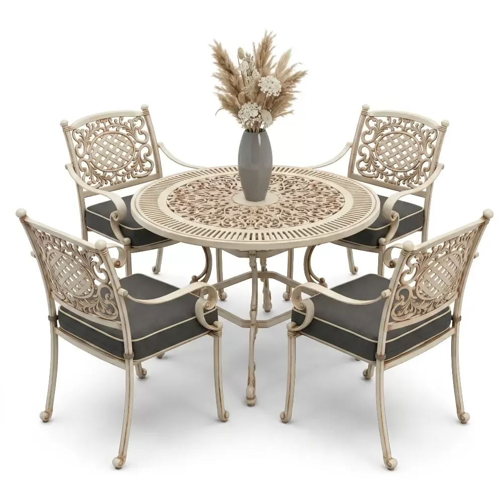 Yuvarlak Masa E:90 D:90 Y: 72 cm | Mimari Alüminyum Döküm ile 4 Kişilik Yaşam Alanı