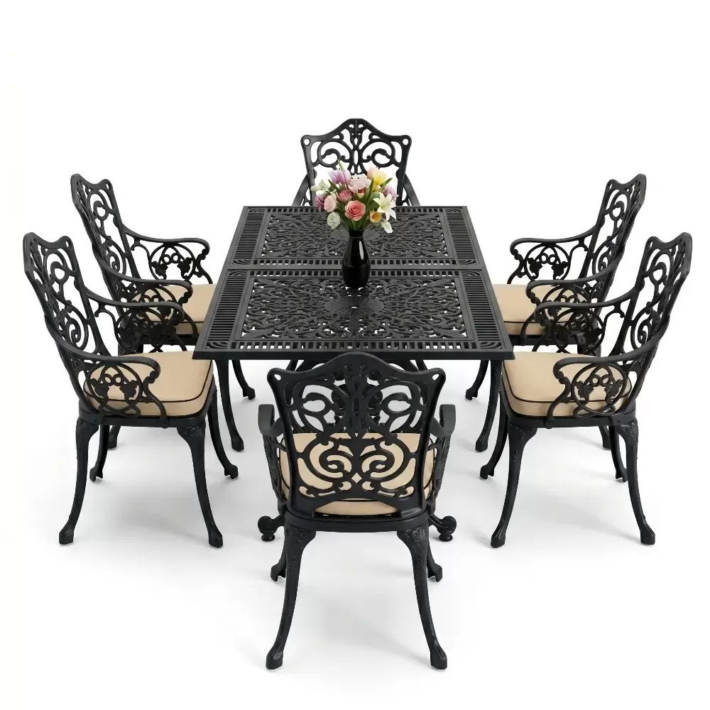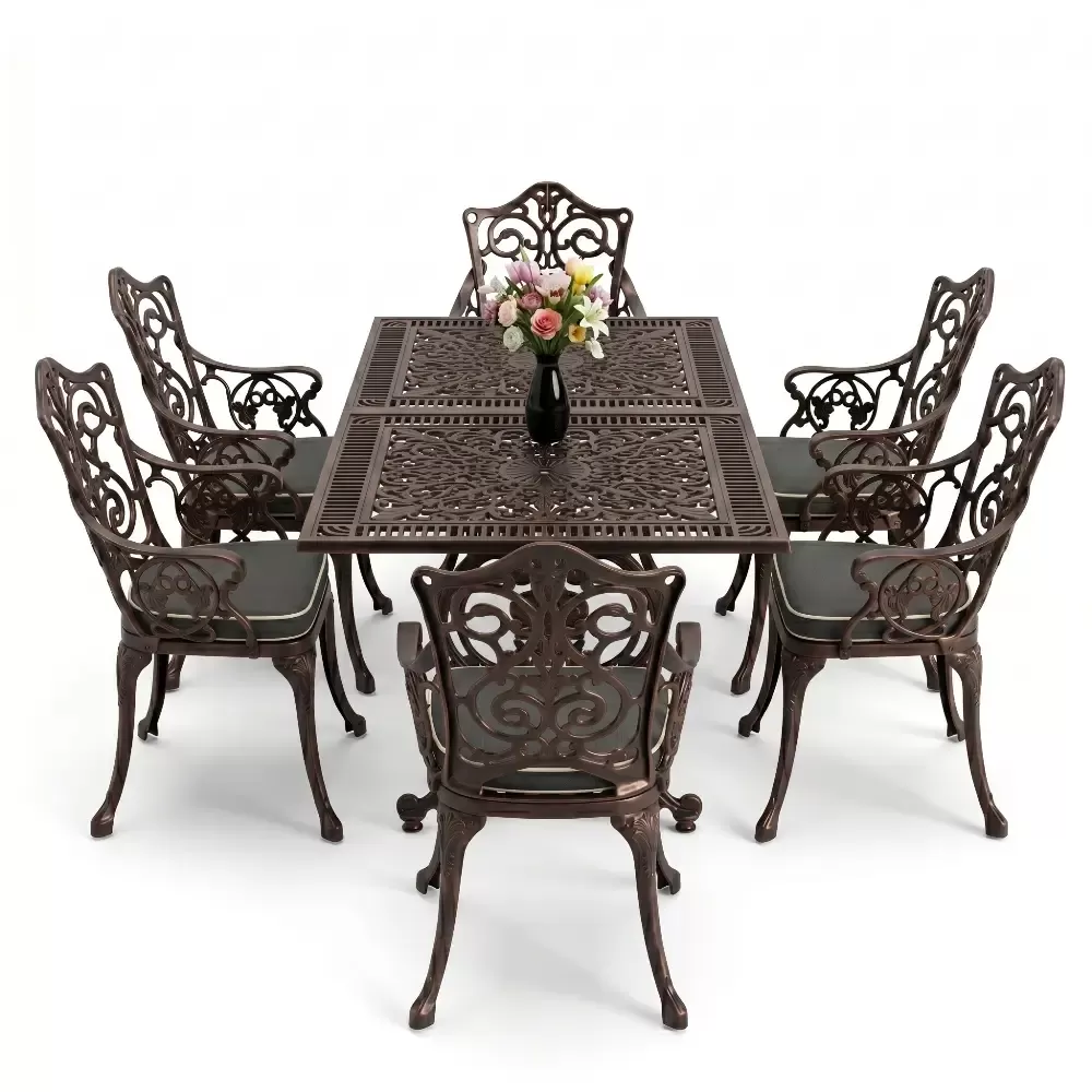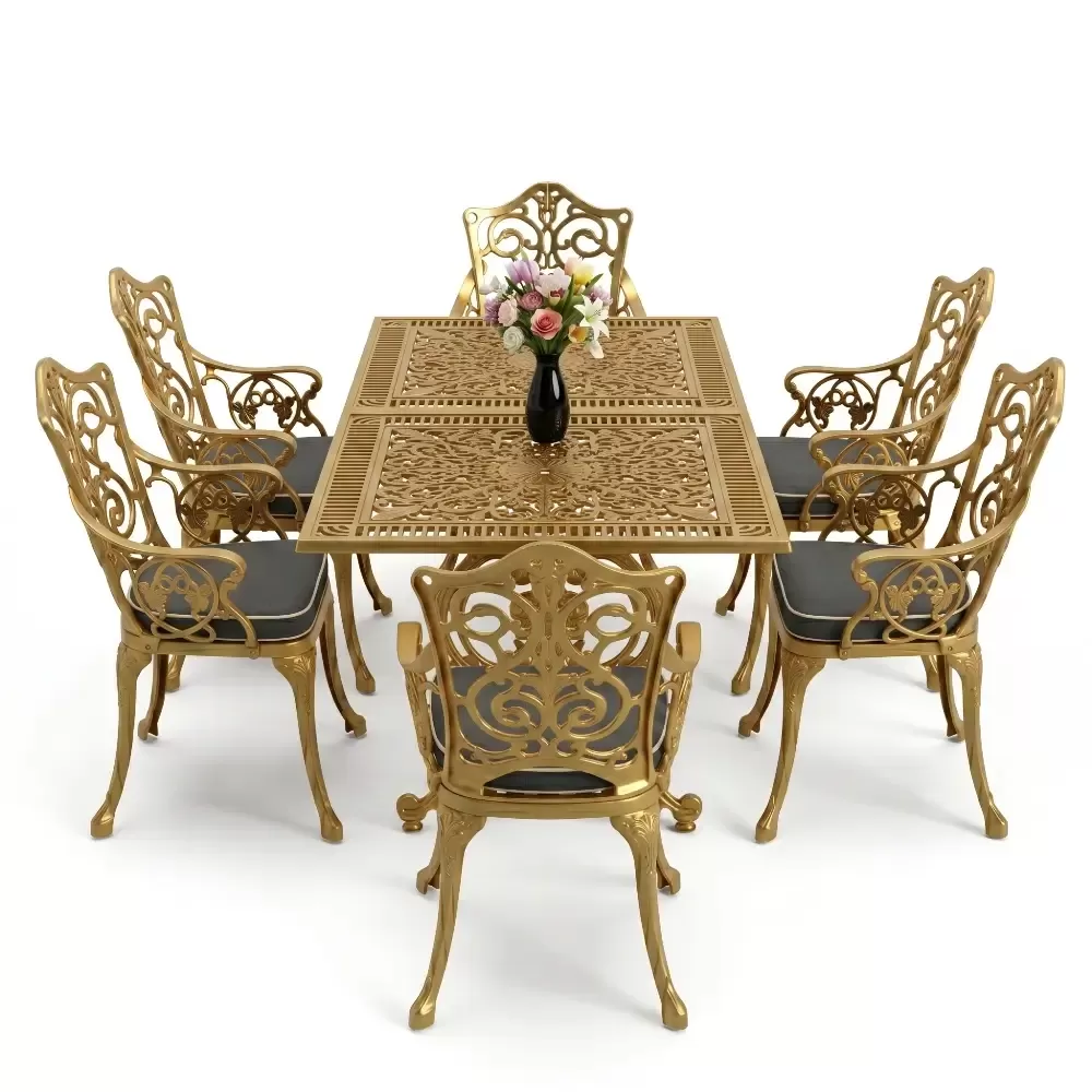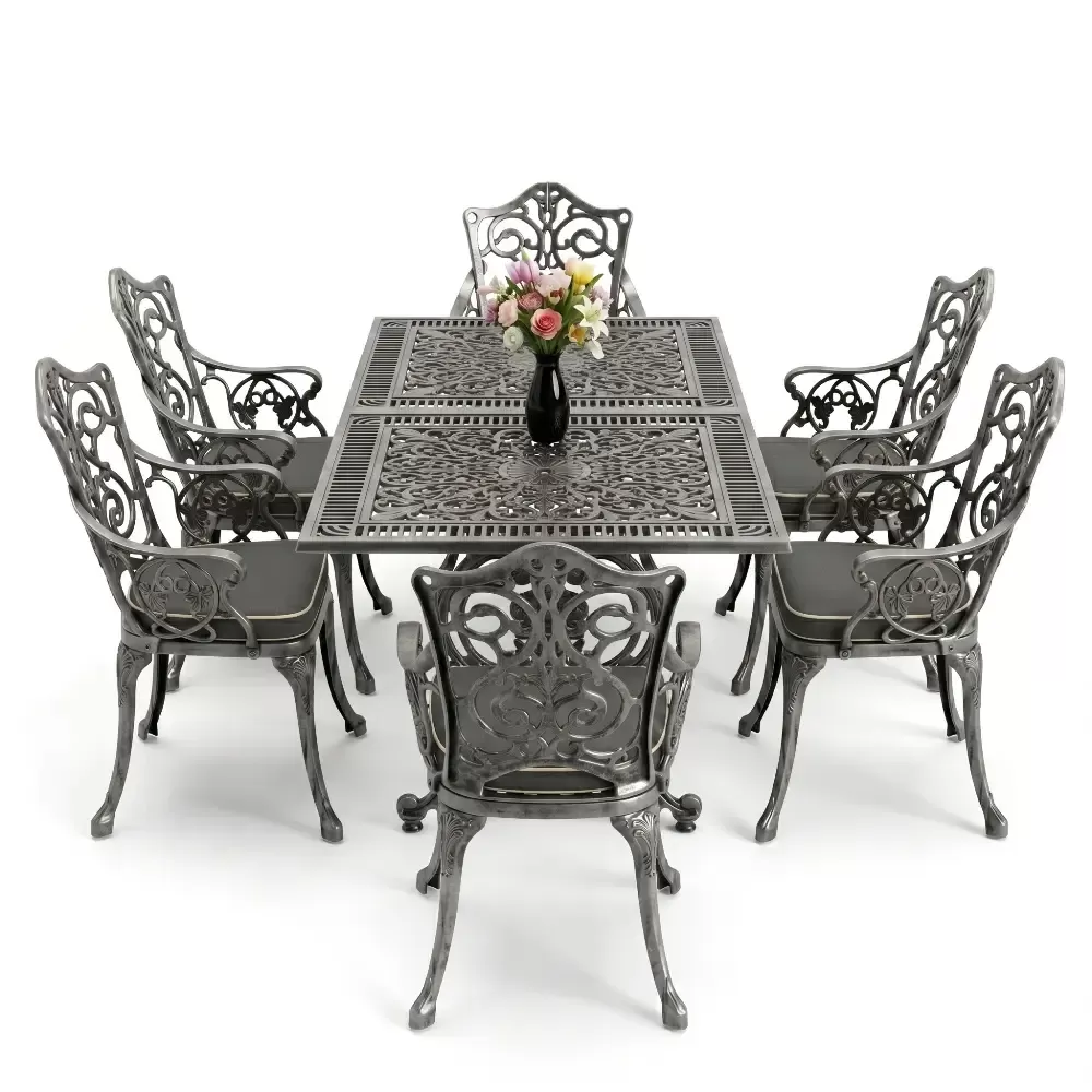 Bahce ve teras dekorasyonunda klasik ferforje ruhunu modern dokum teknolojisiyle bulusturan 84 MHS yemek takimi, dikdortgen formuyla mekaninizda maksimum verimlilik saglar. Altı kisilik genis oturma kapasitesi ve ergonomik yapisi sayesinde uzun soluklu sohbetlerinize eslik etmek uzere Akbrella kalitesiyle uretilmistir. Aluminyum dokumun sagladigi paslanmazlik ve yuksek dayaniklilik ozellikleri, urunu sadece bir mobilya degil, uzun yillara meydan okuyan bir yatirim haline getiriyor.