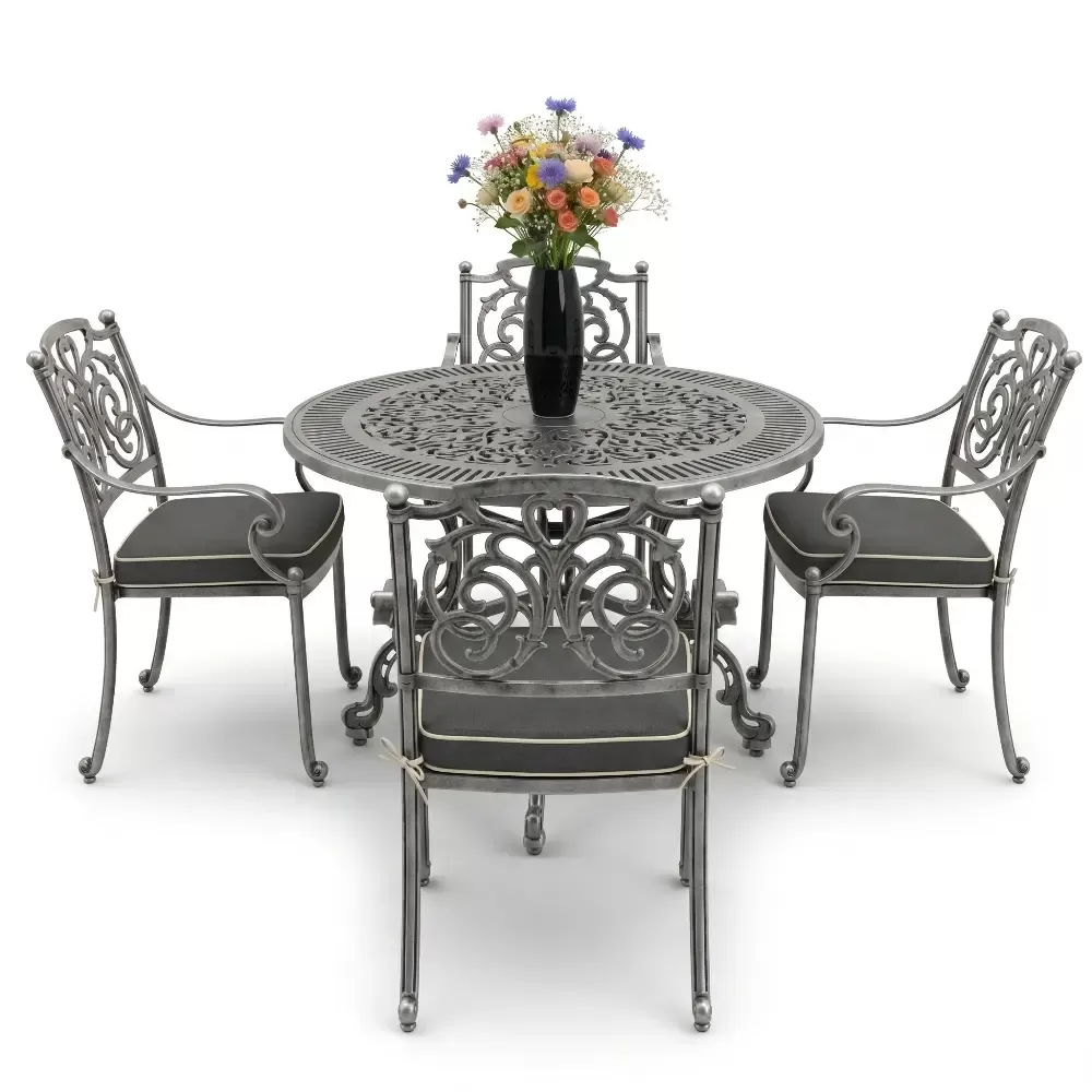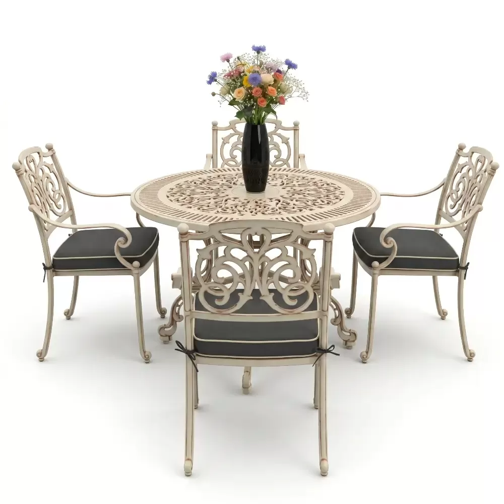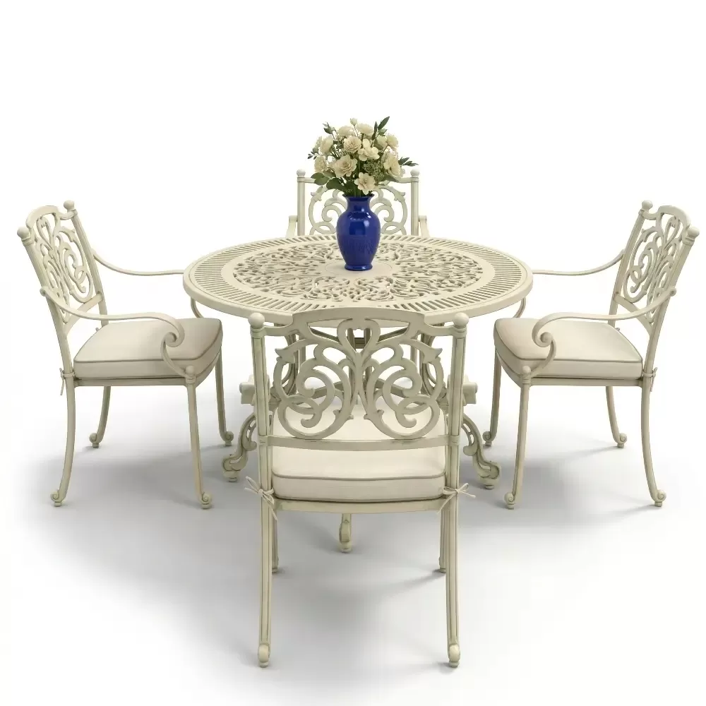 Yuvarlak Masa E:90 x D:90 x Y: 72 cm 4 Kişilik alüminyum döküm masa ve sandalye takımı (Mindersiz Fiyatı)