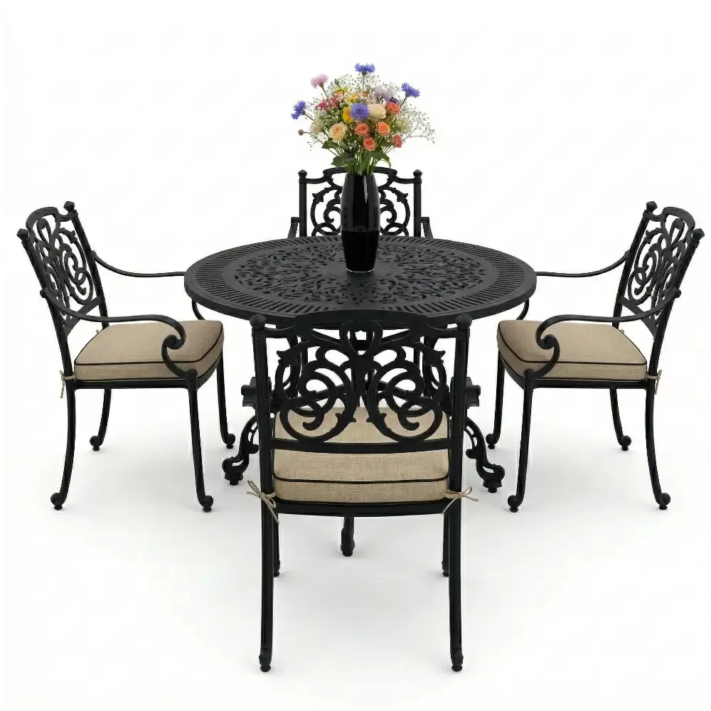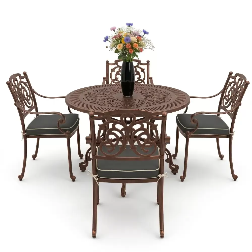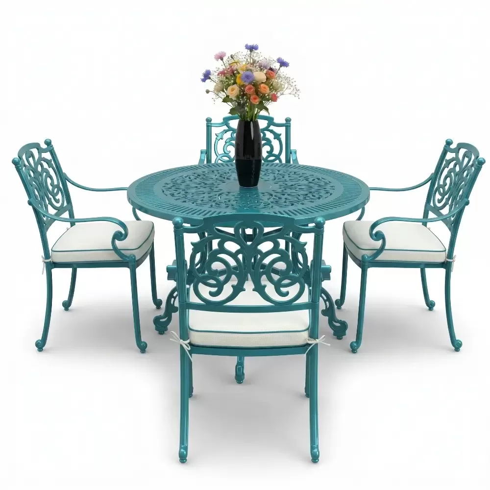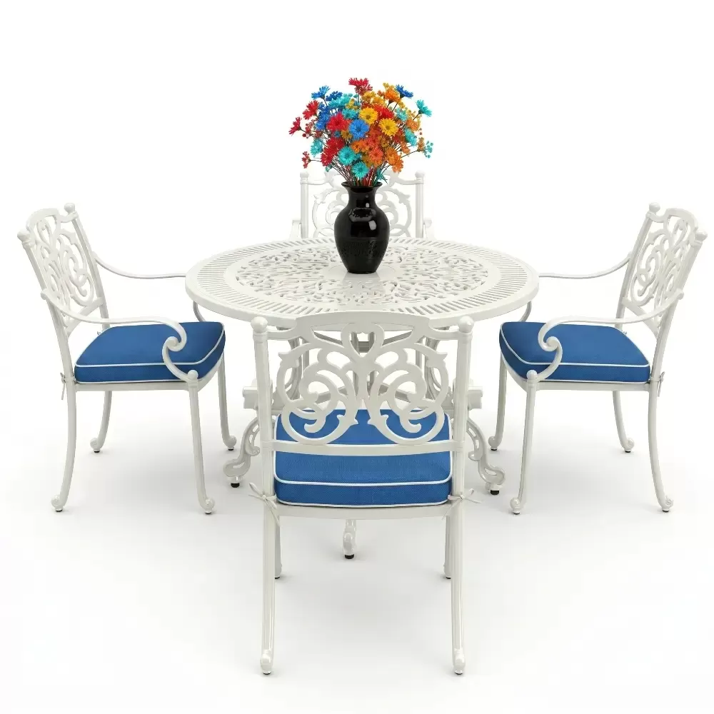 Yuvarlak Masa E:90 x D:90 x Y: 72 cm 4 Kişilik alüminyum döküm masa ve sandalye takımı (Mindersiz Fiyatı)