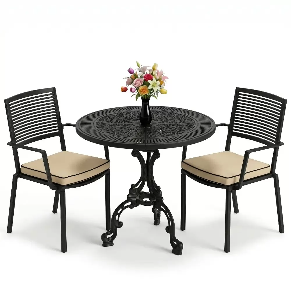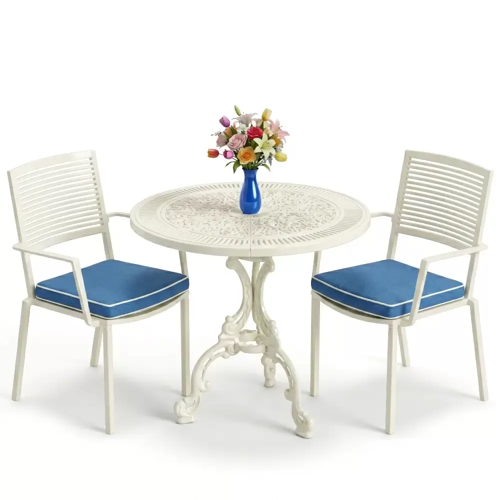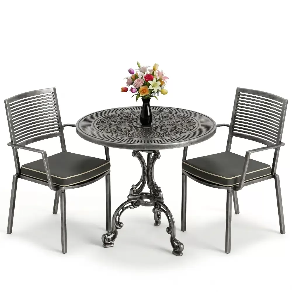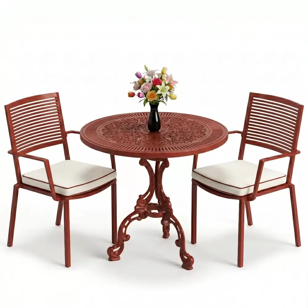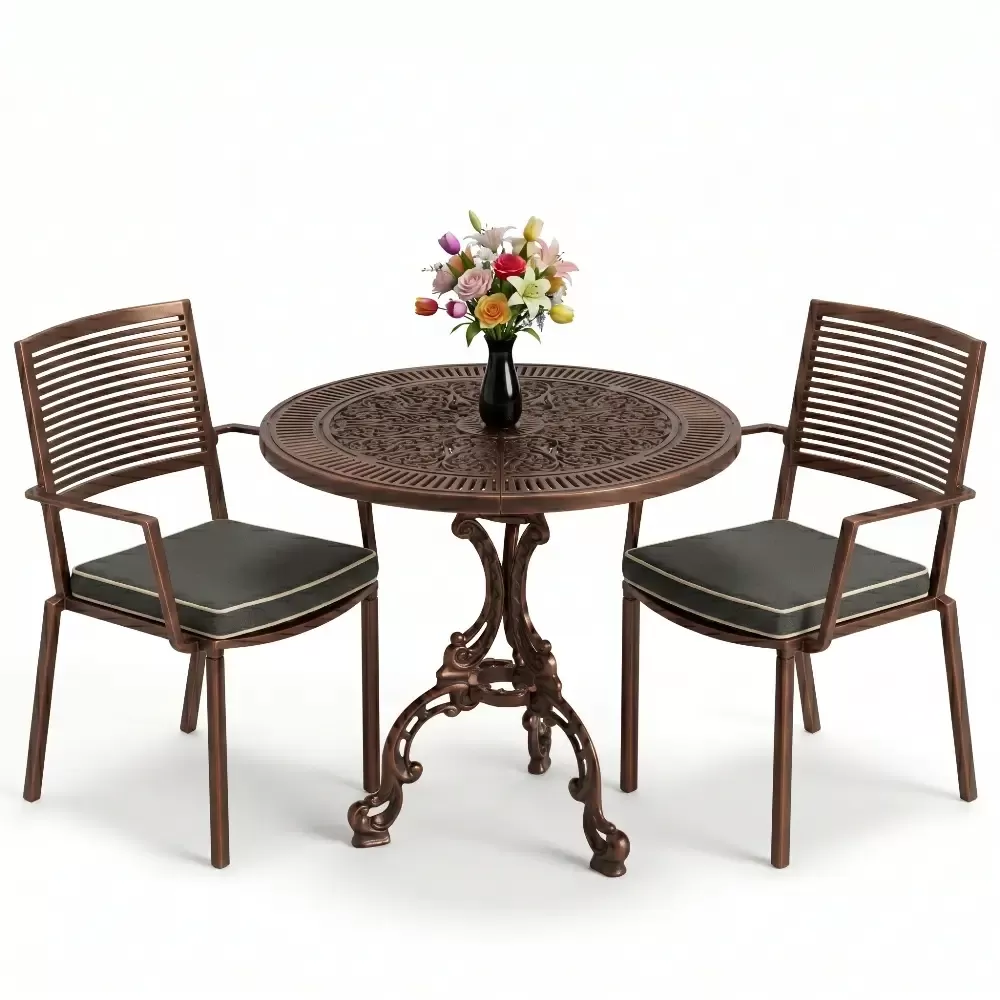 Bahçe, balkon ve teras gibi dış mekanlarda şıklığı ve sağlamlığı bir arada arayanlar için Akbrella-nın 10 CAS serisi ideal bir çözümdür. Geleneksel ferforje sanatının estetiğini modern alüminyum döküm teknolojisi ile birleştiren bu set, iki kişilik kapasitesiyle kompakt ve zarif bir kullanım sunar. 75x75 cm ölçülerindeki yuvarlak masa formu, sosyal etkileşimi artıran ergonomik bir yapı sunarken en dar alanlarda dahi ferah bir atmosfer oluşturur.
