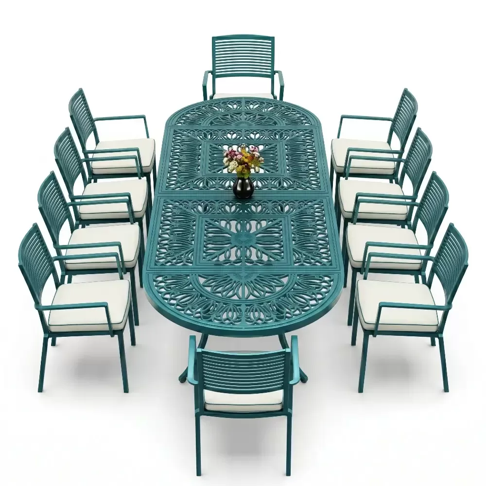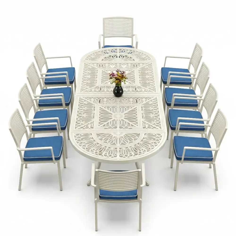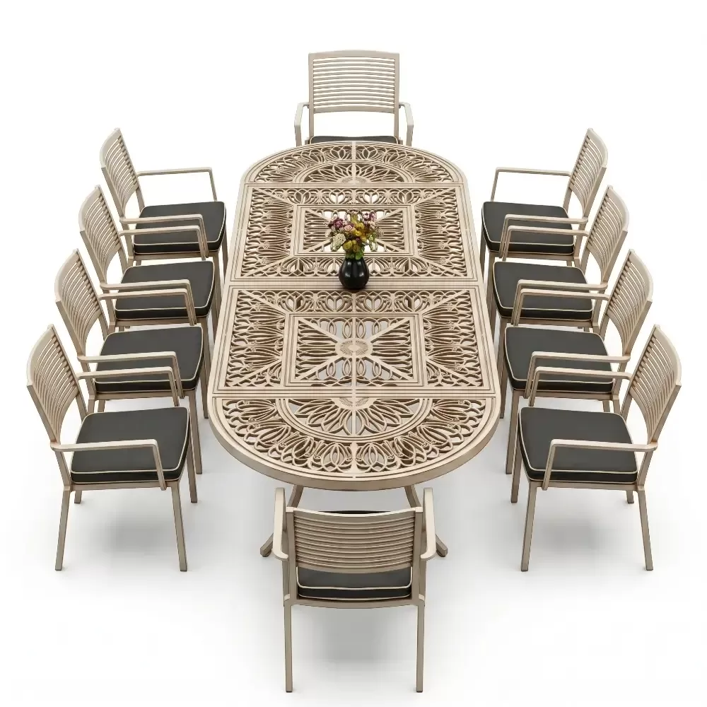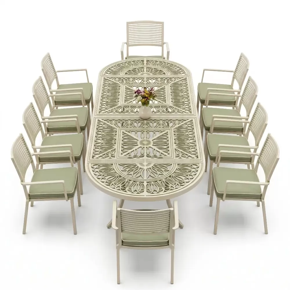 Oval Masa E:100 x D:300 x Y: 72 cm 10 Kişilik alüminyum döküm masa ve sandalye takımı (Mindersiz Fiyatı)