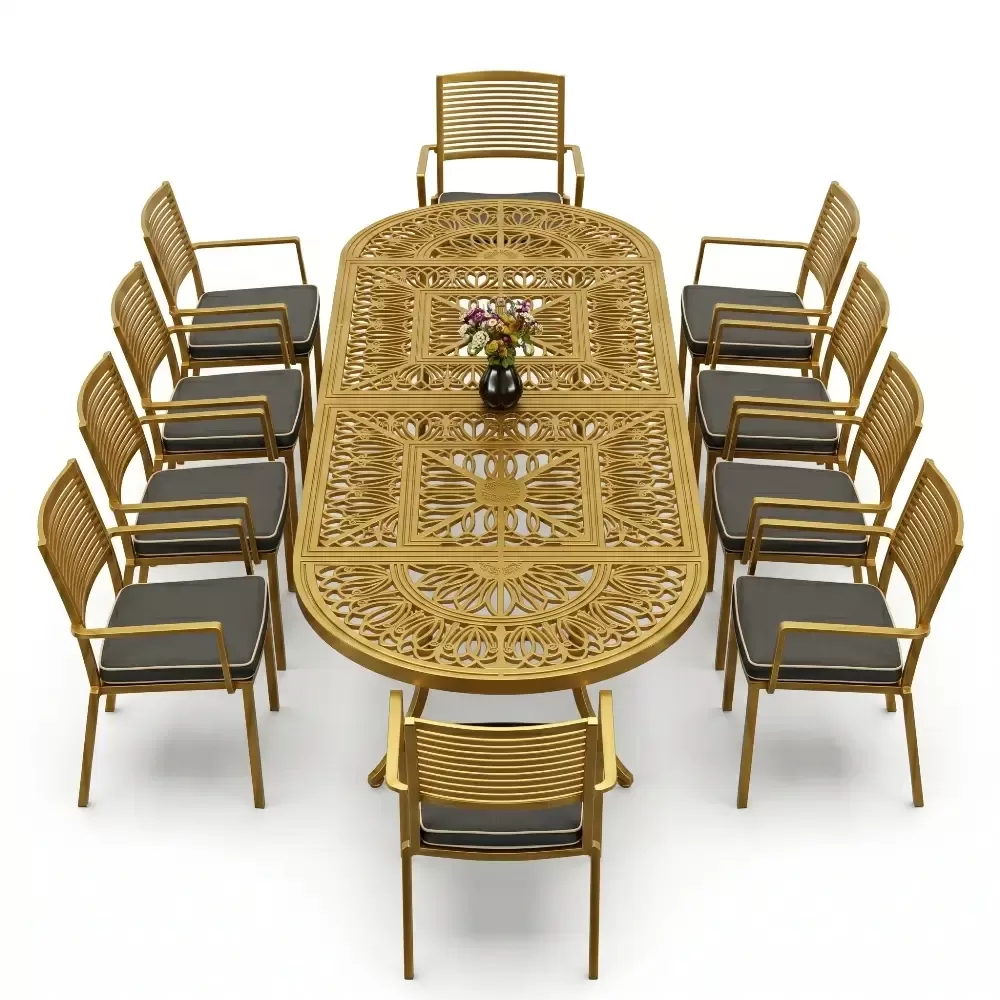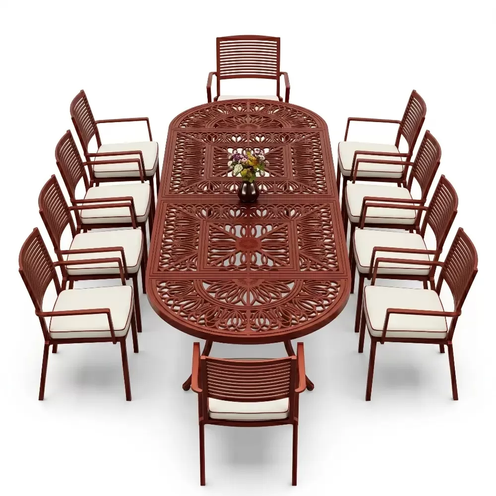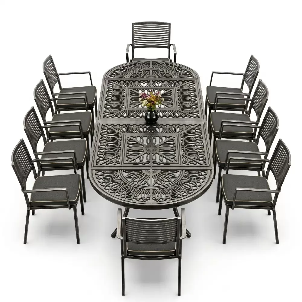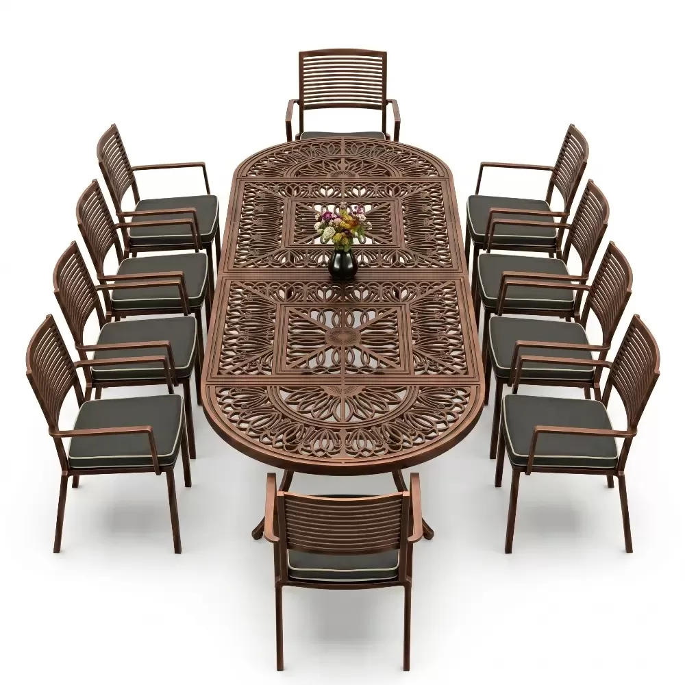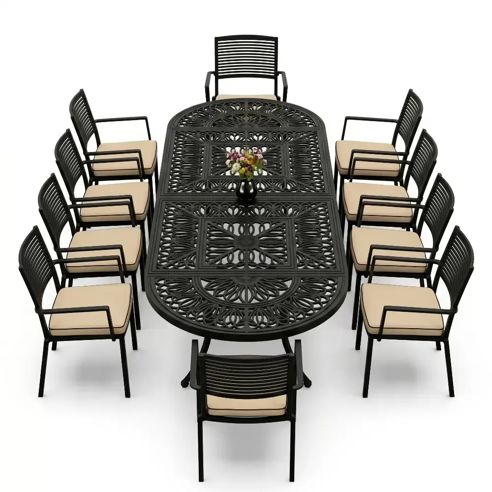 Oval Masa E:100 x D:300 x Y: 72 cm 10 Kişilik alüminyum döküm masa ve sandalye takımı (Mindersiz Fiyatı)