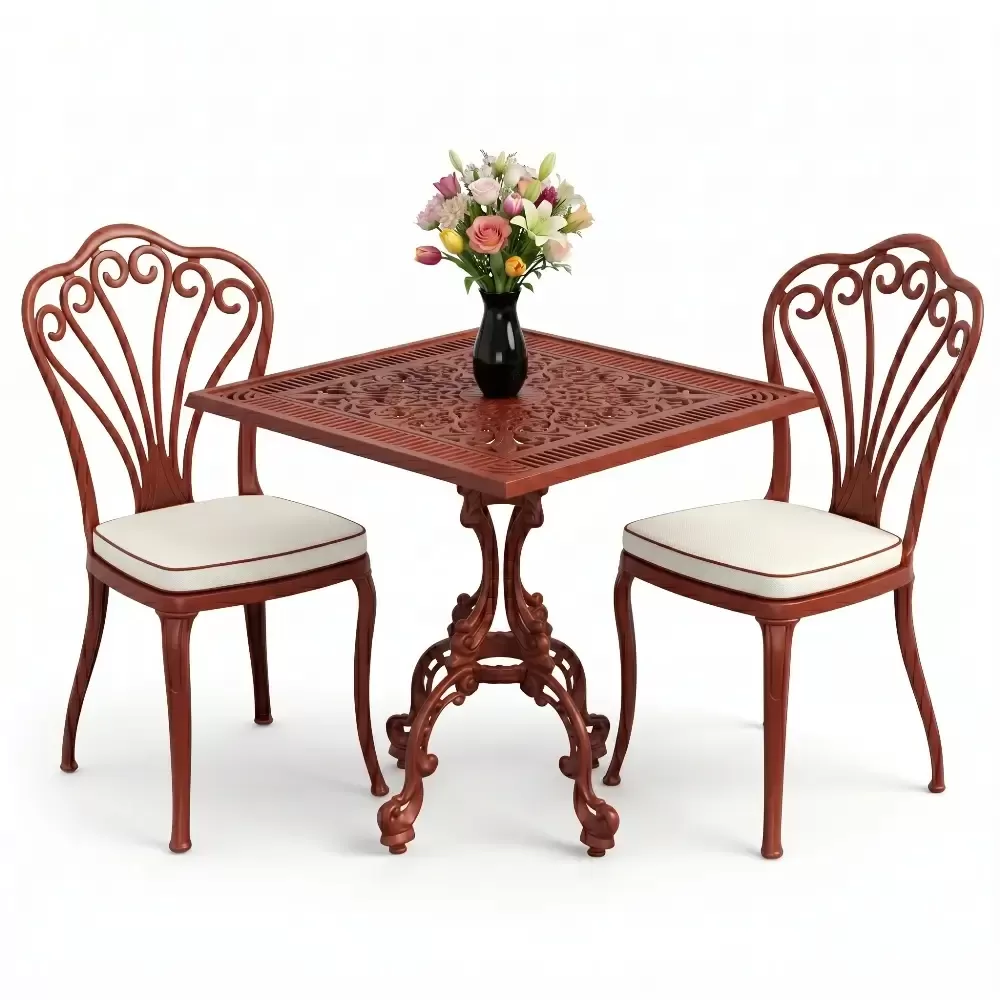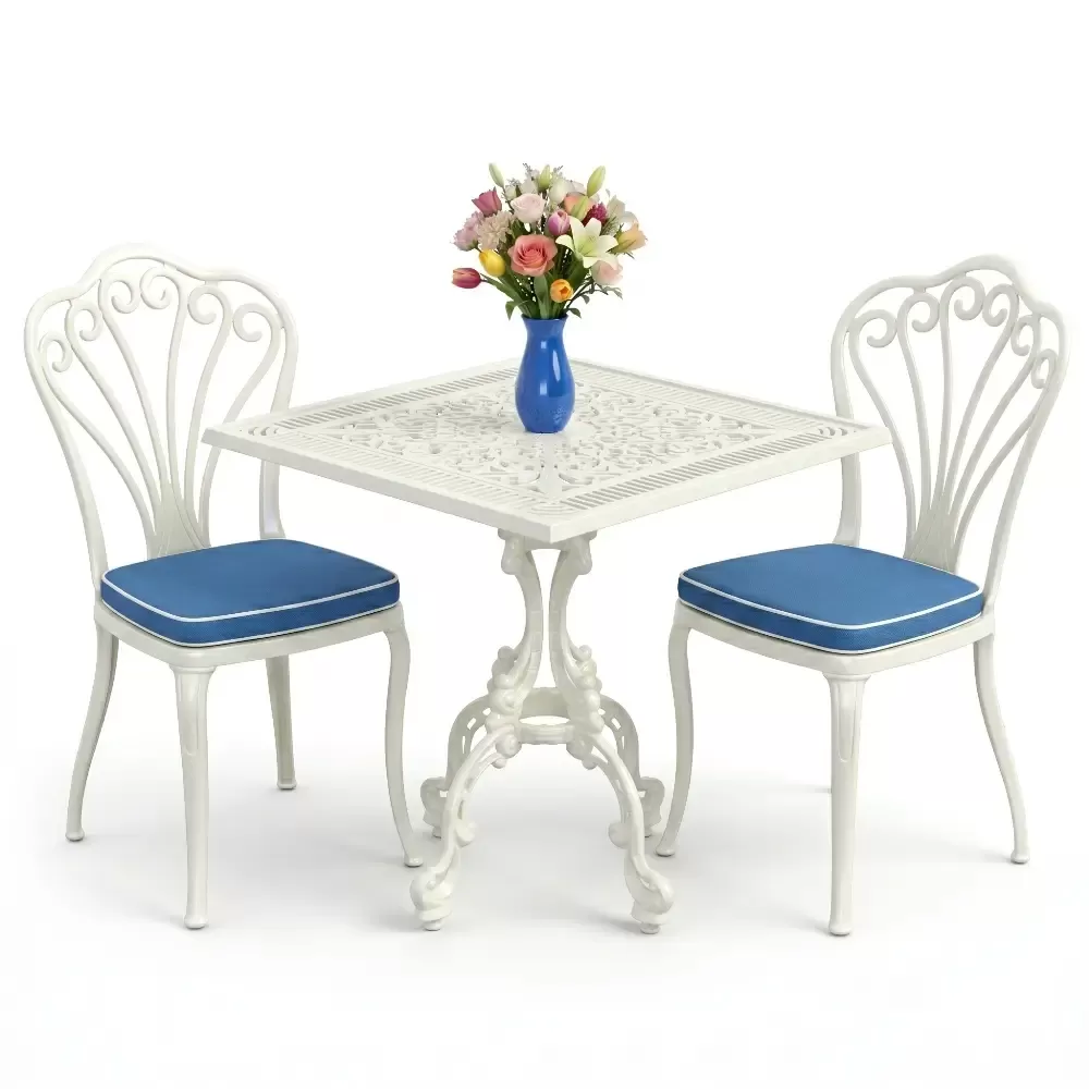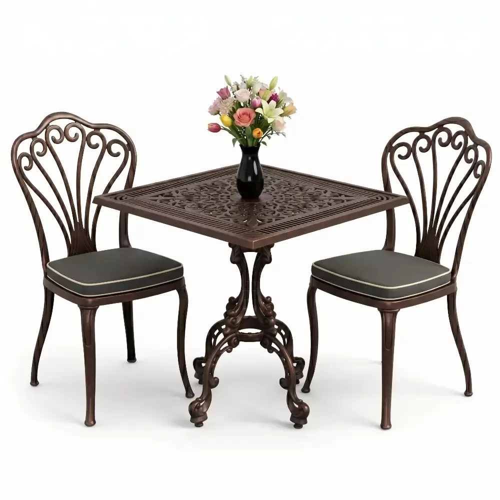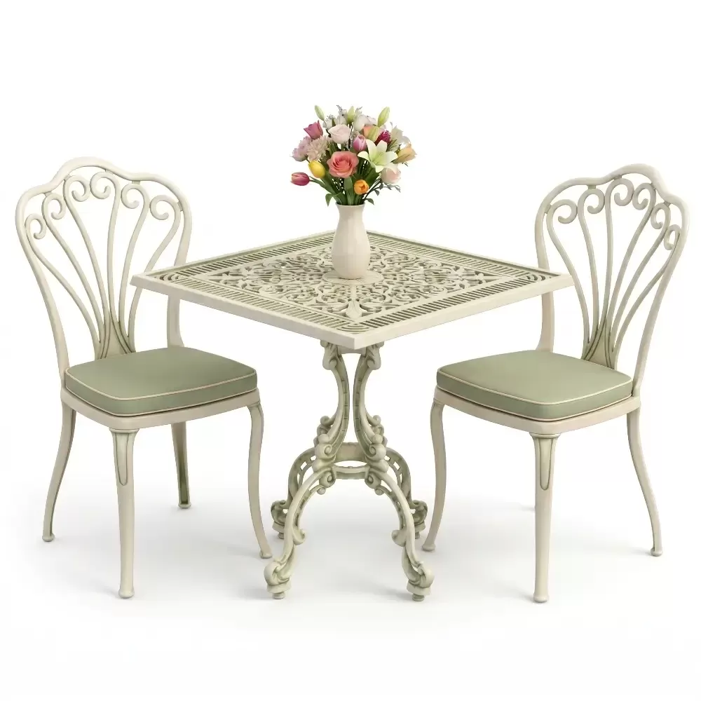 Yüksek kaliteli alüminyum döküm malzemeden üretilen bu takım, doğa şartlarına karşı tam direnç gösterecek şekilde tasarlanmıştır. Demir mobilyaların aksine paslanma ve korozyon riski barındırmaz. Elektrostatik fırın boya teknolojisi ile desteklenen yüzey dokusu; UV ışınlarına, aşırı sıcaklara ve nemli ortamlara karşı üstün koruma sağlayarak ürünün ilk günkü zarafetini uzun yıllar boyunca korumasına yardımcı olur.