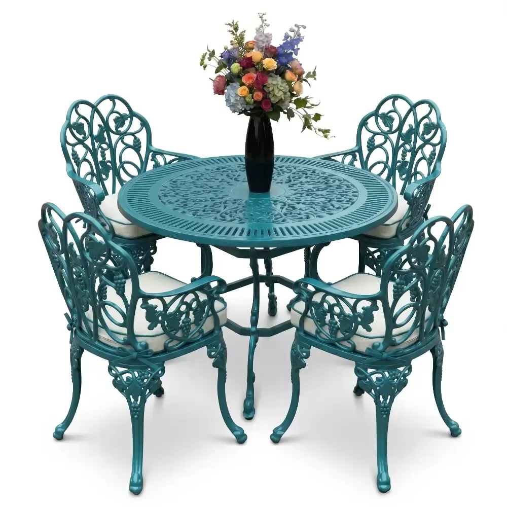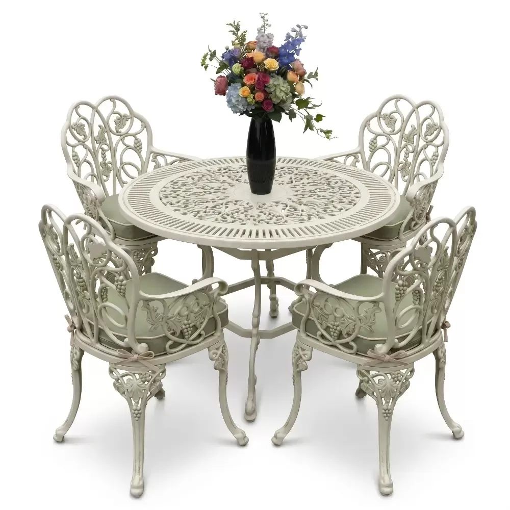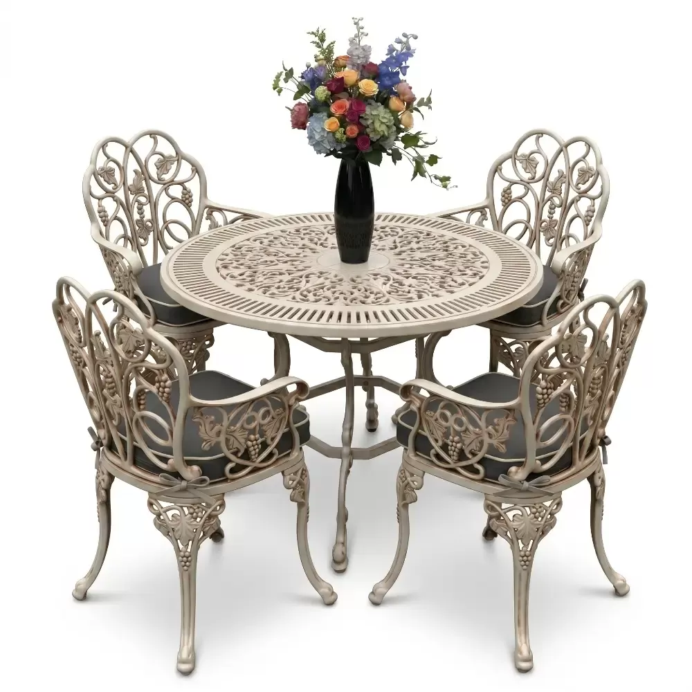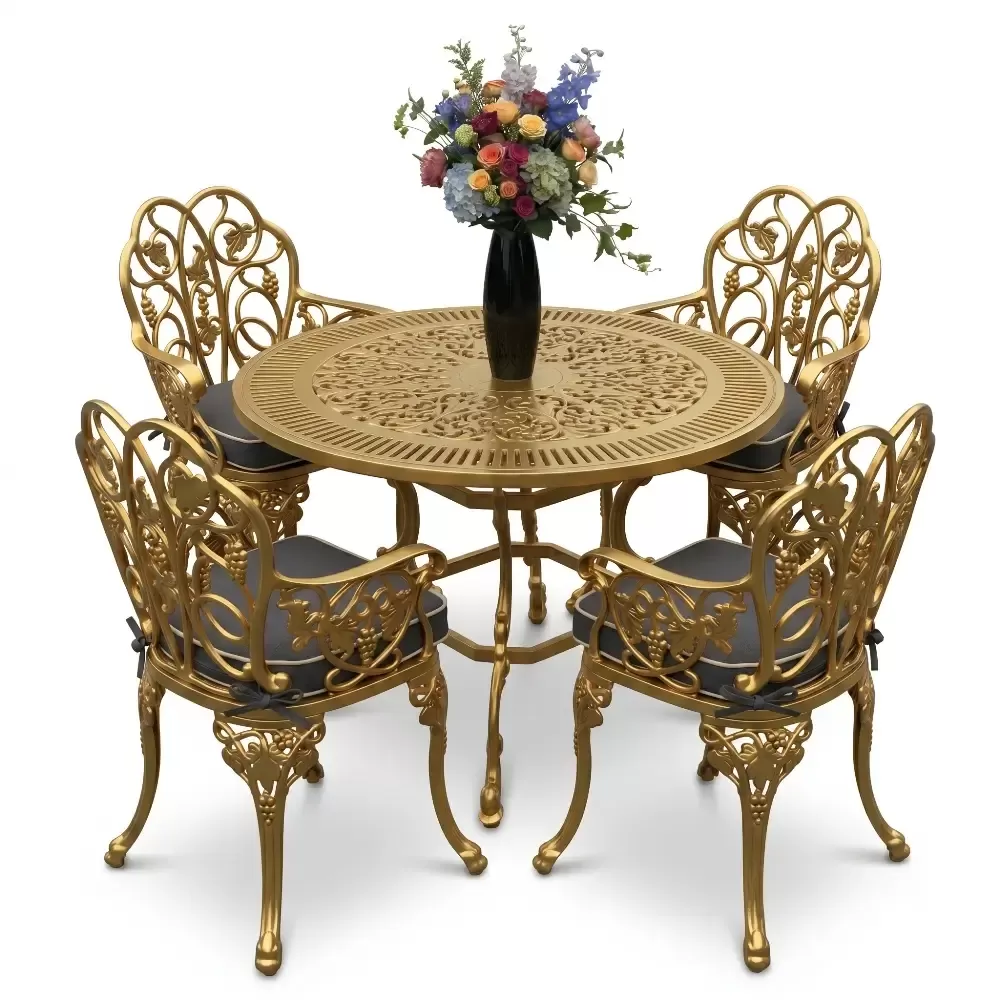 Açık havada geçirilen vakitleri daha sofistike bir seviyeye taşıyan 52 MHS alüminyum döküm masa takımı, yuvarlak formun birleştirici gücünü ferforje sanatının ince işçiliğiyle harmanlıyor. Akbrella uzmanlığıyla hayata geçirilen bu dört kişilik özel set, sadece bir mobilya grubu değil, aynı zamanda bahçenizde veya terasınızda uzun yıllar sürecek bir kalite simgesidir. Klasik çizgilerin modern üretim disipliniyle buluştuğu bu tasarım, döküm alüminyumun hafifliğini sarsılmaz bir dayanıklılıkla sunar.