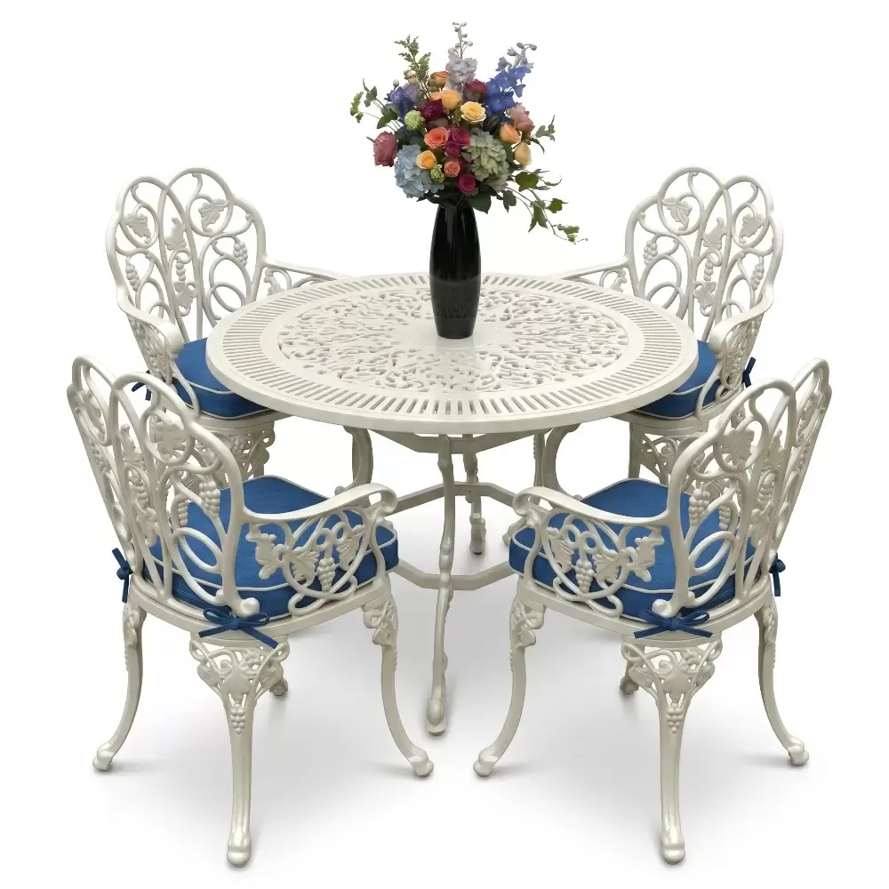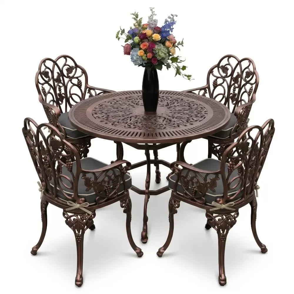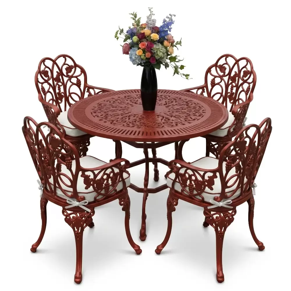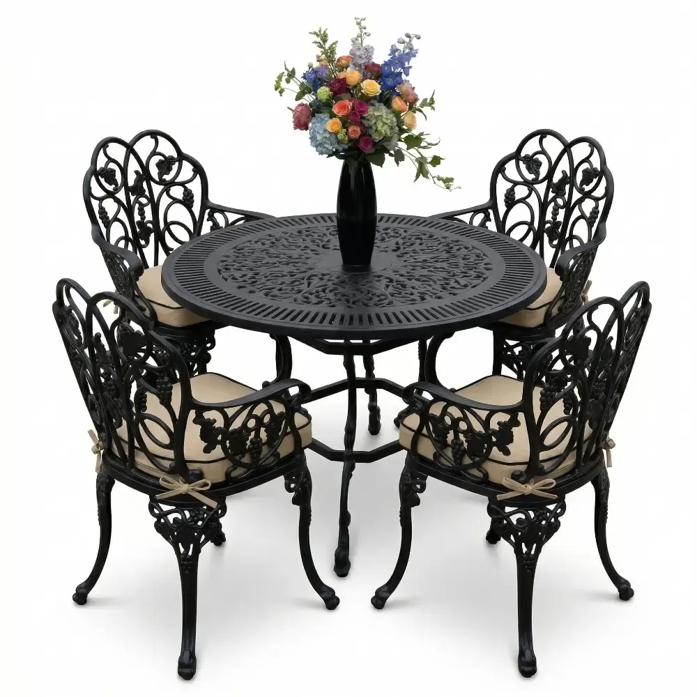 Açık havada geçirilen vakitleri daha sofistike bir seviyeye taşıyan 52 MHS alüminyum döküm masa takımı, yuvarlak formun birleştirici gücünü ferforje sanatının ince işçiliğiyle harmanlıyor. Akbrella uzmanlığıyla hayata geçirilen bu dört kişilik özel set, sadece bir mobilya grubu değil, aynı zamanda bahçenizde veya terasınızda uzun yıllar sürecek bir kalite simgesidir. Klasik çizgilerin modern üretim disipliniyle buluştuğu bu tasarım, döküm alüminyumun hafifliğini sarsılmaz bir dayanıklılıkla sunar.