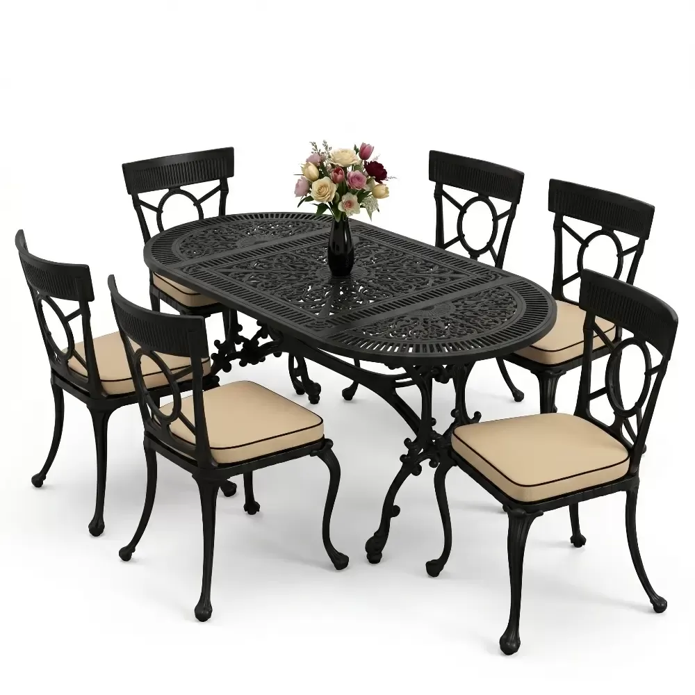 Bu elit oval yemek grubu; luks otellerin havuz baslarindan butik kafelerin bahce bolumlerine, sahil seridindeki yazlik evlerden modern rezidans teraslarina kadar her zeminde yuksek uyum saglar. Aluminyum yapisi sayesinde cok hafif olup yer degistirme ve depolama islemlerinde buyuk kolaylik sunar.