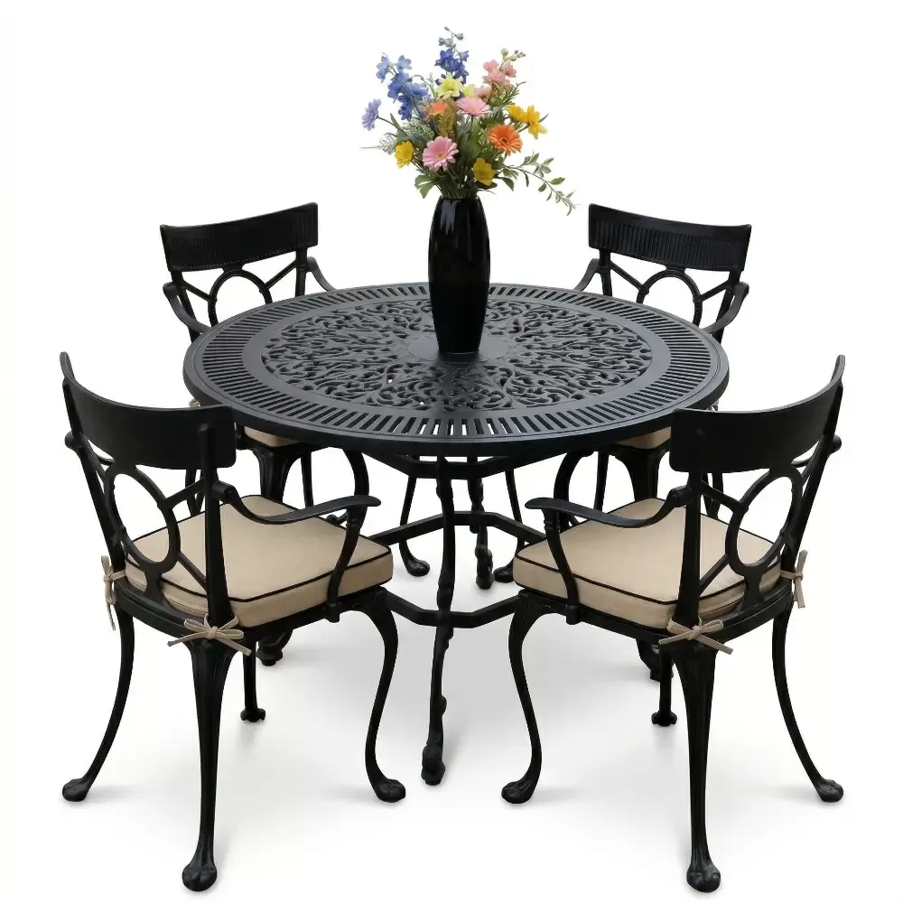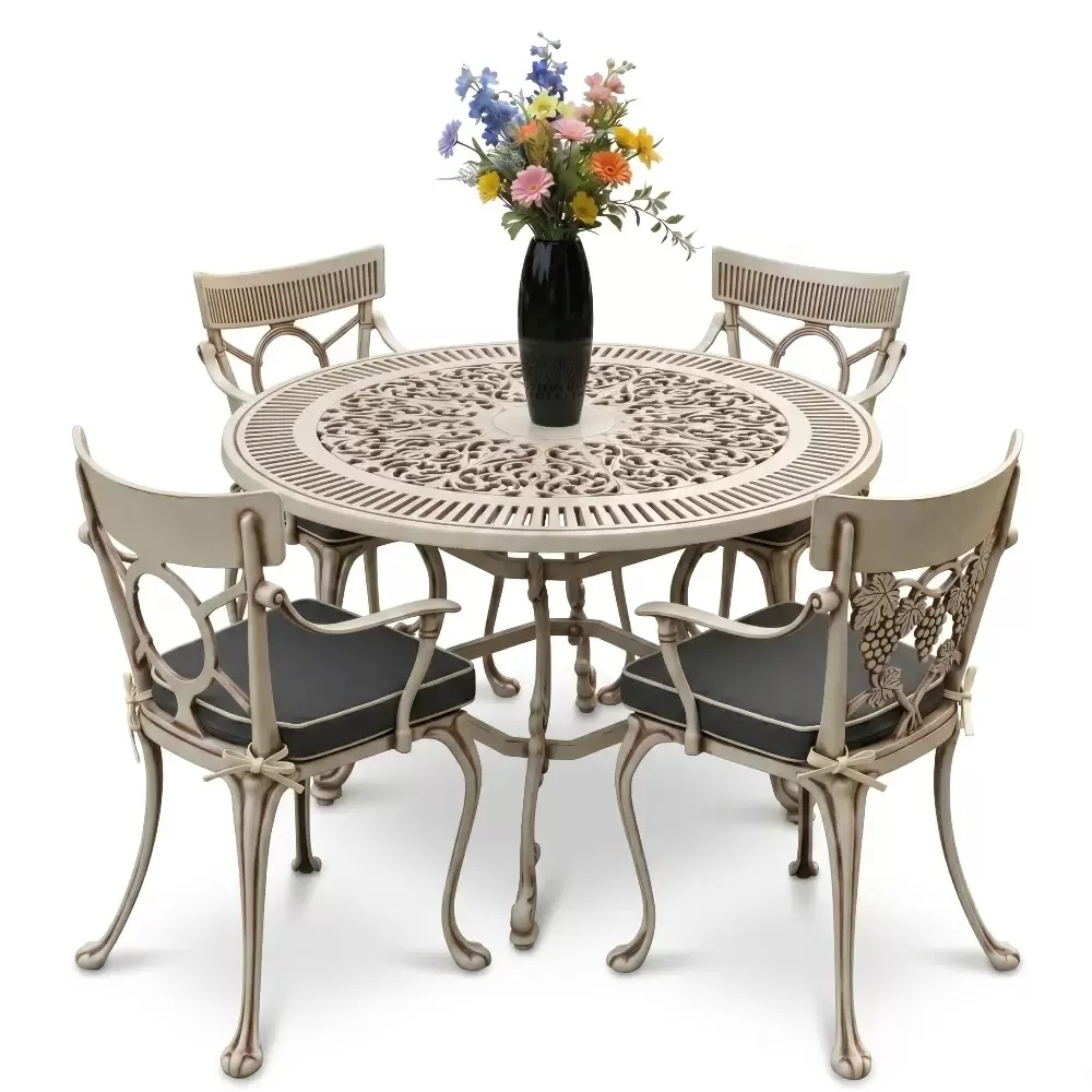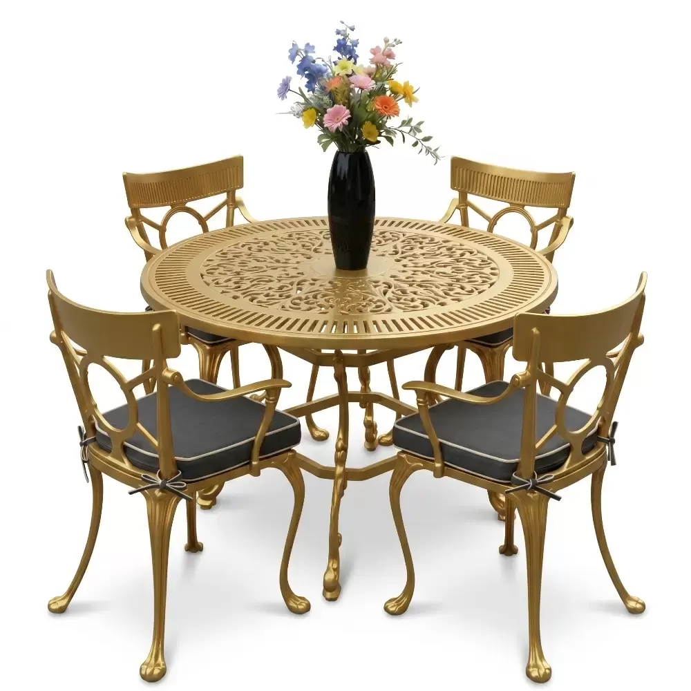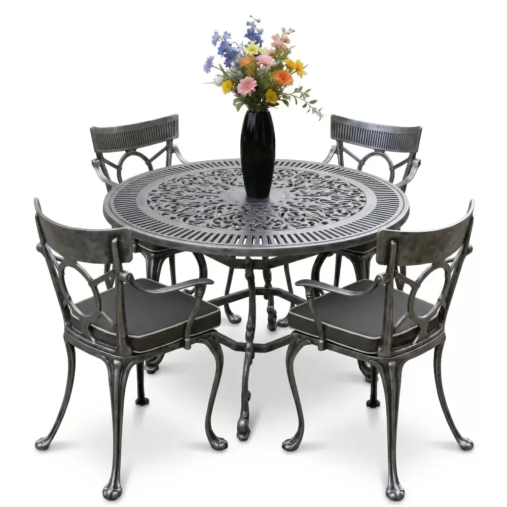 Açık havada geçirilen anları daha değerli kılmak için geliştirilen 54 MHS alüminyum döküm masa takımı, ferforje estetiğini yuvarlak formun birleştirici gücüyle harmanlıyor. Akbrella uzmanlığıyla üretilen bu dört kişilik özel koleksiyon, sadece bir mobilya grubu değil, mekanınıza prestij katan uzun ömürlü bir mimari öğedir. Tasarımındaki akıcı hatlar ve döküm sanatının ince detayları, bahçe ve balkonlarınızda sofistike bir atmosfer oluşturmak üzere titizlikle şekillendirilmiştir.