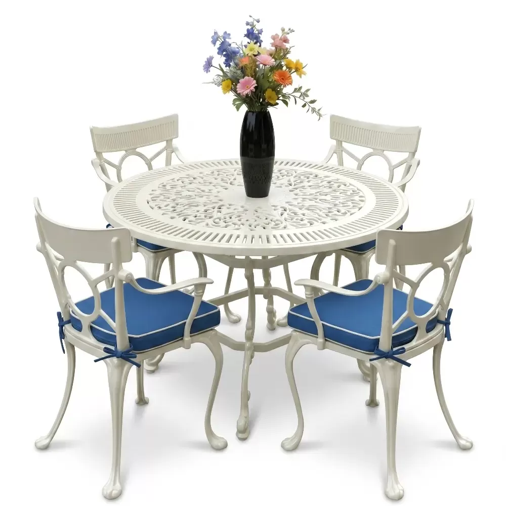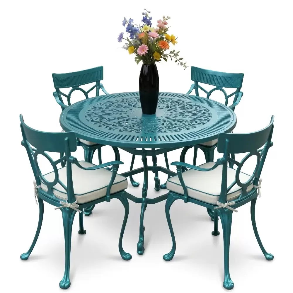 Hafifliği sayesinde kolayca taşınabilen ancak döküm yapısıyla rüzgara karşı dirençli olan bu set; otellerin havuz kenarlarından sahil restoranlarına, ev balkonlarından geniş verandalara kadar geniş bir kullanım yelpazesine sahiptir. Alüminyum dökümün paslanmaz doğası, yüksek nemli sahil bölgelerinde bile tam koruma sağlar. Periyodik bir bakım gerektirmez; sadece su ve yumuşak bir bezle temizlenmesi, estetik görünümün korunması için yeterlidir. Leke tutmayan ve solmayan boya yapısı, hijyenik bir kullanım deneyimi sunar.