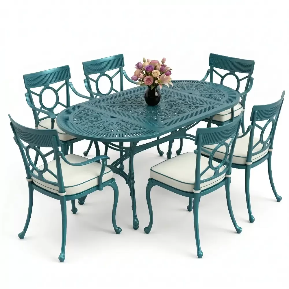 Bu elit oval yemek grubu; luks otellerin havuz baslarindan butik kafelerin bahce bolumlerine, sahil seridindeki yazlik evlerden modern rezidans teraslarina kadar her zeminde yuksek uyum saglar. Aluminyum yapisi sayesinde cok hafif olup yer degistirme ve depolama islemlerinde buyuk kolaylik sunar.