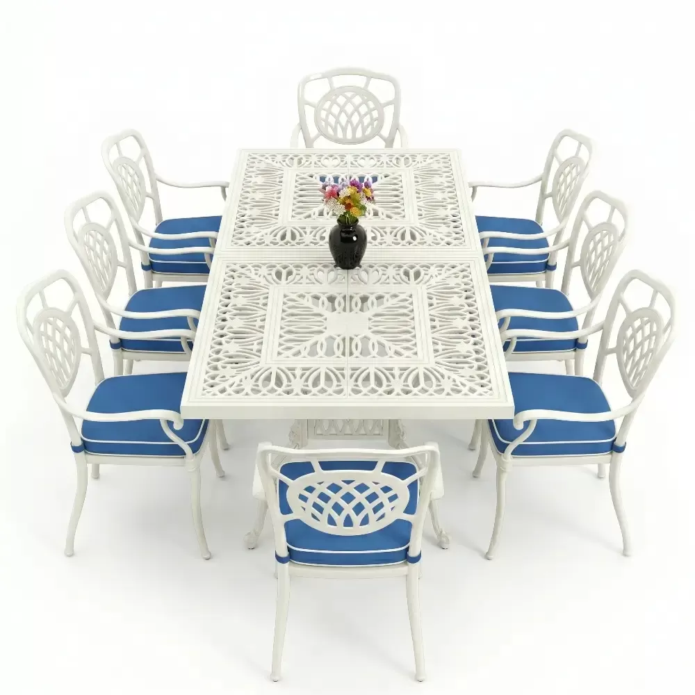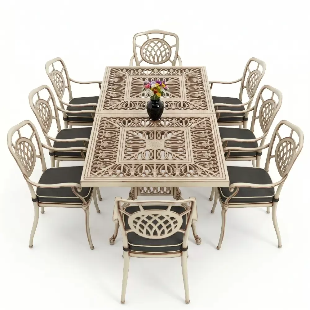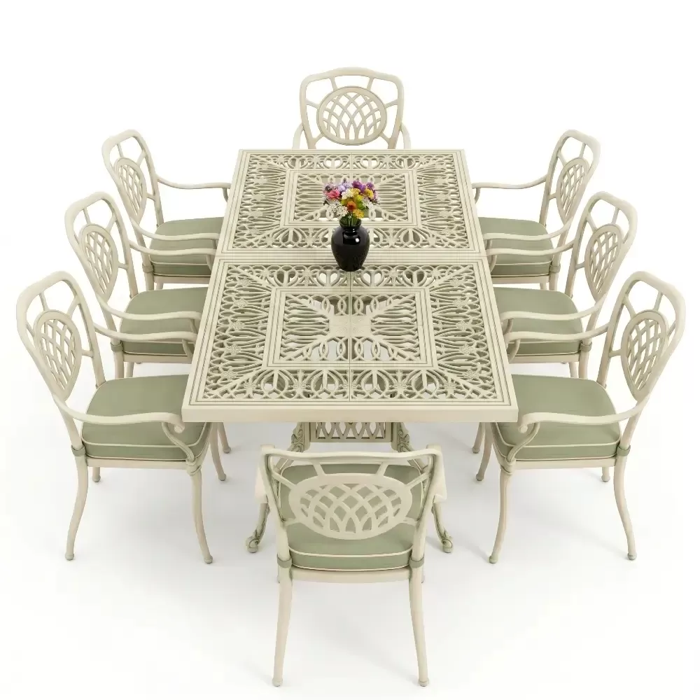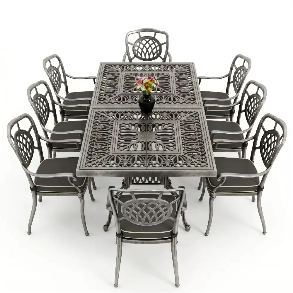 Dikdörtgen Masa E100 x D:200 x Y:72 cm 8 Kişilik ay motifli alüminyum döküm masa ve sandalye takımı (Mindersiz Fiyatı)