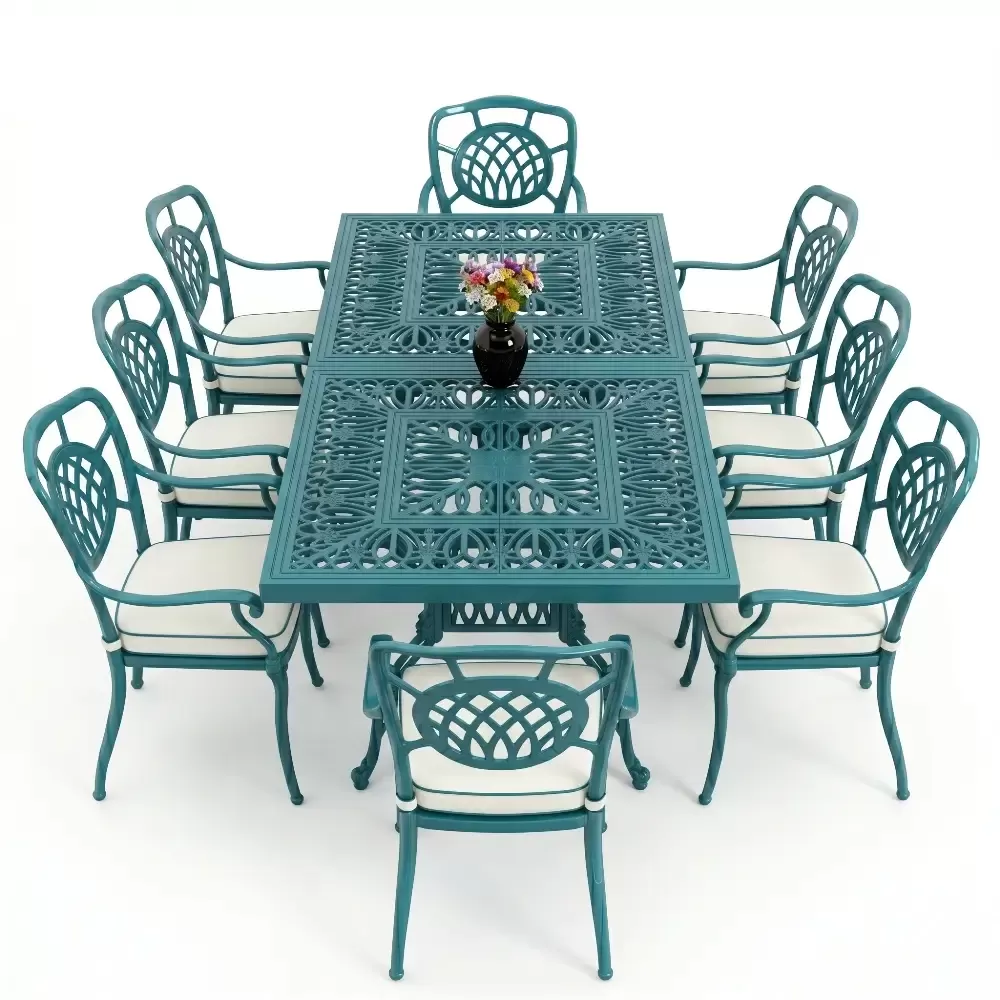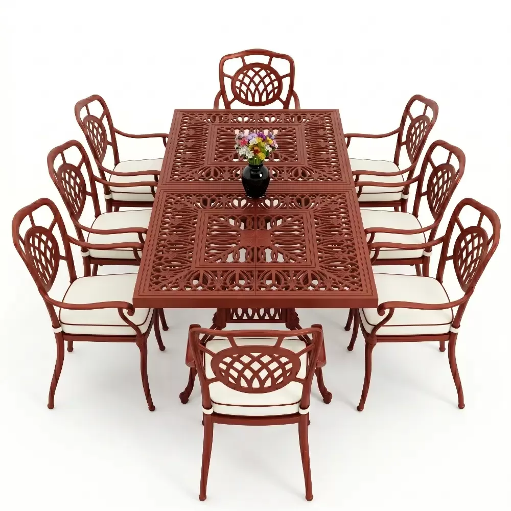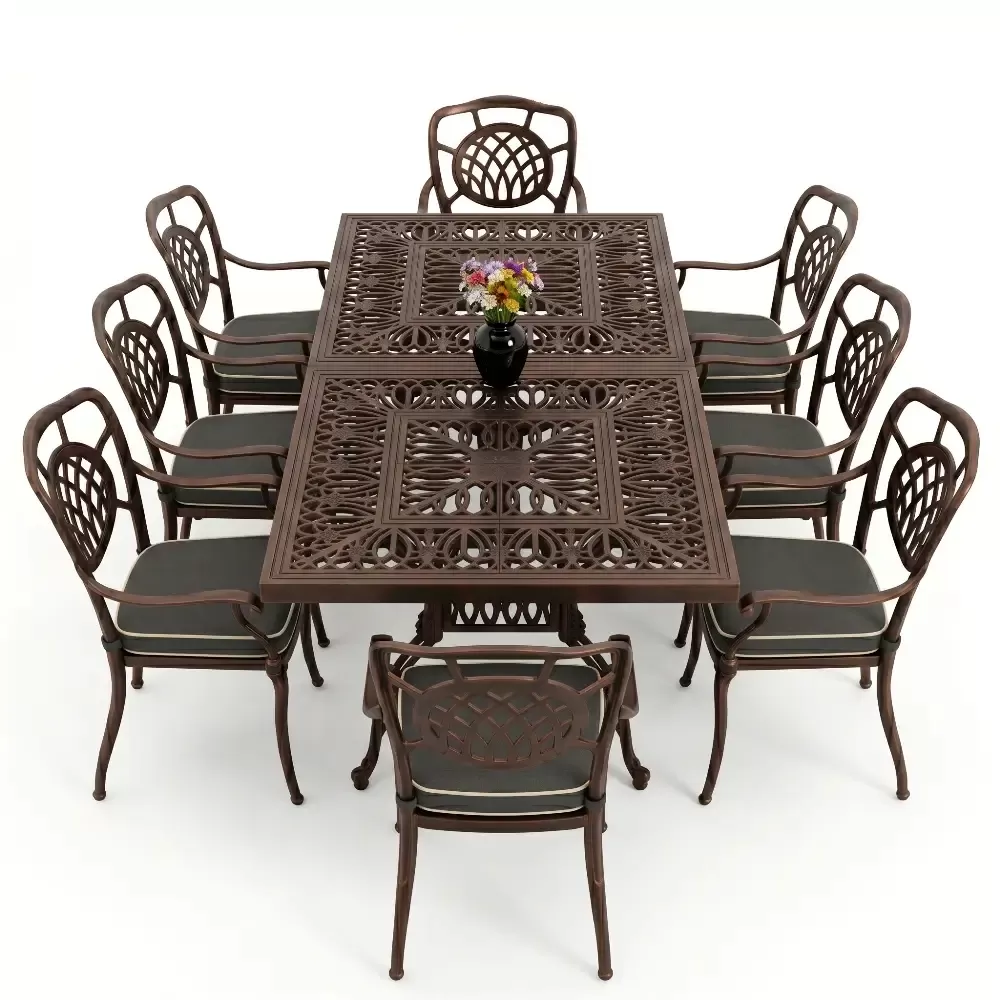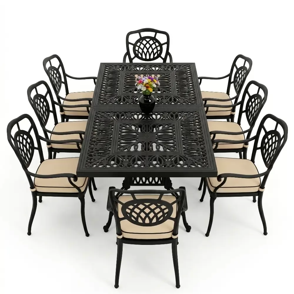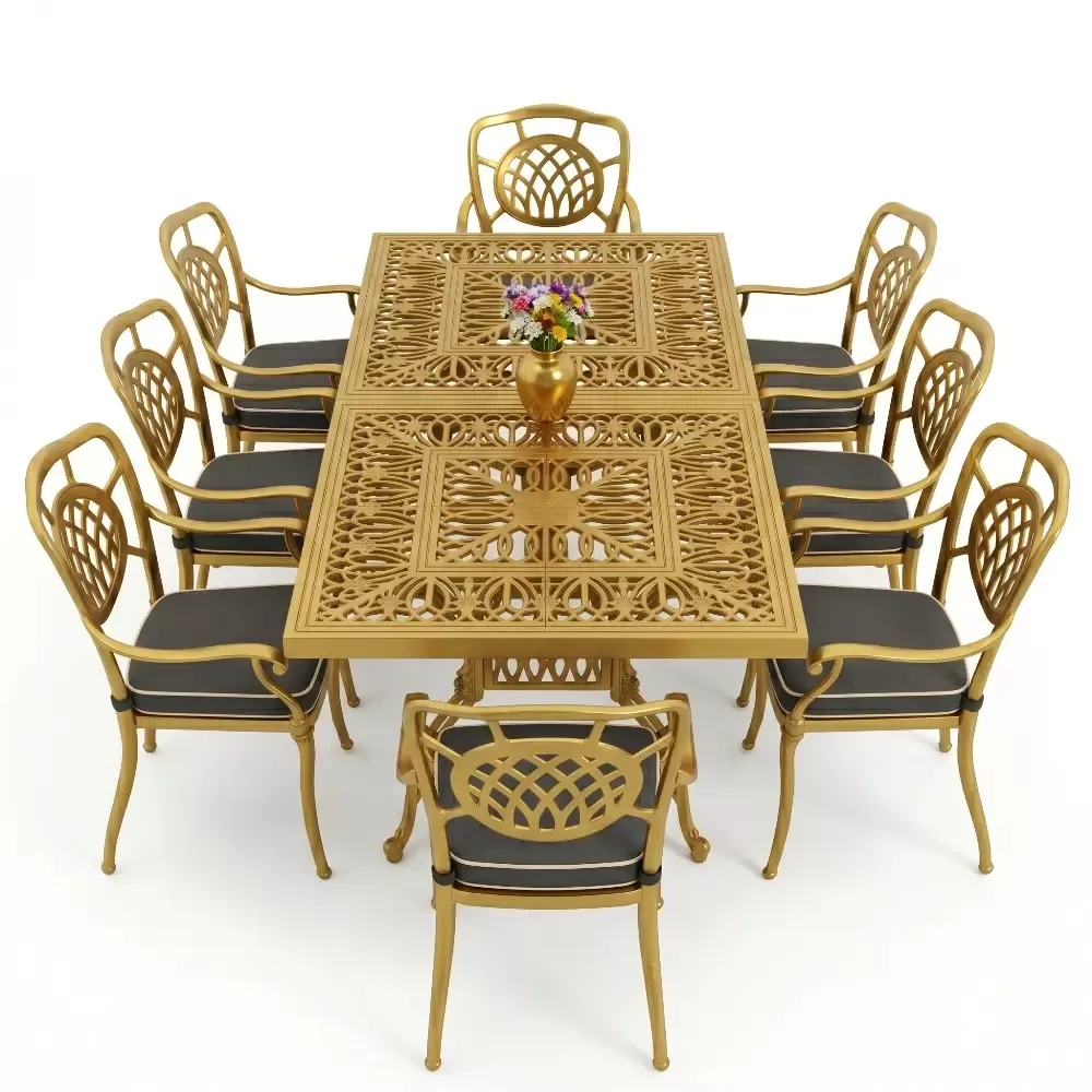 Dikdörtgen Masa E100 x D:200 x Y:72 cm 8 Kişilik ay motifli alüminyum döküm masa ve sandalye takımı (Mindersiz Fiyatı)