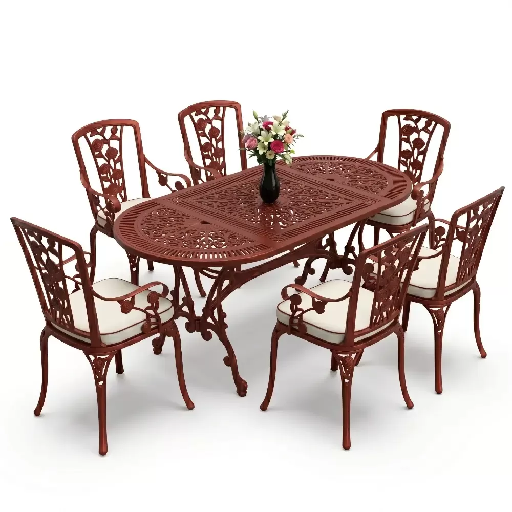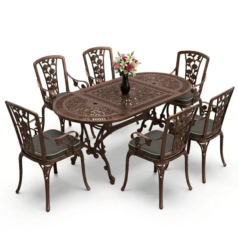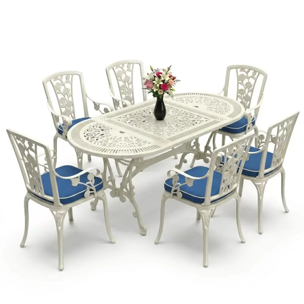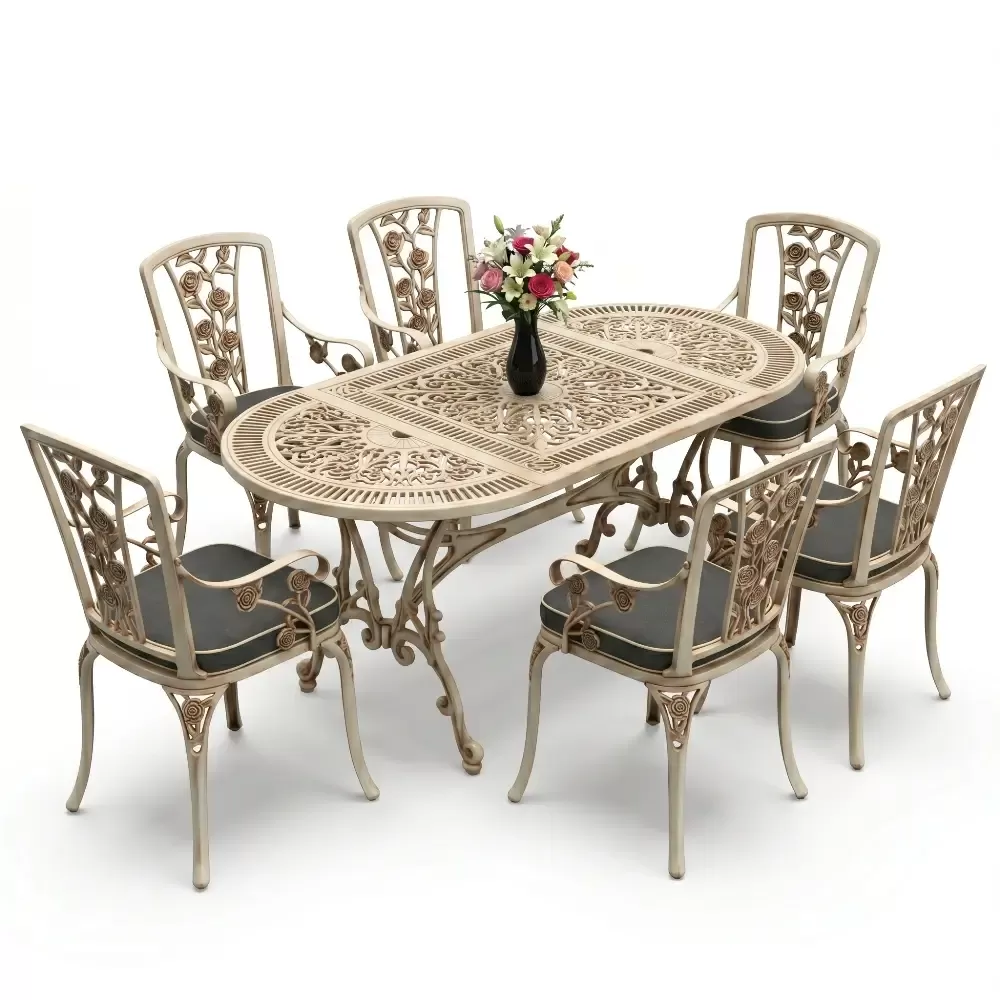 Dis mekan yasam alanlarinizda klasik ferforje ruhunu oval hatlarin modern dokunusuyla bulusturan 90 MHS yemek grubu, mekaninizda yumusak ve davetkar bir atmosfer olusturur. Elips formu sayesinde keskin koseleri ortadan kaldiran bu ozel tasarim, altı kisilik kapasitesiyle Akbrella kalitesini en konforlu haliyle sunuyor. Aluminyum dokumun sagladigi paslanmazlik ve yuksek dayaniklilik ozellikleri, urunu sadece bir mobilya degil, yillara meydan okuyan prestijli bir yatirim haline getiriyor.