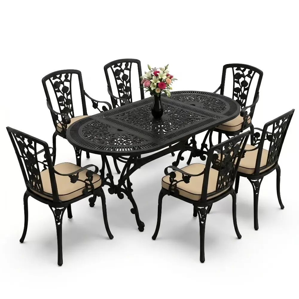 Bu elit oval yemek grubu; luks otellerin havuz baslarindan butik kafelerin bahce bolumlerine, sahil seridindeki yazlik evlerden modern rezidans teraslarina kadar her zeminde yuksek uyum saglar. Aluminyum yapisi sayesinde cok hafif olup yer degistirme ve depolama islemlerinde buyuk kolaylik sunar.
