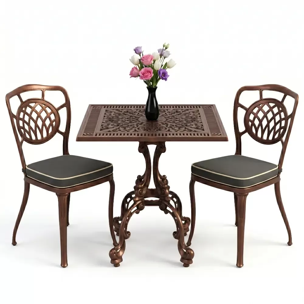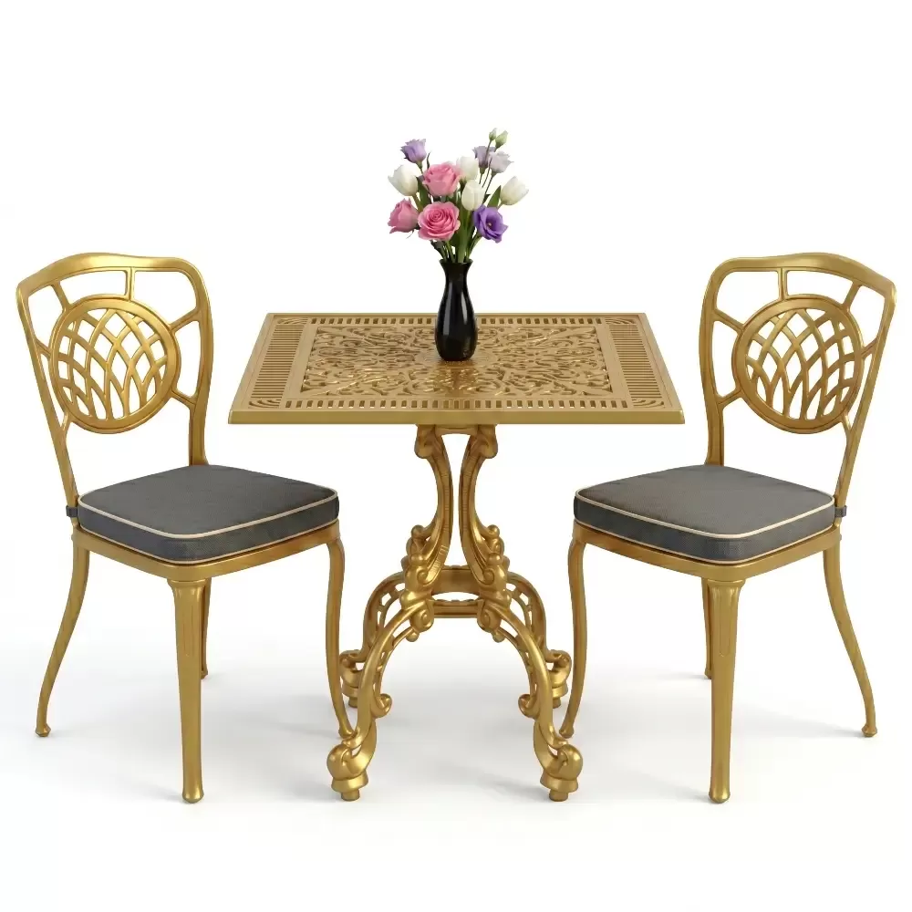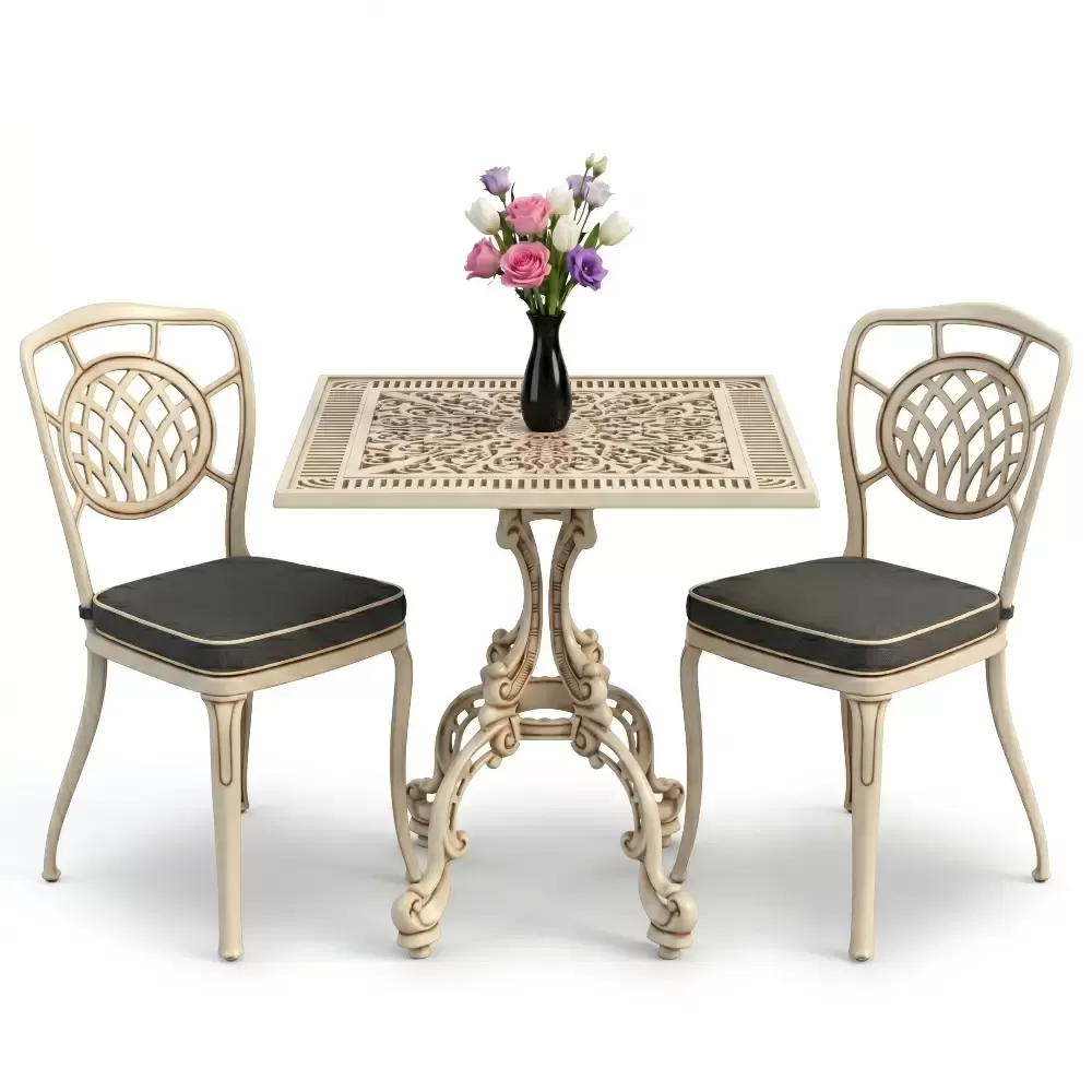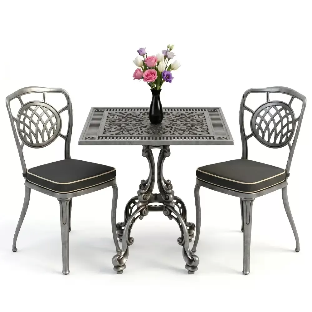 Yüksek kaliteli alüminyum döküm malzemeden üretilen bu takım, doğa şartlarına karşı tam direnç gösterecek şekilde tasarlanmıştır. Demir mobilyaların aksine paslanma ve korozyon riski barındırmaz. Elektrostatik fırın boya teknolojisi ile desteklenen yüzey dokusu; UV ışınlarına, aşırı sıcaklara ve nemli ortamlara karşı üstün koruma sağlayarak ürünün ilk günkü zarafetini uzun yıllar boyunca korumasına yardımcı olur.