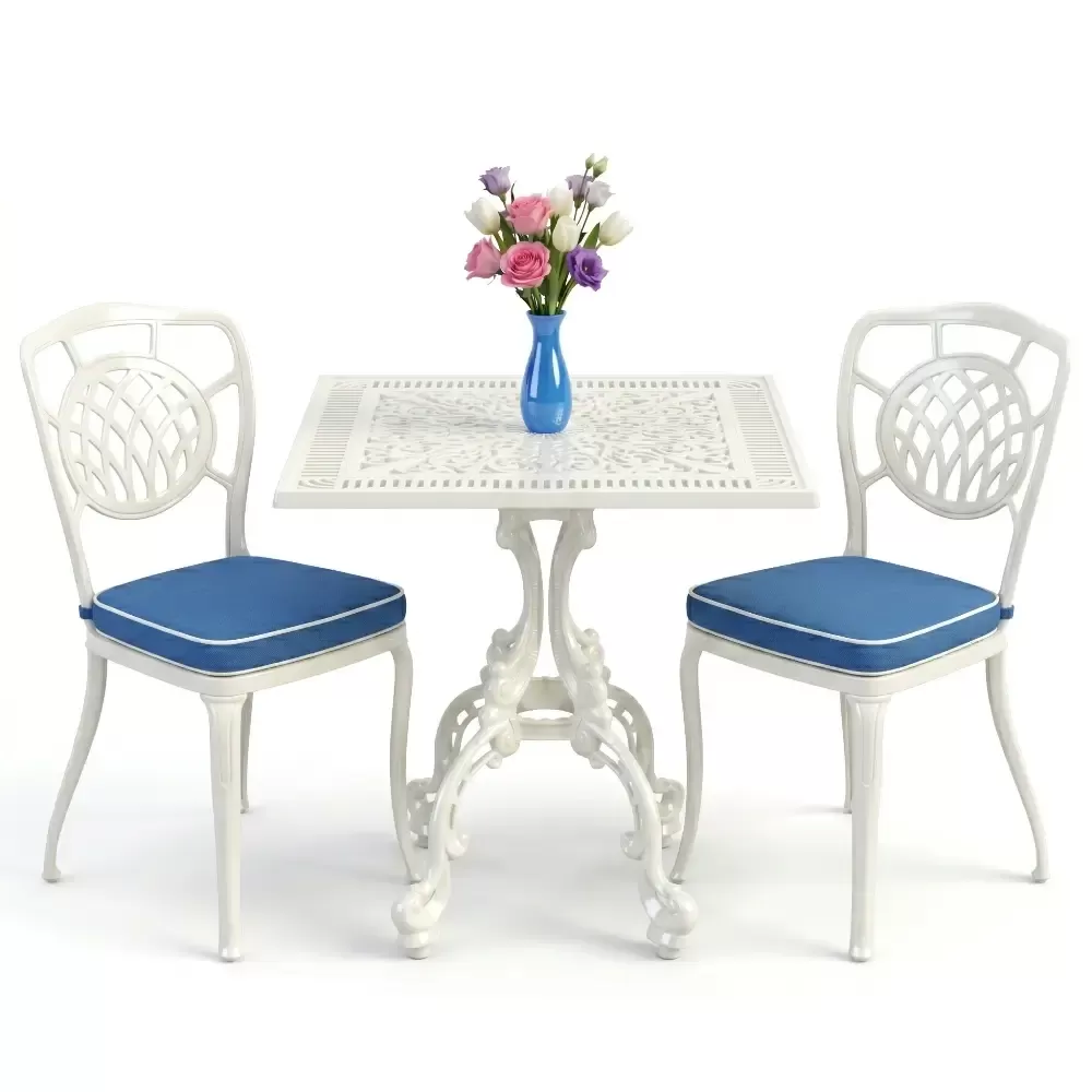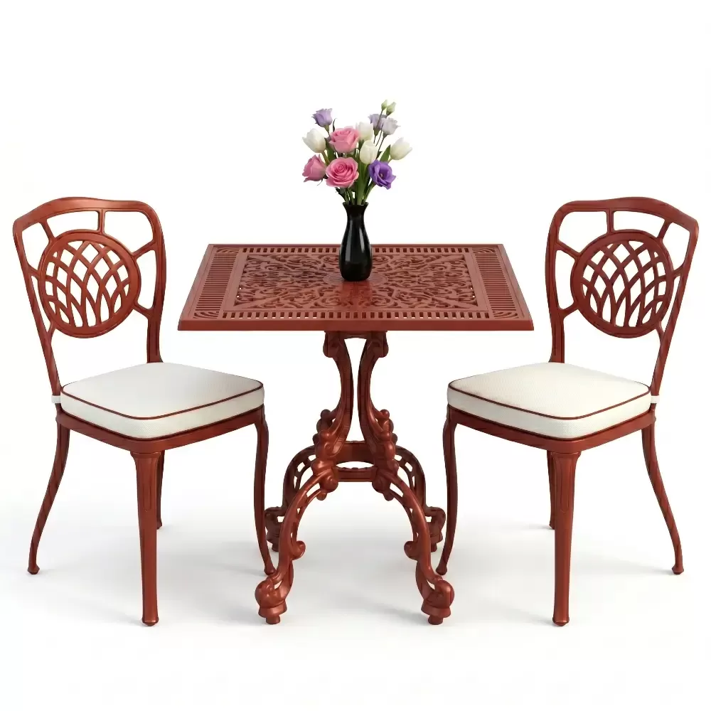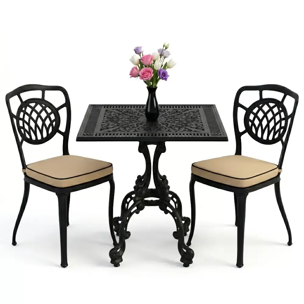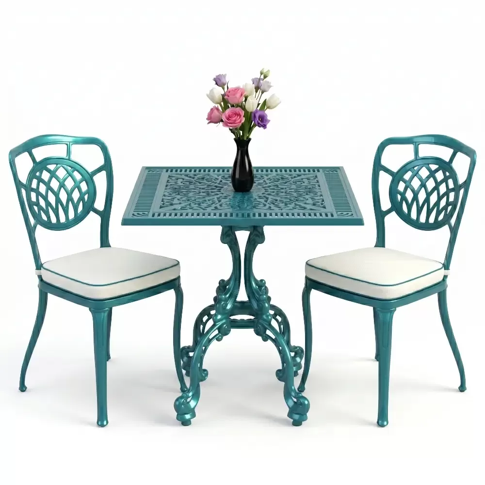 Yüksek kaliteli alüminyum döküm malzemeden üretilen bu takım, doğa şartlarına karşı tam direnç gösterecek şekilde tasarlanmıştır. Demir mobilyaların aksine paslanma ve korozyon riski barındırmaz. Elektrostatik fırın boya teknolojisi ile desteklenen yüzey dokusu; UV ışınlarına, aşırı sıcaklara ve nemli ortamlara karşı üstün koruma sağlayarak ürünün ilk günkü zarafetini uzun yıllar boyunca korumasına yardımcı olur.