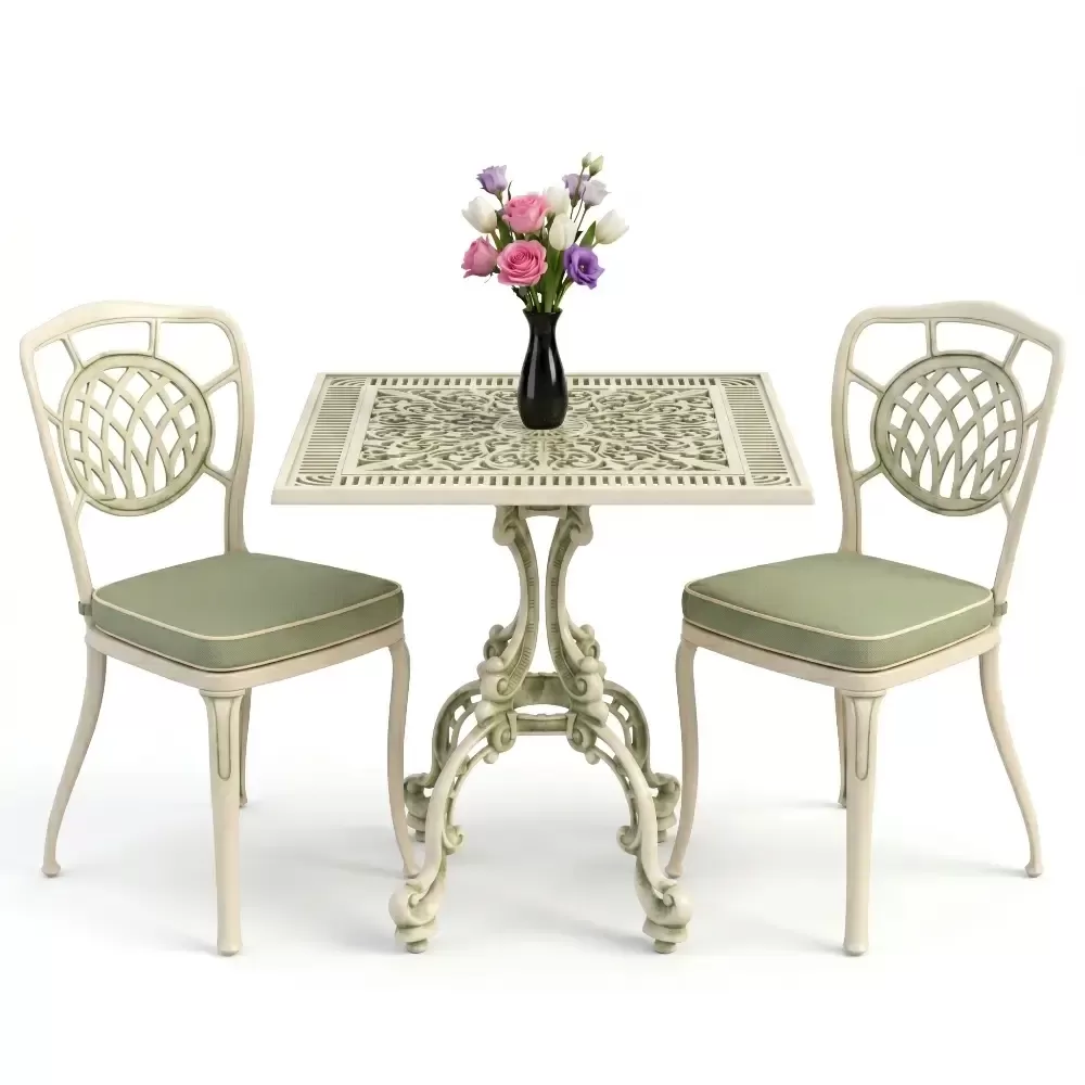 1 Adet Kare Masa + 2 Adet Döküm Sandalye |