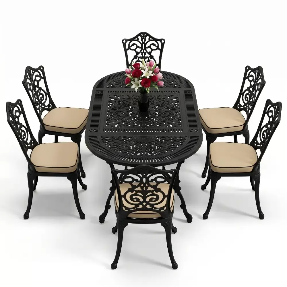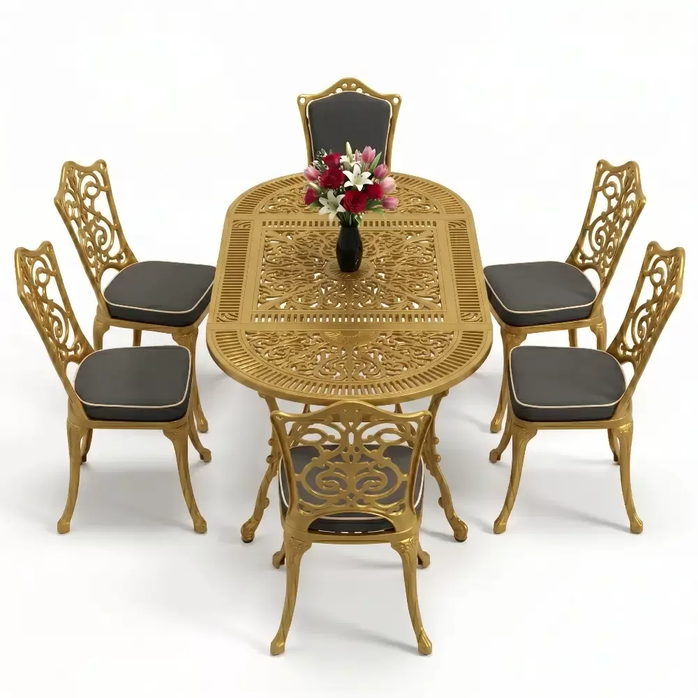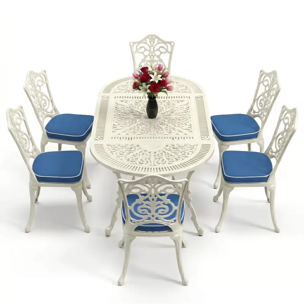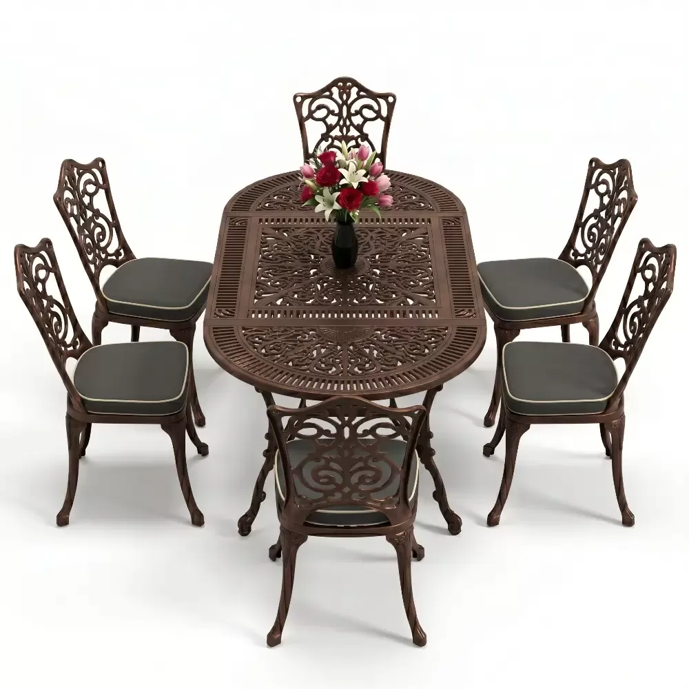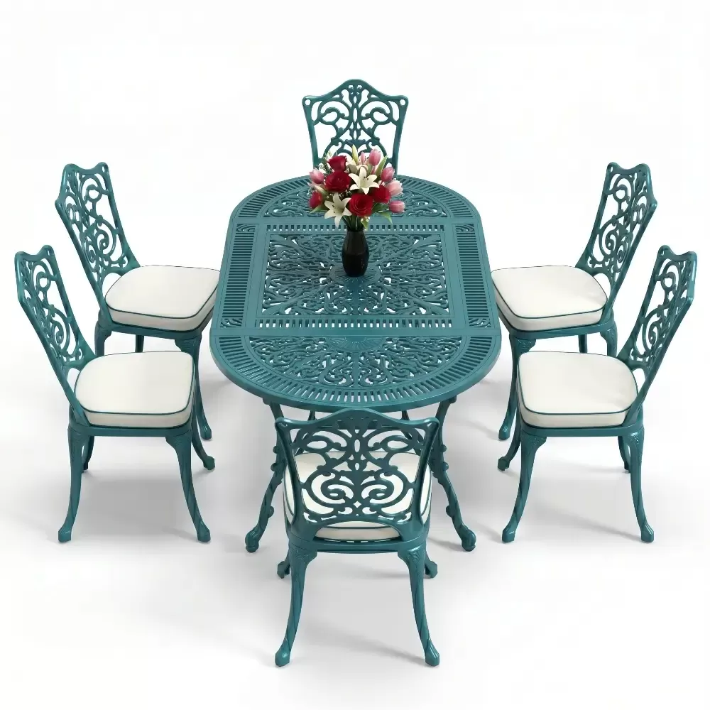 Dis mekan yasam alanlarinizda klasik ferforje ruhunu oval hatlarin modern dokunusuyla bulusturan 91 MHS yemek grubu, mekaninizda yumusak ve davetkar bir atmosfer olusturur. Elips formu sayesinde keskin koseleri ortadan kaldiran bu ozel tasarim, altı kisilik kapasitesiyle Akbrella kalitesini en ergonomik haliyle sunuyor. Aluminyum dokumun sagladigi paslanmazlik ve yuksek dayaniklilik ozellikleri, urunu sadece bir mobilya degil, yillara meydan okuyan prestijli bir yatirim haline getiriyor.