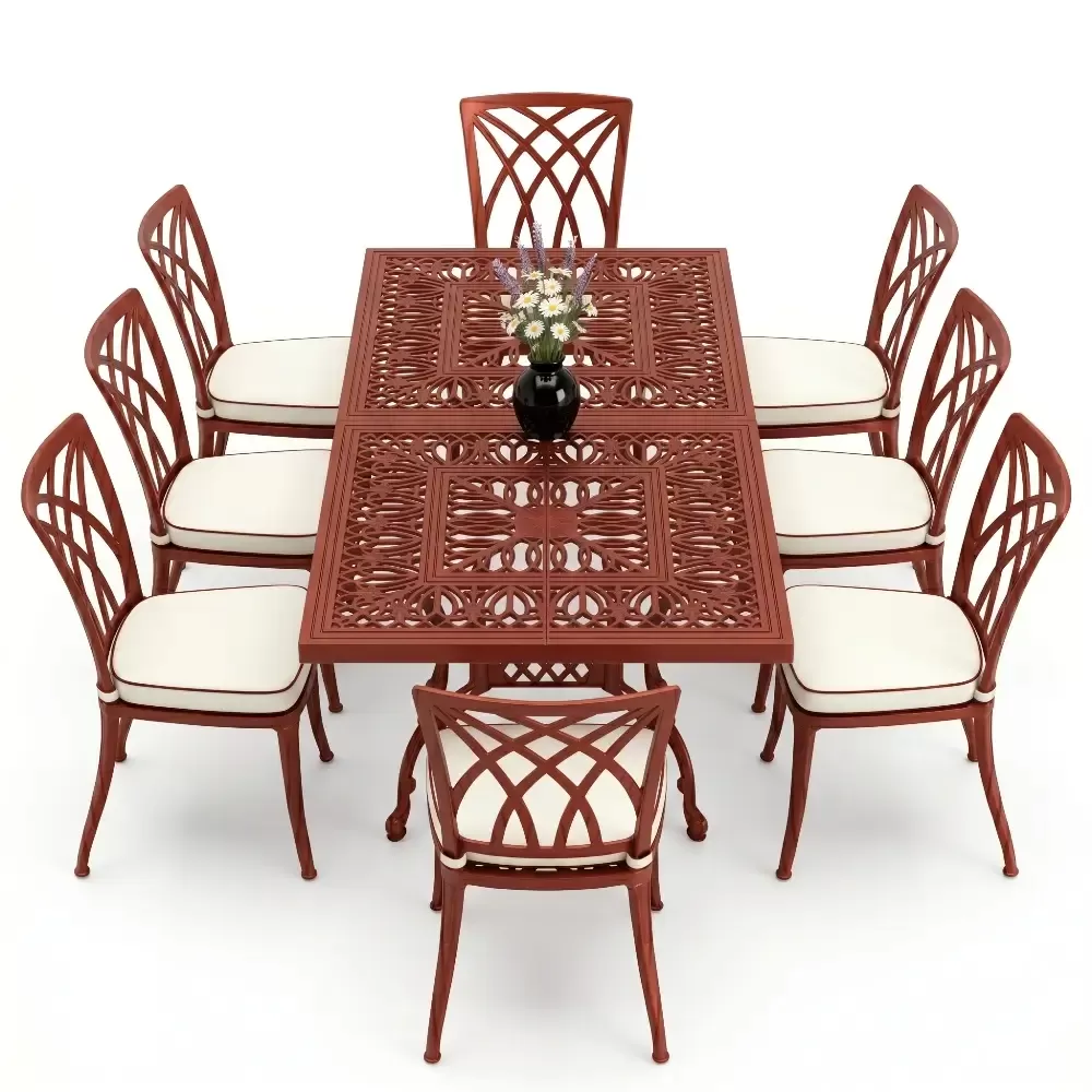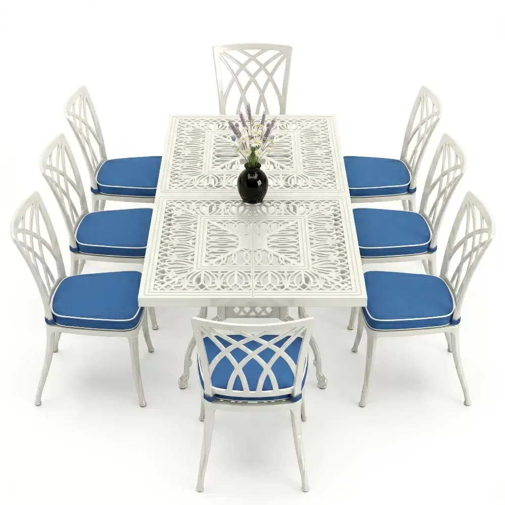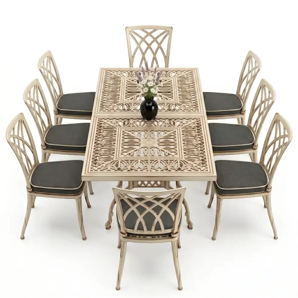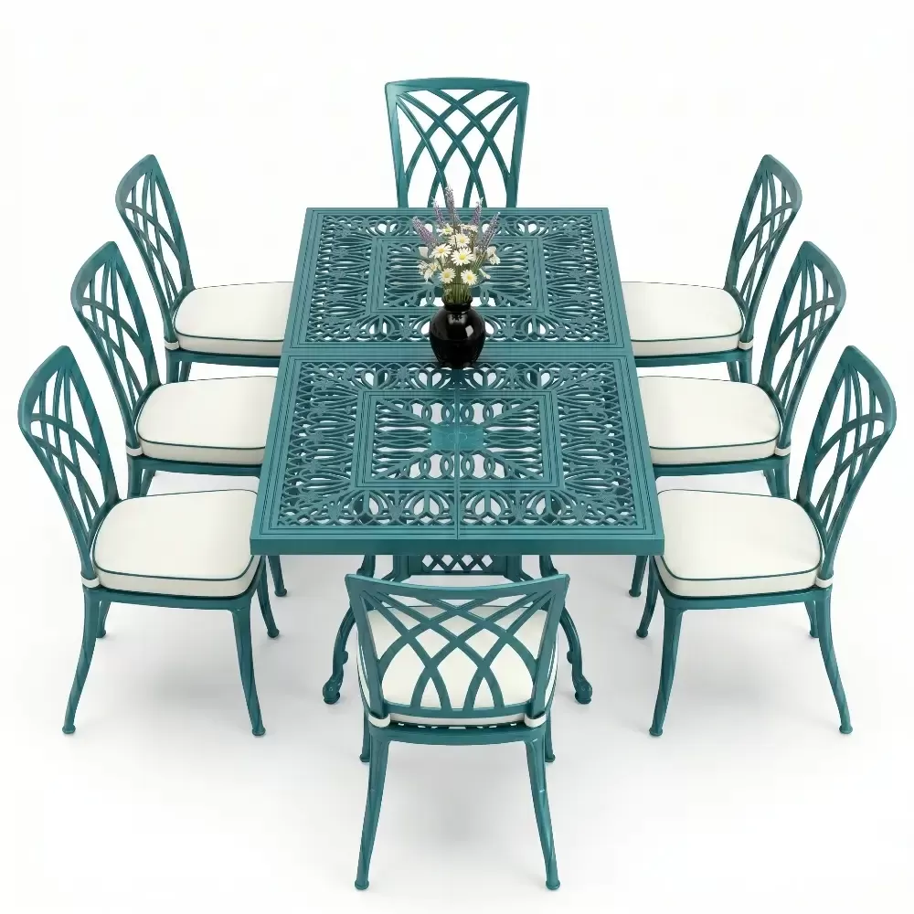 100x200 cm olculerindeki dikdortgen masamiz, 8 kisilik oturum kapasitesini kolsuz sandalye formuyla optimize eder. Kolsuz tasarim, ozellikle dar balkon ve teraslarda sandalyelerin masa altina tam girmesini saglayarak alan tasarrufu yaratir. 72 cm lik standart yukseklik, yemek yeme ergonomisine tam uyumludur. Model 122, ferforje agirligindaki klasik havayi modern cizgilerle bulusturan teknolojik bir urundur.