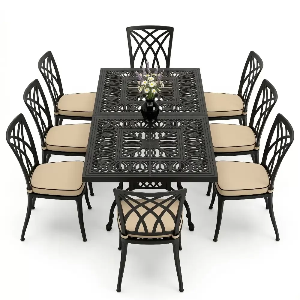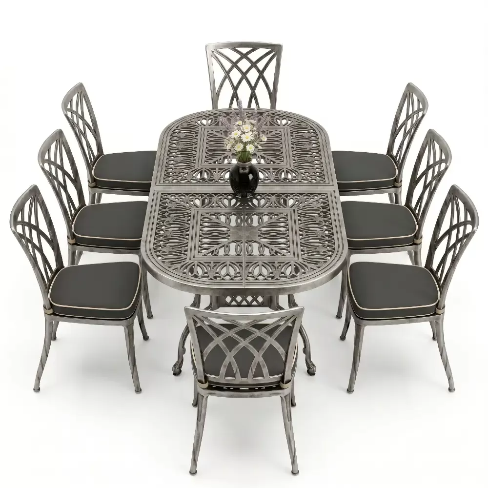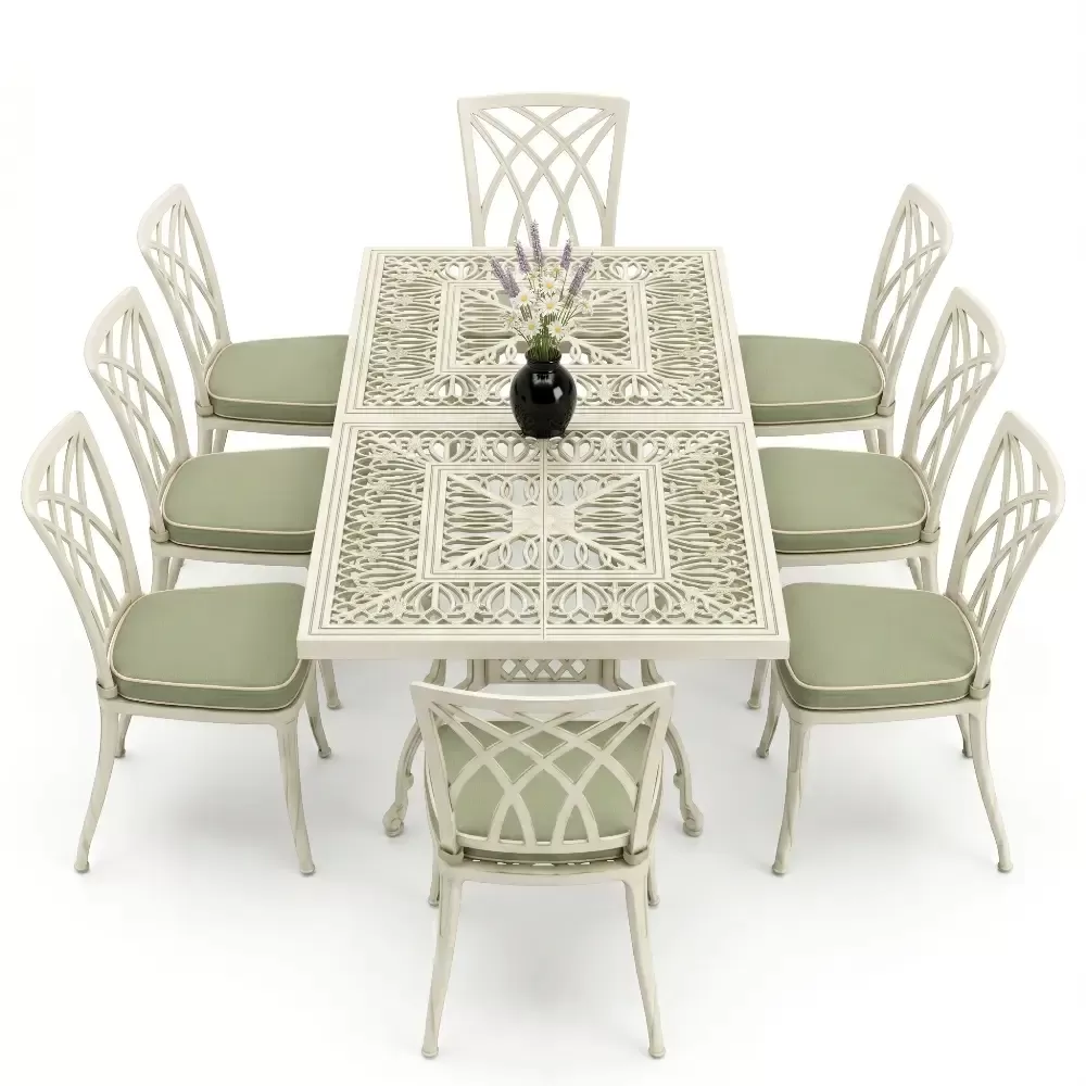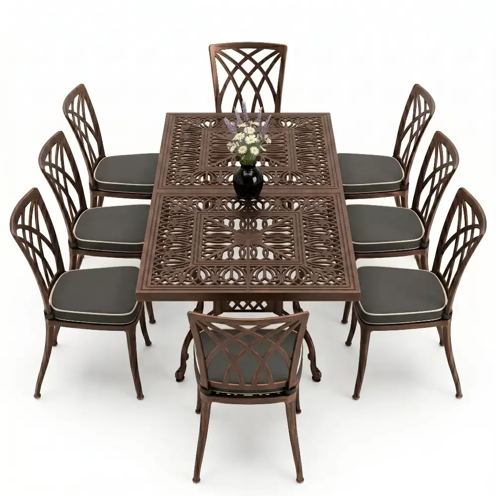 100x200 cm olculerindeki dikdortgen masamiz, 8 kisilik oturum kapasitesini kolsuz sandalye formuyla optimize eder. Kolsuz tasarim, ozellikle dar balkon ve teraslarda sandalyelerin masa altina tam girmesini saglayarak alan tasarrufu yaratir. 72 cm lik standart yukseklik, yemek yeme ergonomisine tam uyumludur. Model 122, ferforje agirligindaki klasik havayi modern cizgilerle bulusturan teknolojik bir urundur.