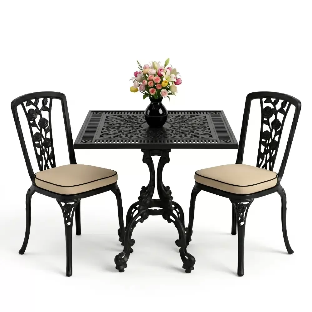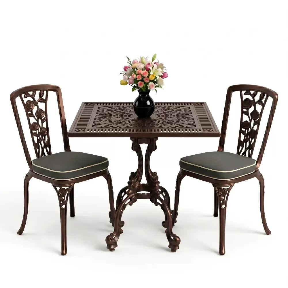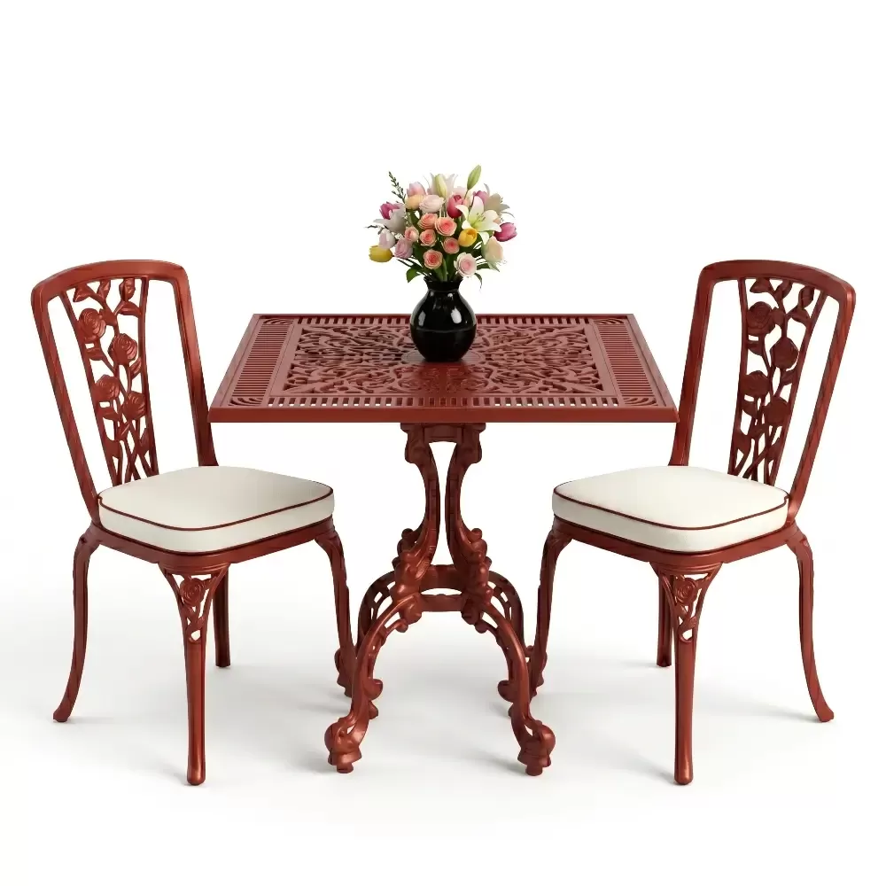 Kare Masa E:75 x D:75 x Y:72 cm 2 Kişilik ferforje tip alüminyum döküm masa ve sandalye takımı (Mindersiz Fiyatı)