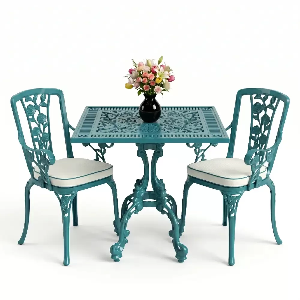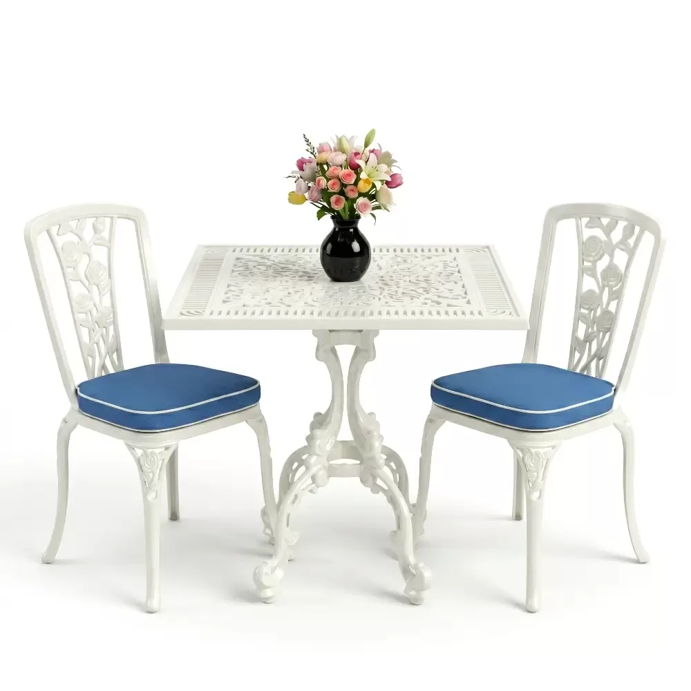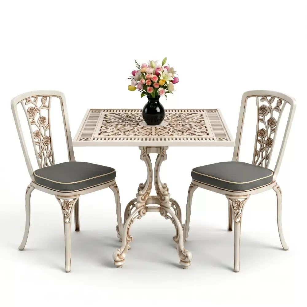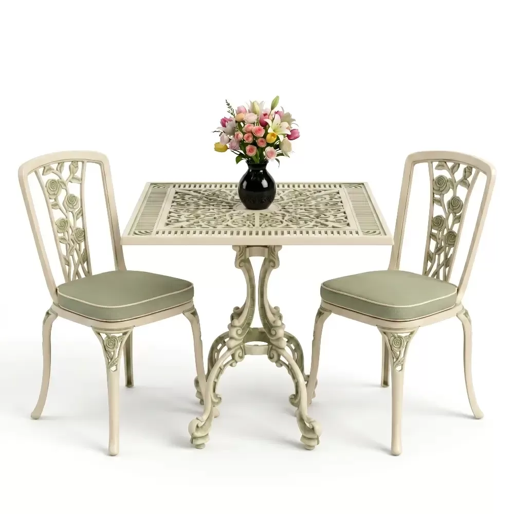 Kare Masa E:75 x D:75 x Y:72 cm 2 Kişilik ferforje tip alüminyum döküm masa ve sandalye takımı (Mindersiz Fiyatı)