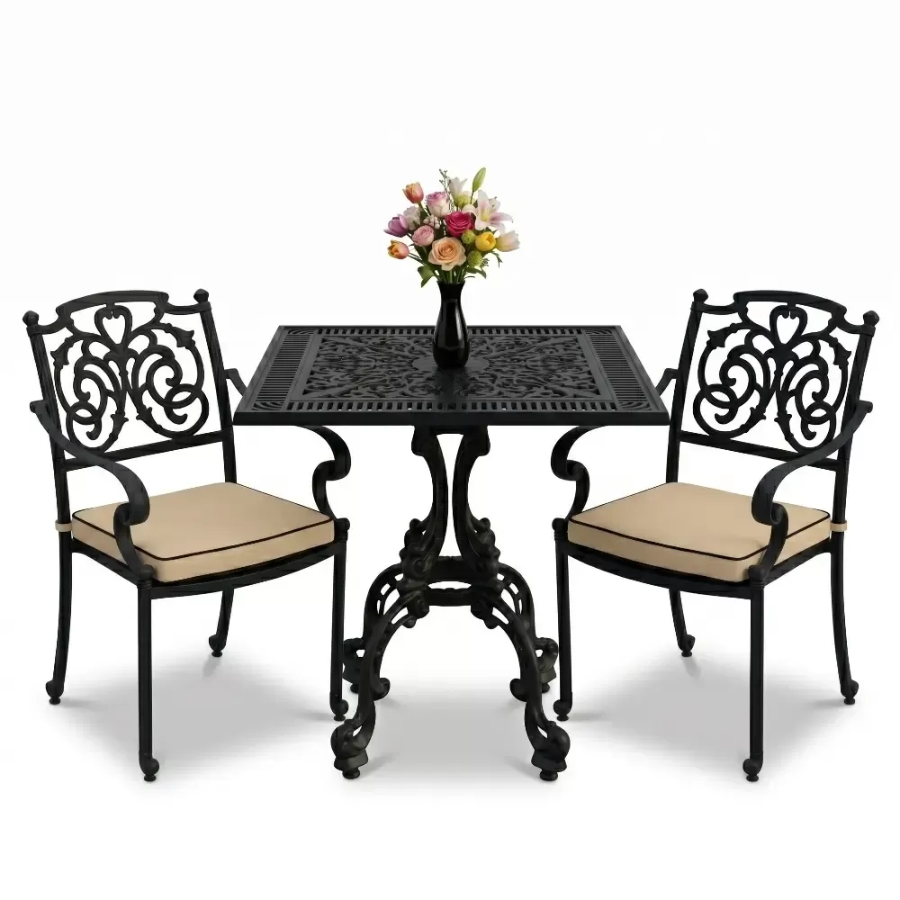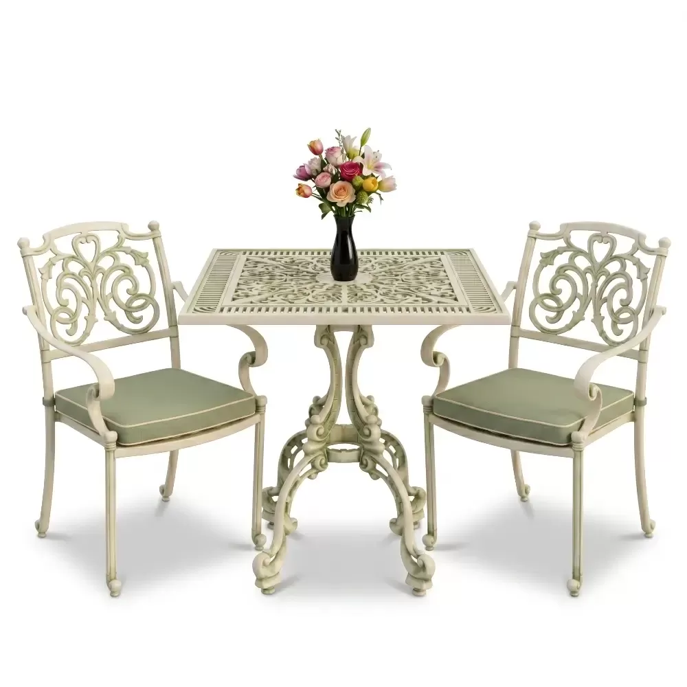Bahçe, balkon ve teras gibi dış mekanlarda şıklığı ve sağlamlığı bir arada arayanlar için Akbrella-nın 17 CAS serisi ideal bir çözümdür. Geleneksel ferforje sanatının estetiğini modern alüminyum döküm teknolojisi ile birleştiren bu set, iki kişilik kapasitesiyle kompakt ve zarif bir kullanım sunar. 75x75 cm ölçülerindeki kare masa formu, modern hatları seven kullanıcılar için ergonomik bir yapı sunarken mekanınızda simetrik ve düzenli bir atmosfer oluşturur.