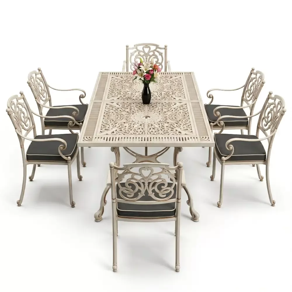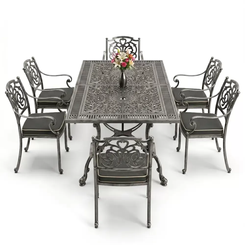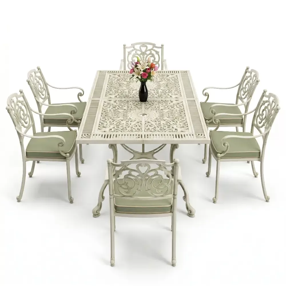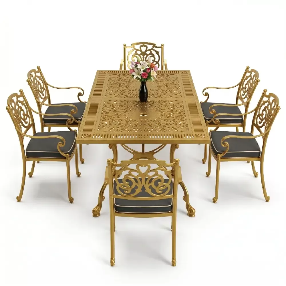 Dikdörtgen Masa E:70 x D:140 x Y:72 cm 6 Kişilik kelebek motifli alüminyum döküm masa ve sandalye takımı (Mindersiz Fiyatı)