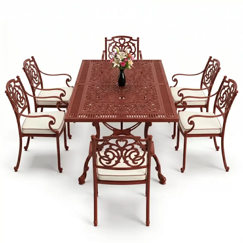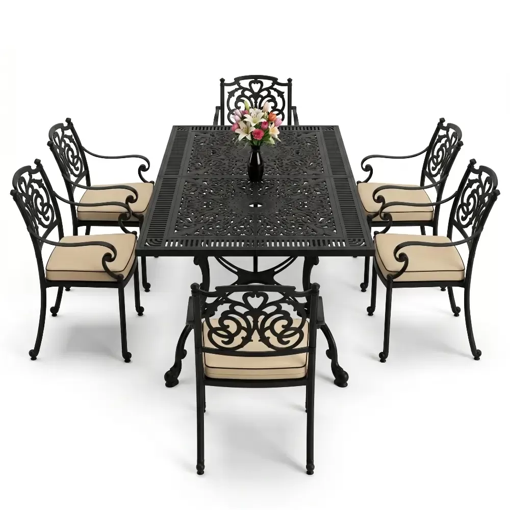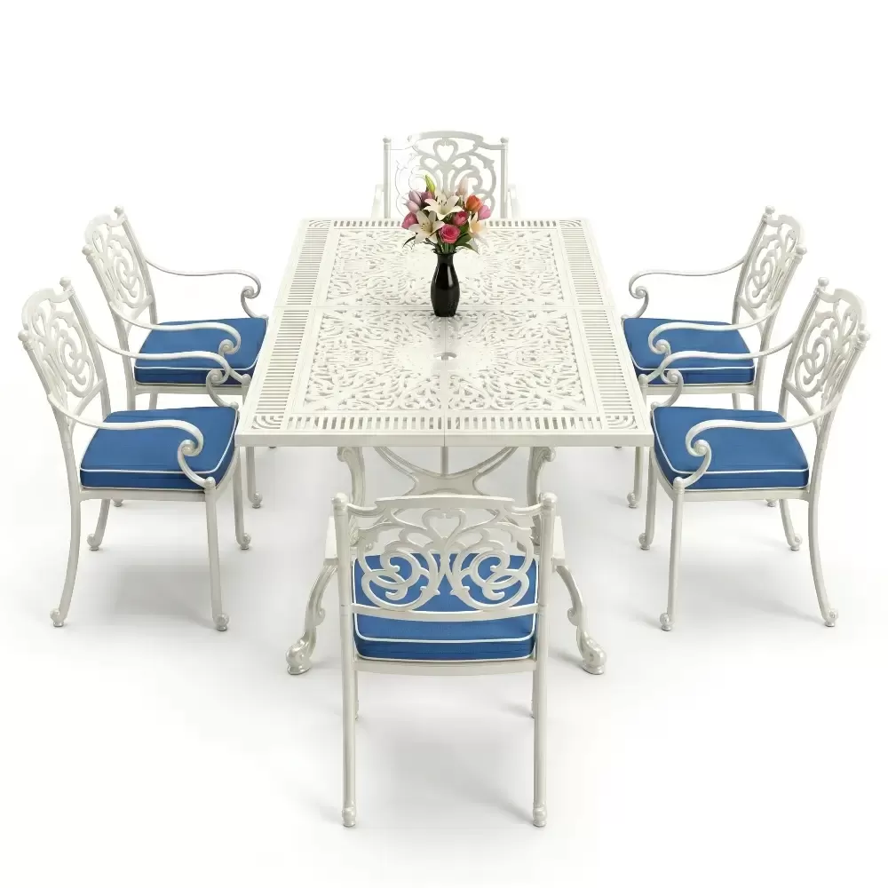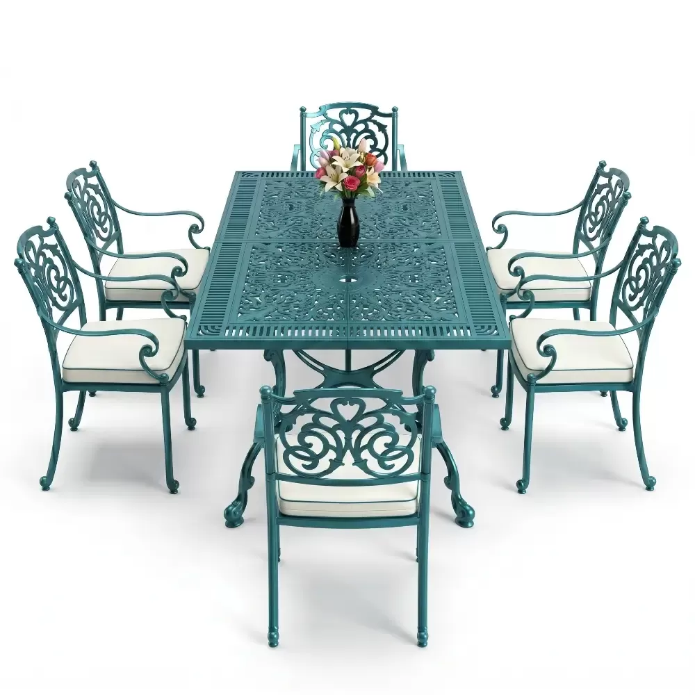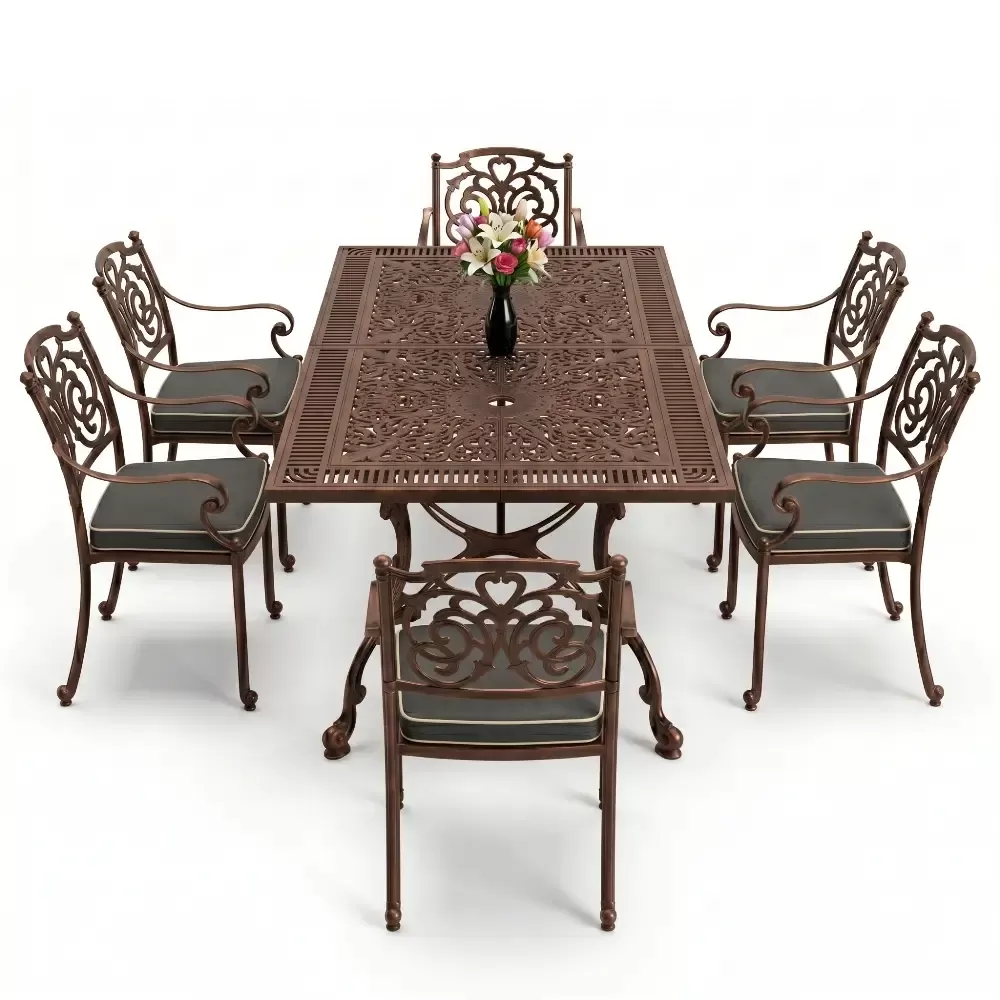 Dikdörtgen Masa E:70 x D:140 x Y:72 cm 6 Kişilik kelebek motifli alüminyum döküm masa ve sandalye takımı (Mindersiz Fiyatı)