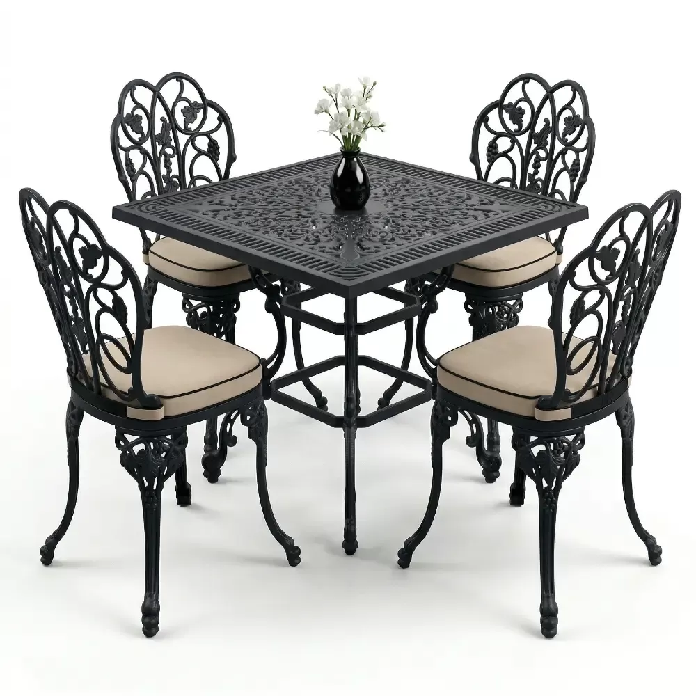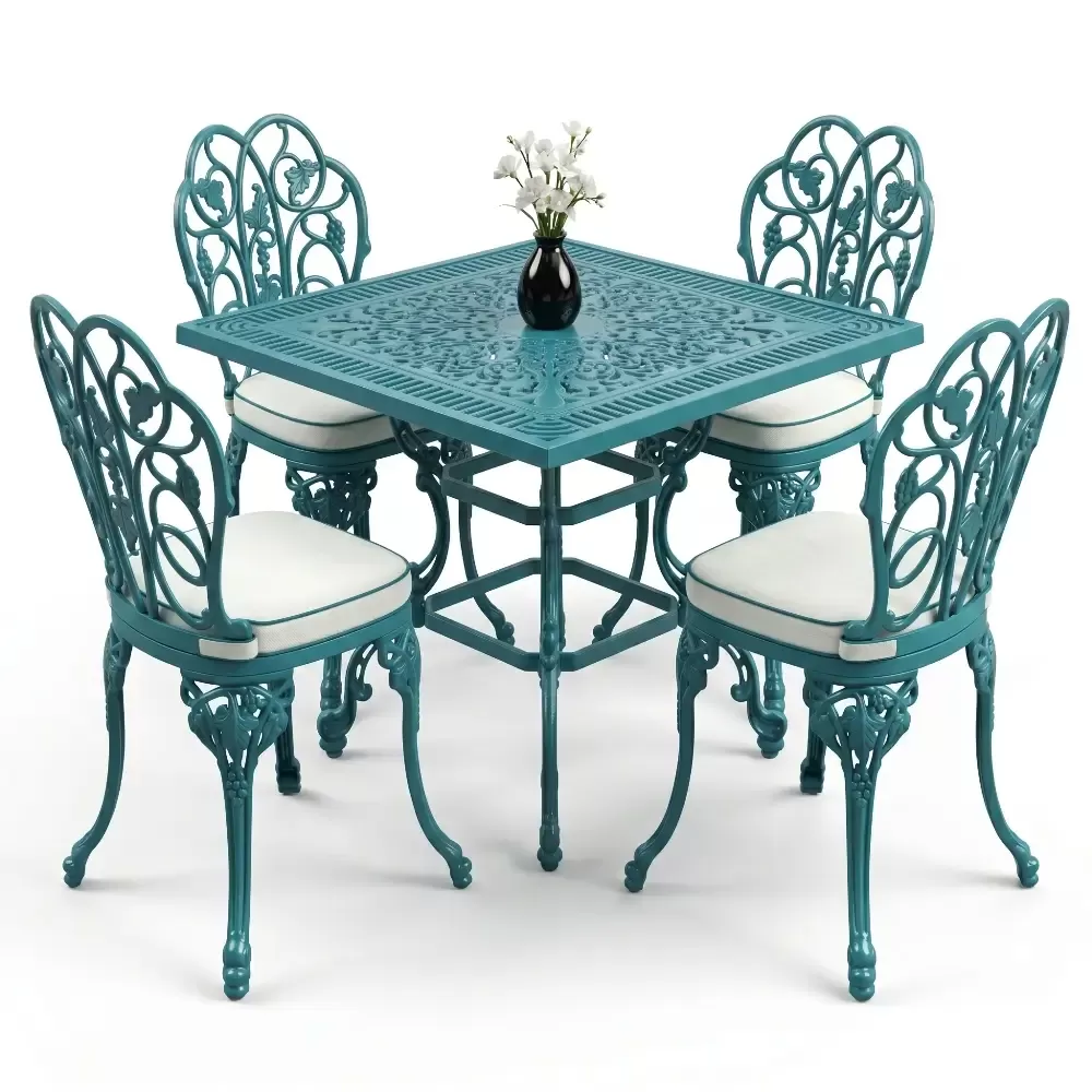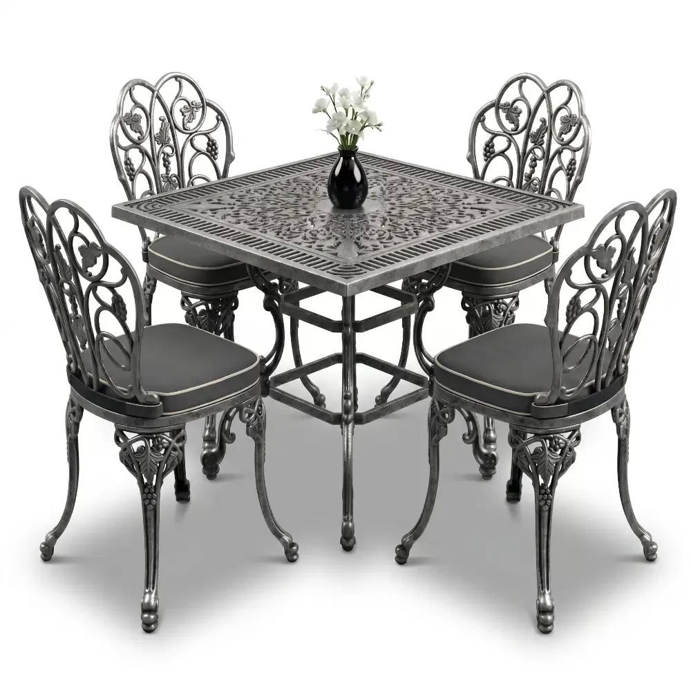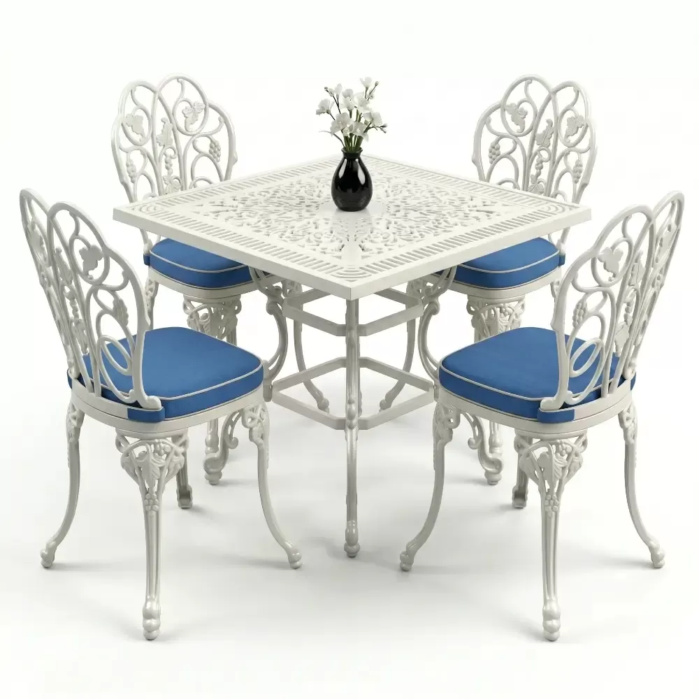 Açık havada geçirilen vakitleri daha prestijli ve konforlu bir seviyeye taşıyan 58 MHS alüminyum döküm masa takımı, ferforje sanatının asil hatlarını kare formun dengeleyici gücüyle buluşturuyor. Akbrella uzmanlığıyla üretilen bu dört kişilik özel koleksiyon, geniş 100 cm yüzey alanı sayesinde hem ferah bir yemek ortamı sunar hem de mekanınıza mimari bir değer katar. Alüminyumun hafifliği ile döküm teknolojisinin sarsılmaz sağlamlığı, bu ürünü nesiller boyu kullanılacak bir dış mekan mirası haline getiriyor.