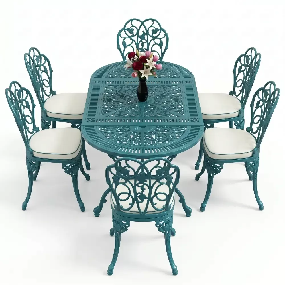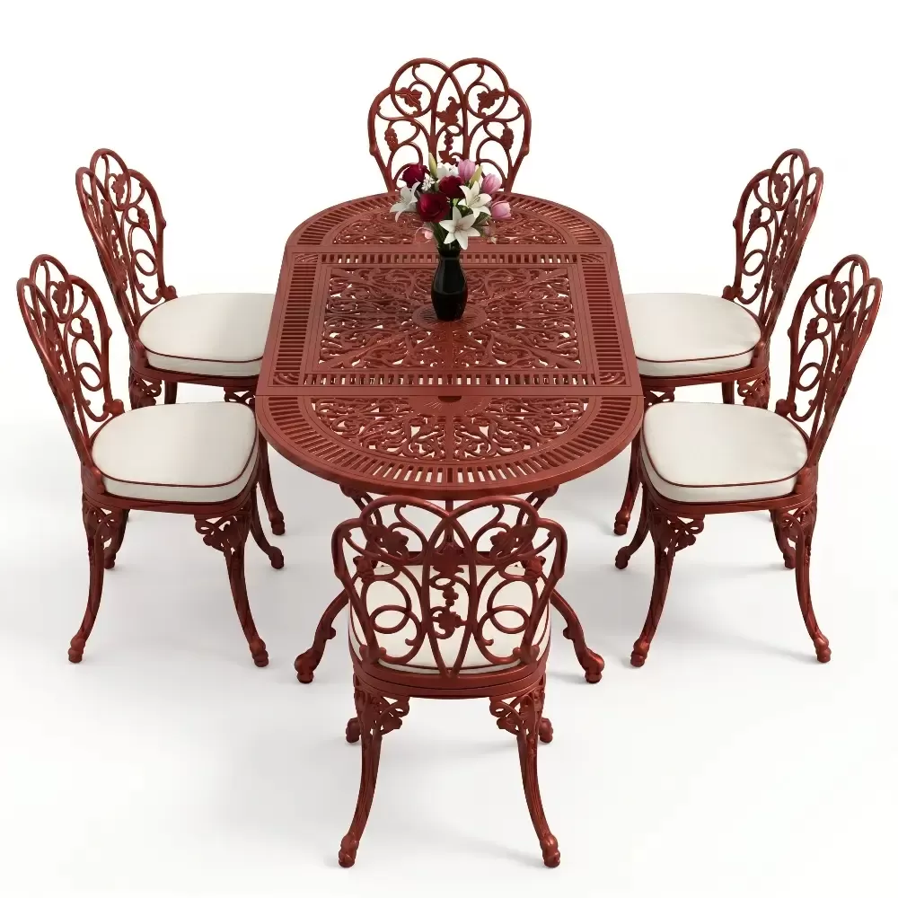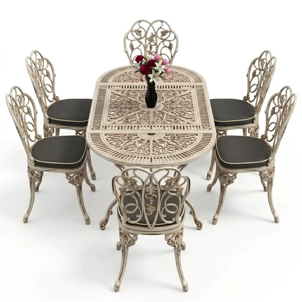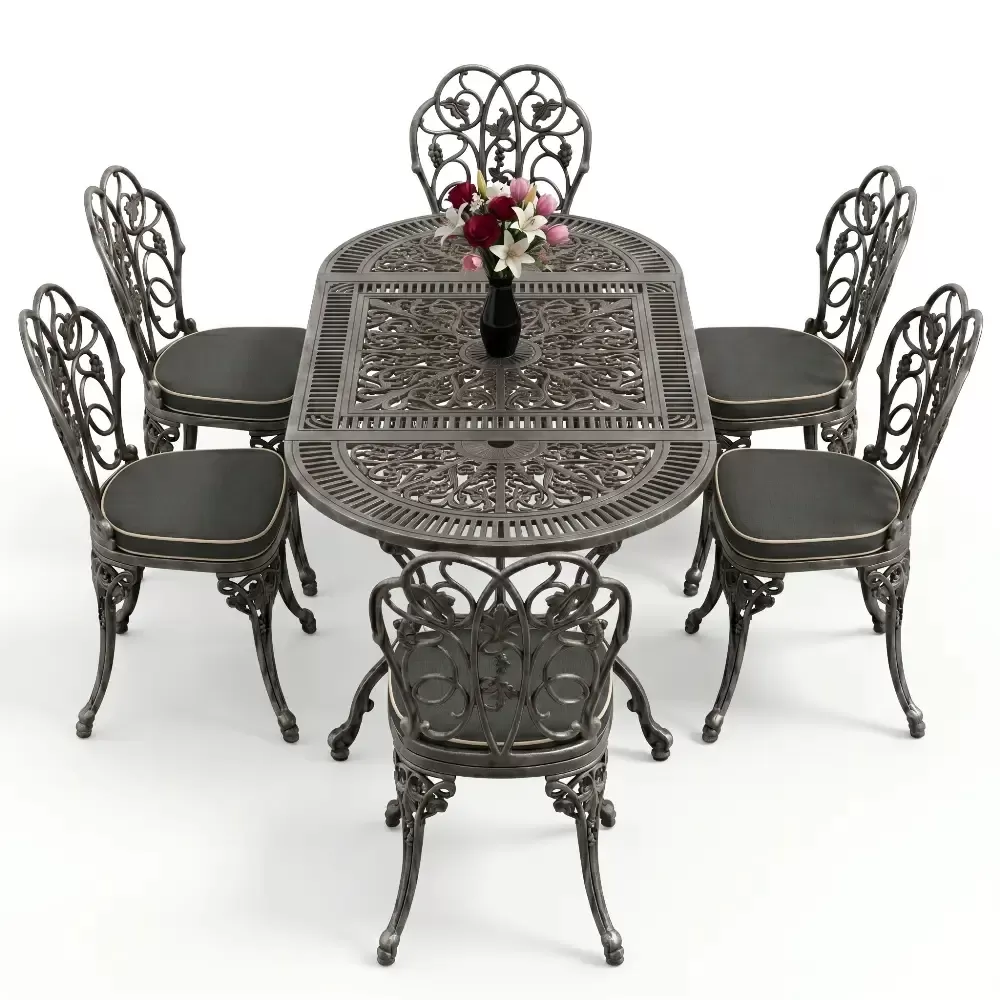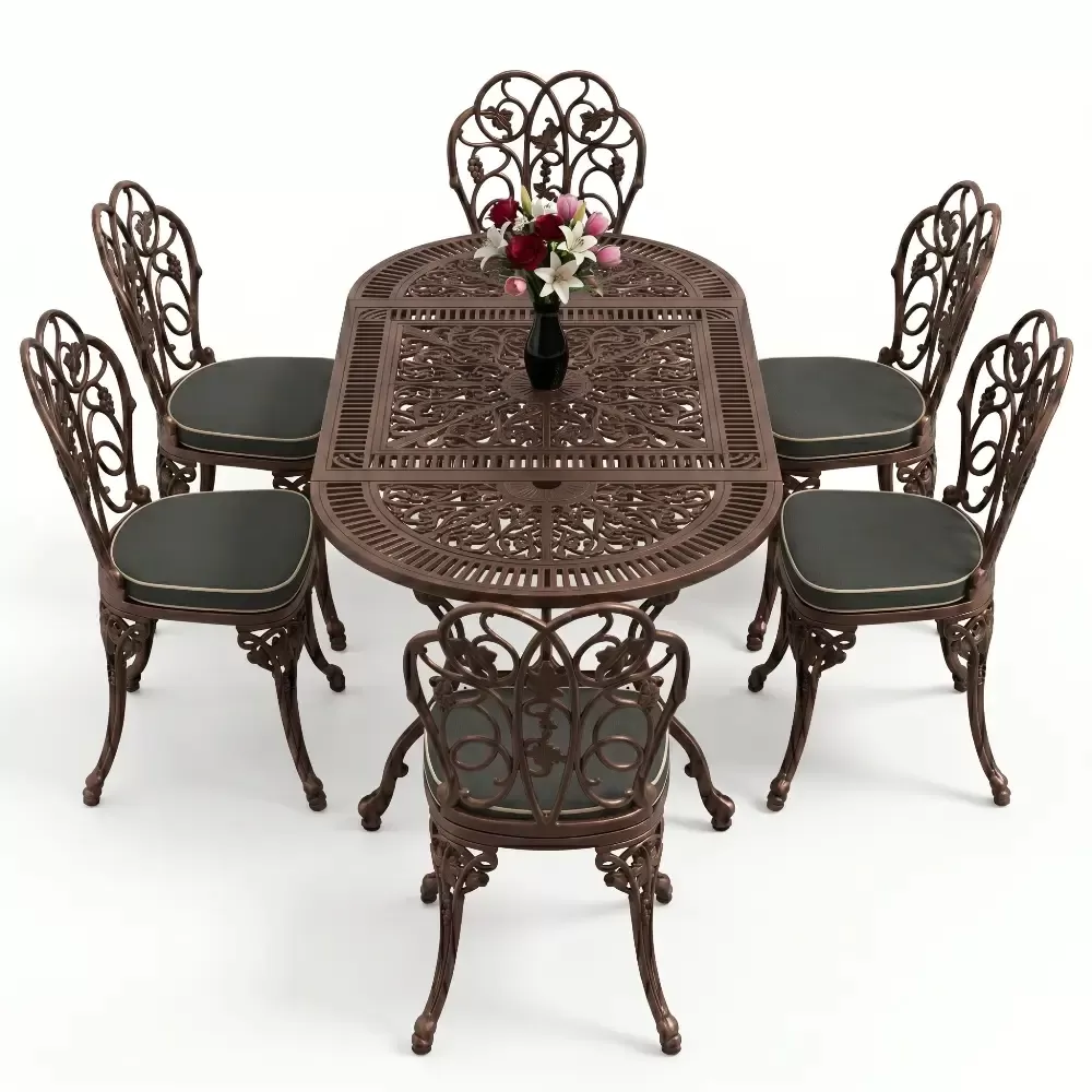 Dis mekan yasam alanlarinizda klasik ferforje ruhunu oval hatlarin modern dokunusuyla bulusturan 93 MHS yemek grubu, mekaninizda yumusak ve davetkar bir atmosfer olusturur. Elips formu sayesinde keskin koseleri ortadan kaldiran bu ozel tasarim, alti kisilik kapasitesiyle Akbrella kalitesini en konforlu haliyle sunuyor. Aluminyum dokumun sagladigi paslanmazlik ve yuksek dayaniklilik ozellikleri, urunu sadece bir mobilya degil, yillara meydan okuyan prestijli bir yatirim haline getiriyor.