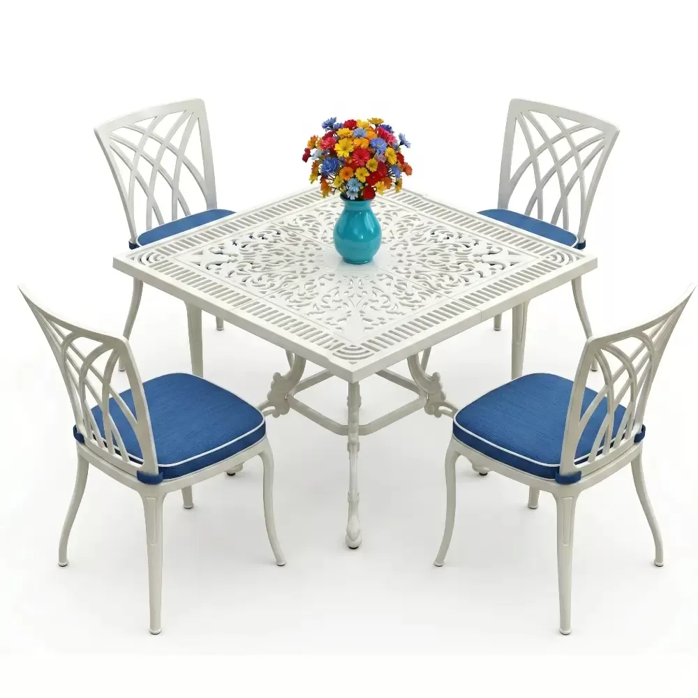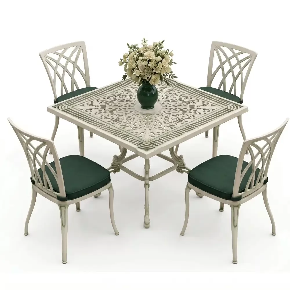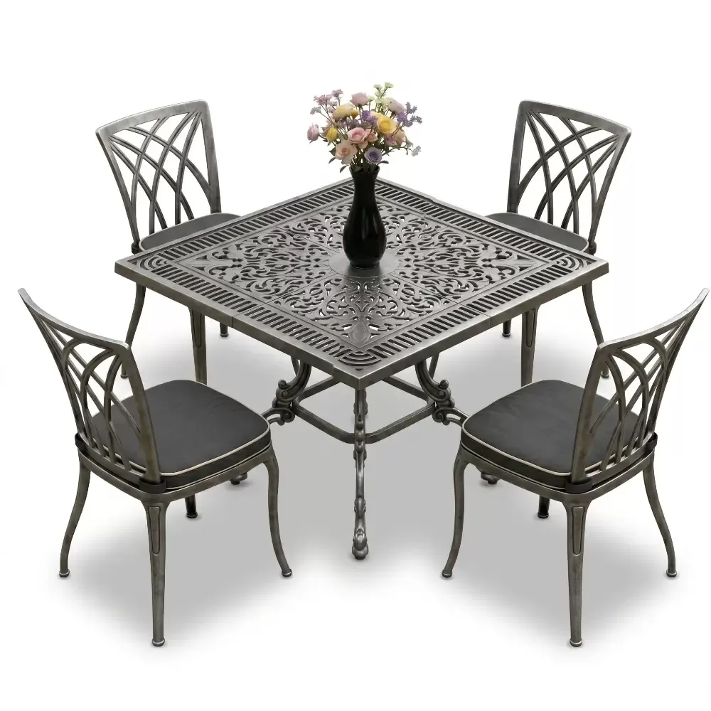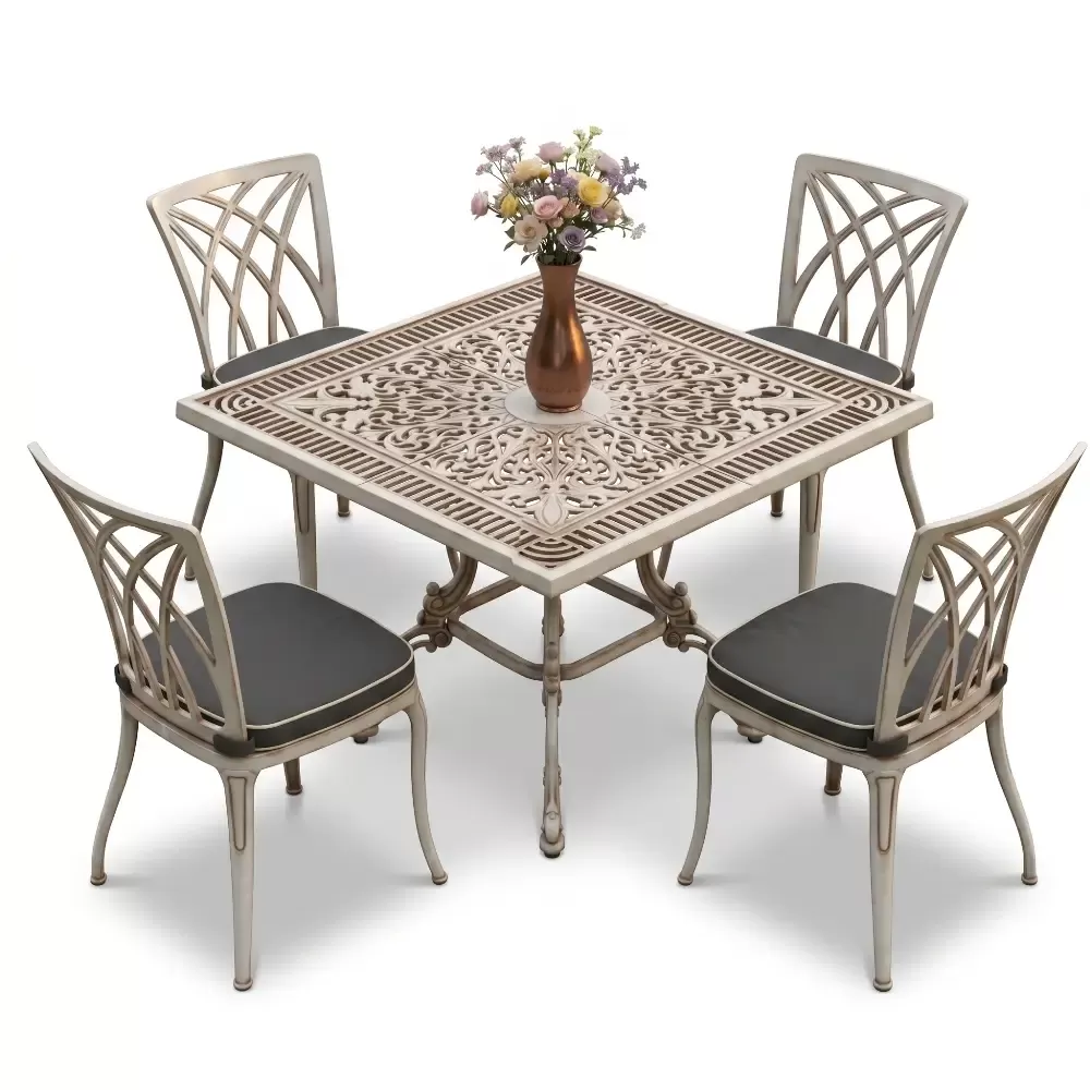 Kare Masa E:100 x D:100 x Y:72 cm 4 Kişilik alüminyum döküm masa ve sandalye takımı (Mindersiz Fiyatı)