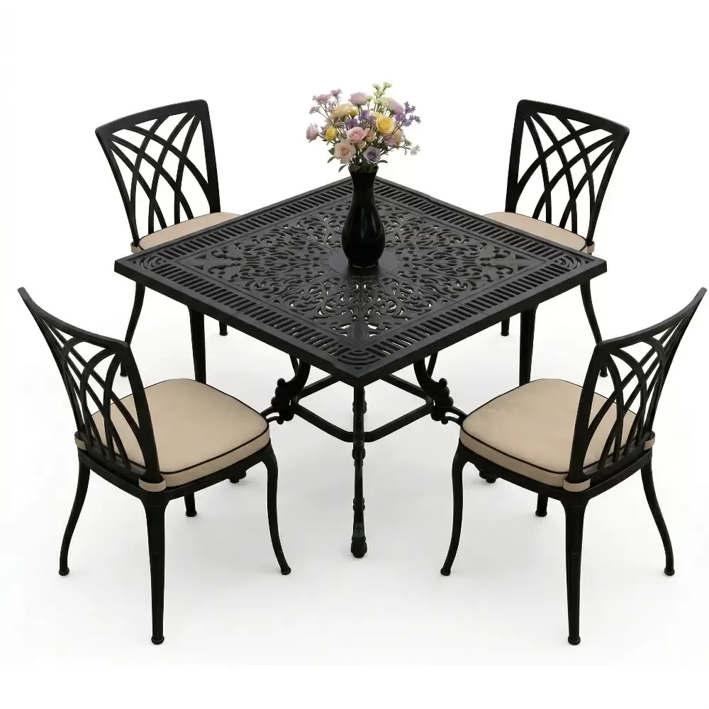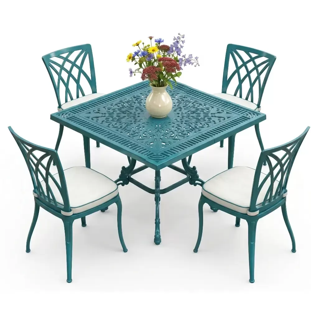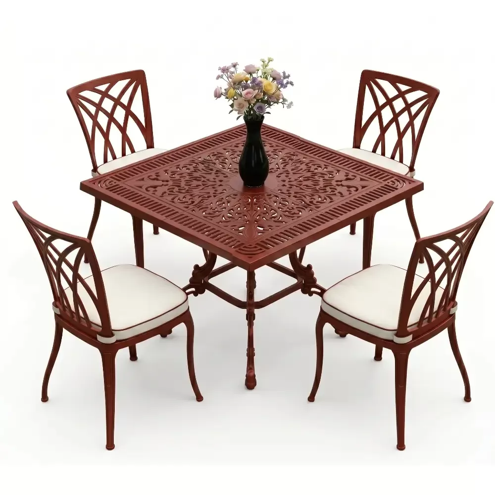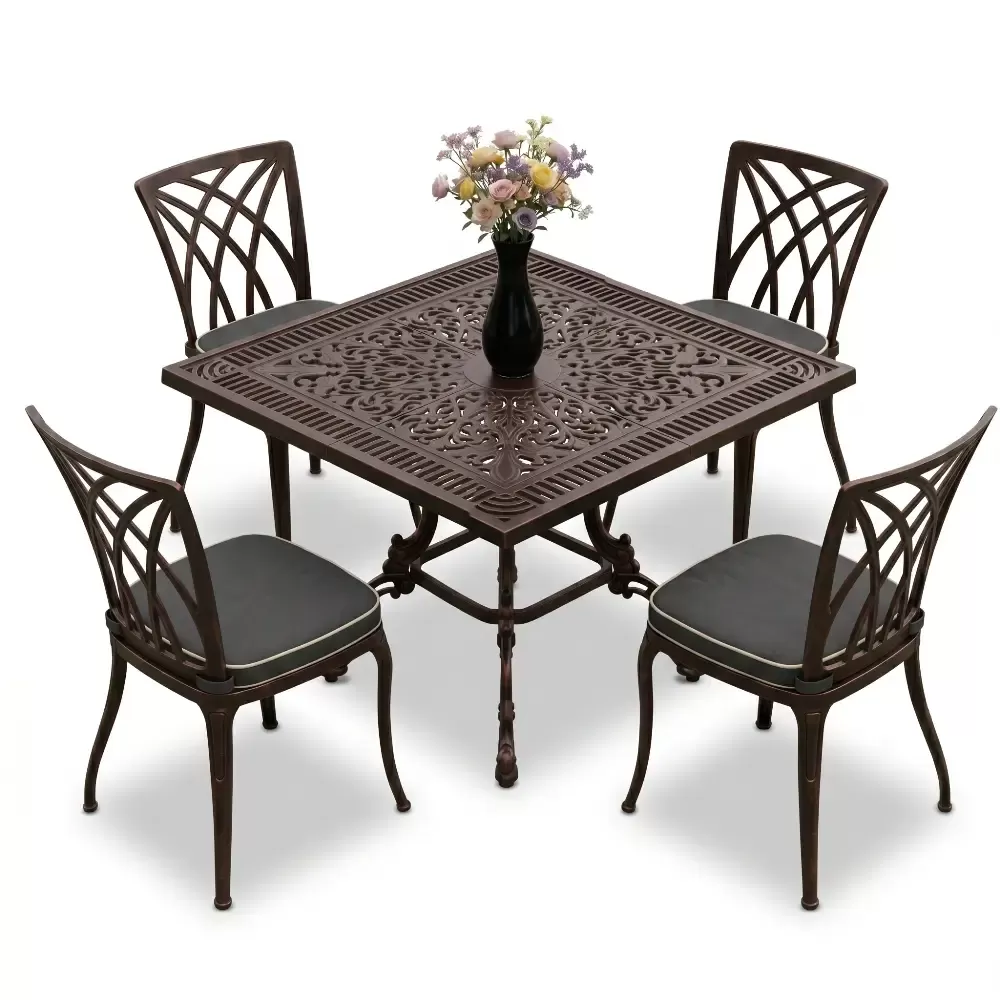 Kare Masa E:100 x D:100 x Y:72 cm 4 Kişilik alüminyum döküm masa ve sandalye takımı (Mindersiz Fiyatı)