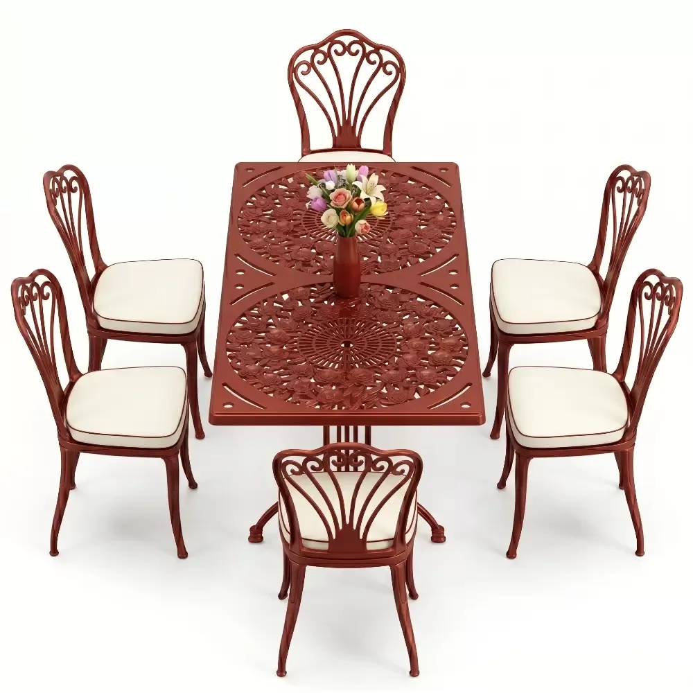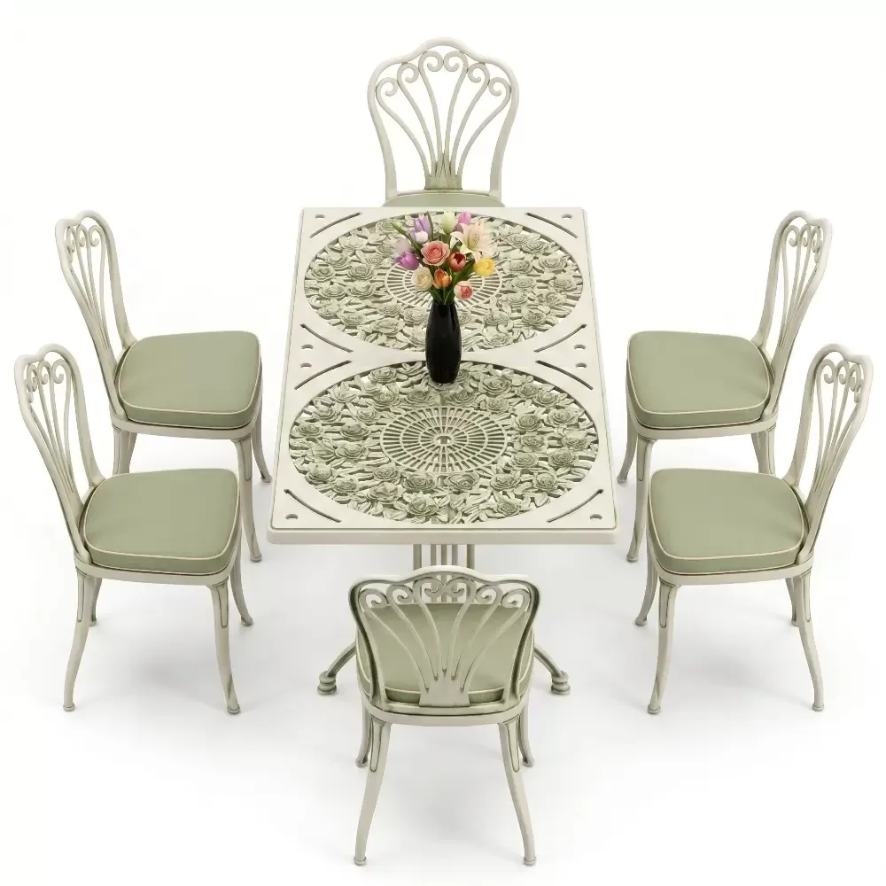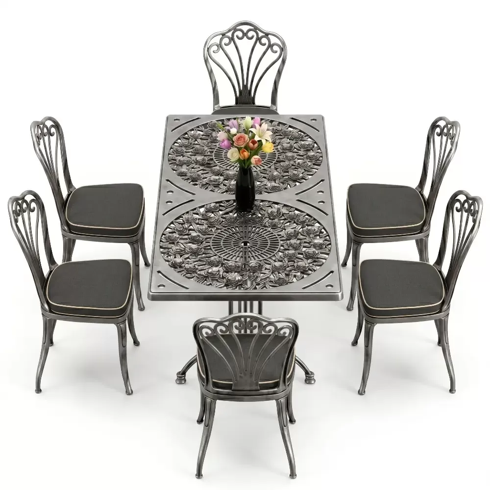 Acik hava yasam alanlarinizi birer sanat eserine donusturmek uzere tasarlanan 94 MHS dikdortgen yemek grubu, klasik ferforje hatlarini modern aluminyum dokum teknolojisi ile bulusturuyor. Alti kisilik genis oturma kapasitesi ve ergonomik yapisiyla Akbrella kalitesini her detayda hissettiren bu set, bahce, balkon ve teraslarinizda sadece bir mobilya degil, ayni zamanda prestijli bir stil beyani sunuyor. Paslanmaya karsi dogal direnci ve yuksek mukavemeti sayesinde nesiller boyu size eslik etmek uzere uretilmistir.