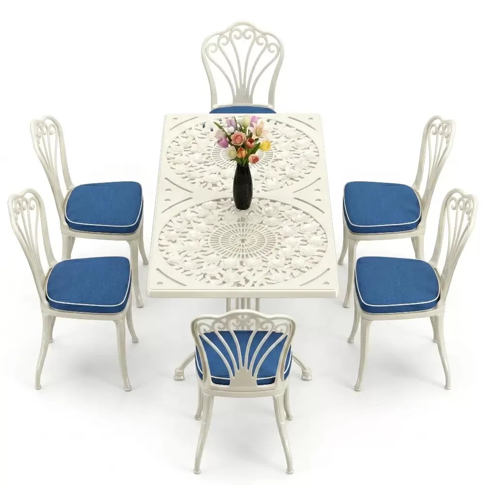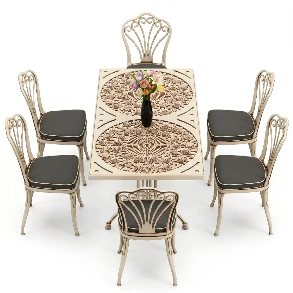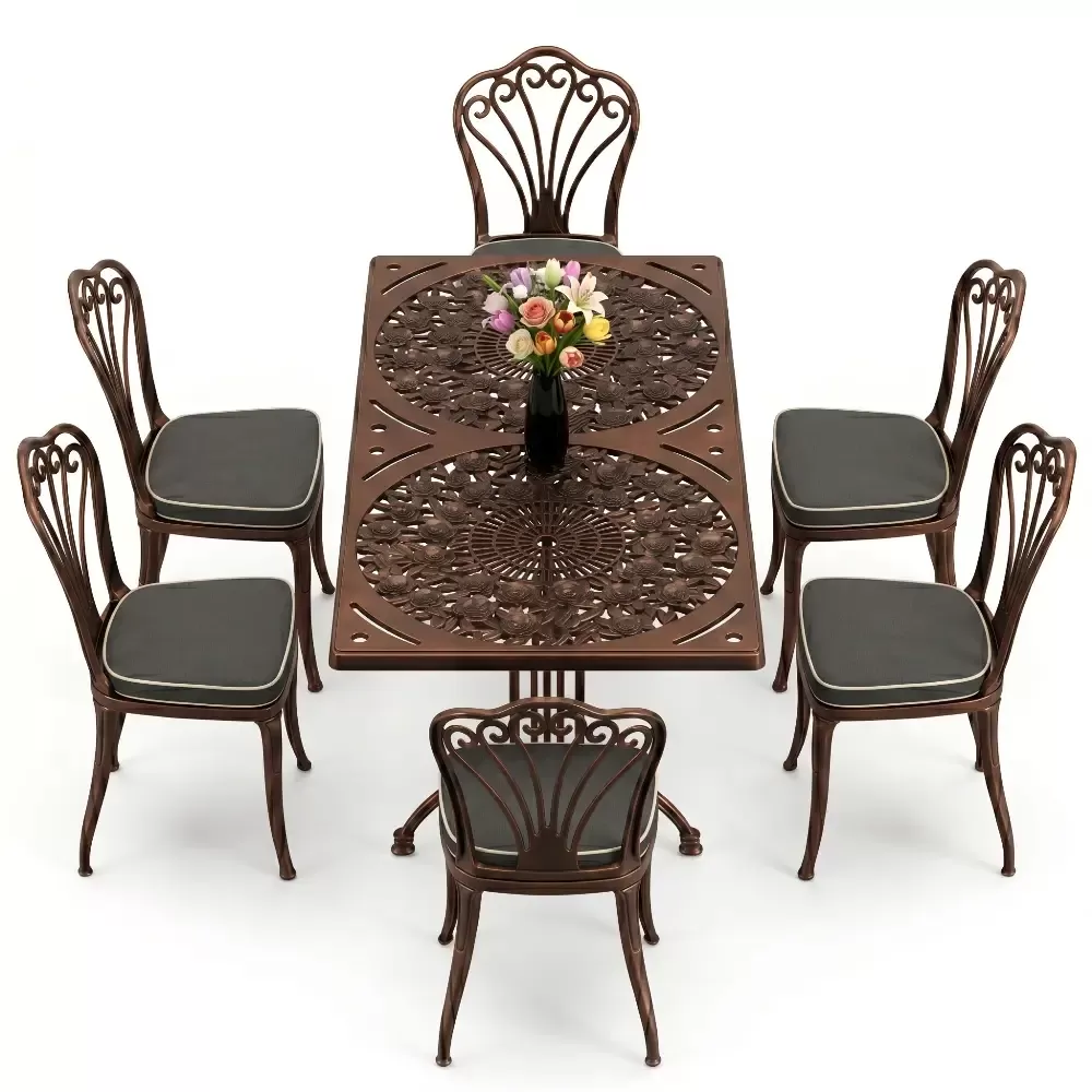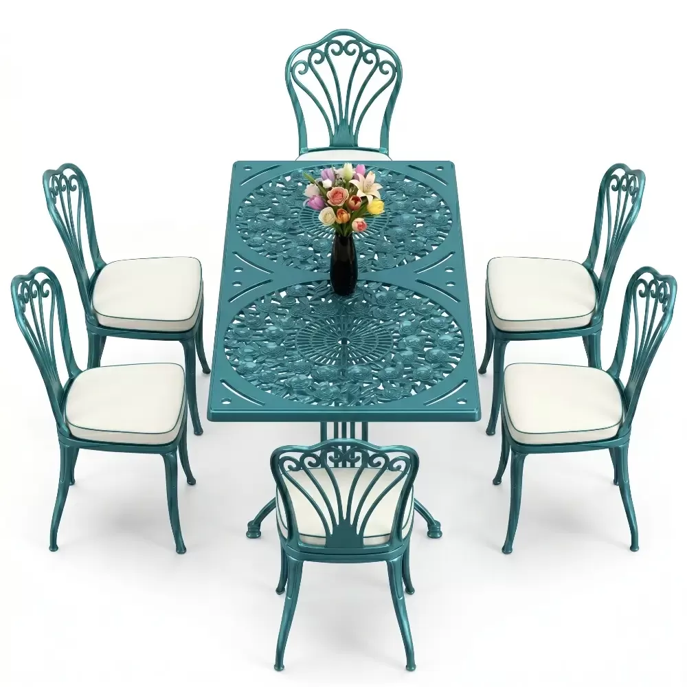 Acik hava yasam alanlarinizi birer sanat eserine donusturmek uzere tasarlanan 94 MHS dikdortgen yemek grubu, klasik ferforje hatlarini modern aluminyum dokum teknolojisi ile bulusturuyor. Alti kisilik genis oturma kapasitesi ve ergonomik yapisiyla Akbrella kalitesini her detayda hissettiren bu set, bahce, balkon ve teraslarinizda sadece bir mobilya degil, ayni zamanda prestijli bir stil beyani sunuyor. Paslanmaya karsi dogal direnci ve yuksek mukavemeti sayesinde nesiller boyu size eslik etmek uzere uretilmistir.