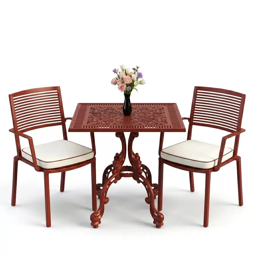 1 Adet Kare Masa + 2 Adet Döküm Sandalye |