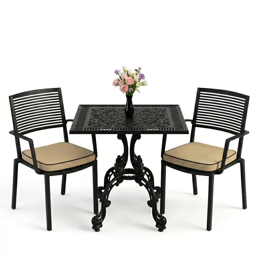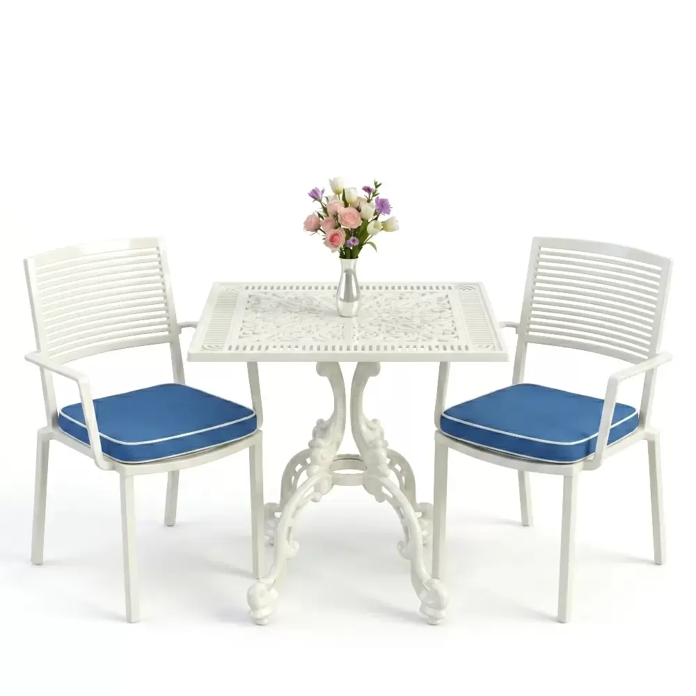 Bahçe, balkon ve teras gibi dış mekanlarda şıklığı ve sağlamlığı bir arada arayanlar için Akbrella-nın 19 CAS serisi ideal bir çözümdür. Geleneksel ferforje sanatının estetiğini modern alüminyum döküm teknolojisi ile birleştiren bu set, iki kişilik kapasitesiyle kompakt ve zarif bir kullanım sunar. 75x75 cm ölçülerindeki kare masa formu, modern hatları seven kullanıcılar için ergonomik bir yapı sunarken mekanınızda simetrik ve düzenli bir atmosfer oluşturur.