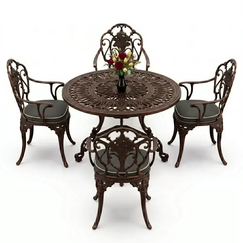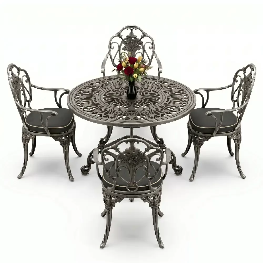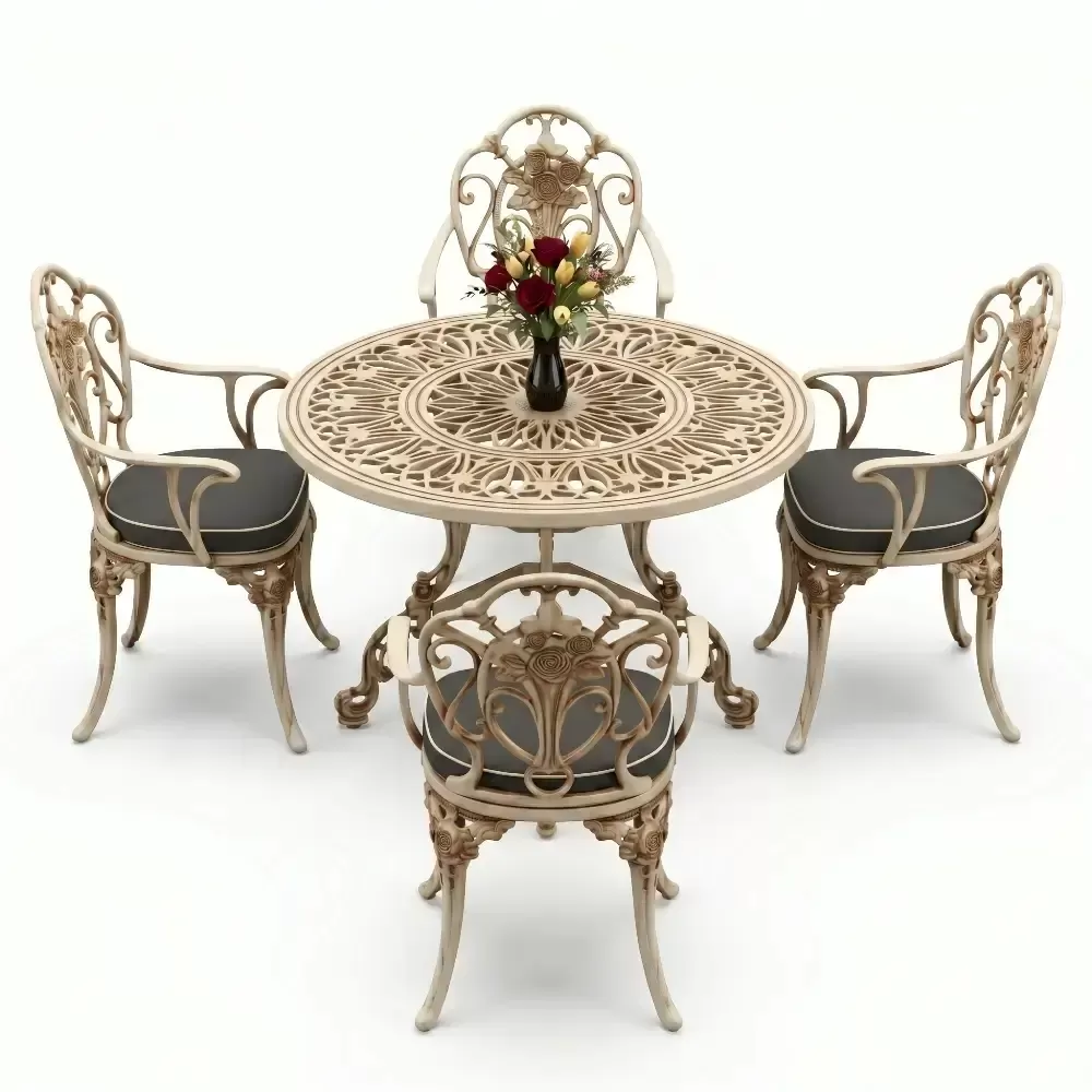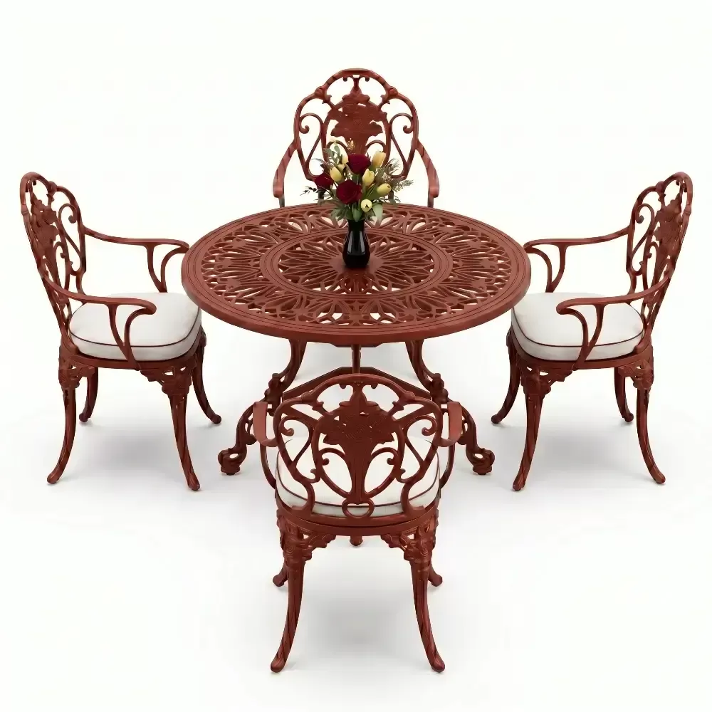Yuvarlak Masa E:100 x D:100 x Y:72 cm 4 Kişilik alüminyum döküm masa ve sandalye takımı (Mindersiz Fiyatı)